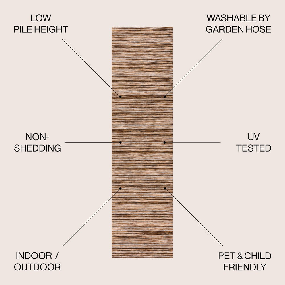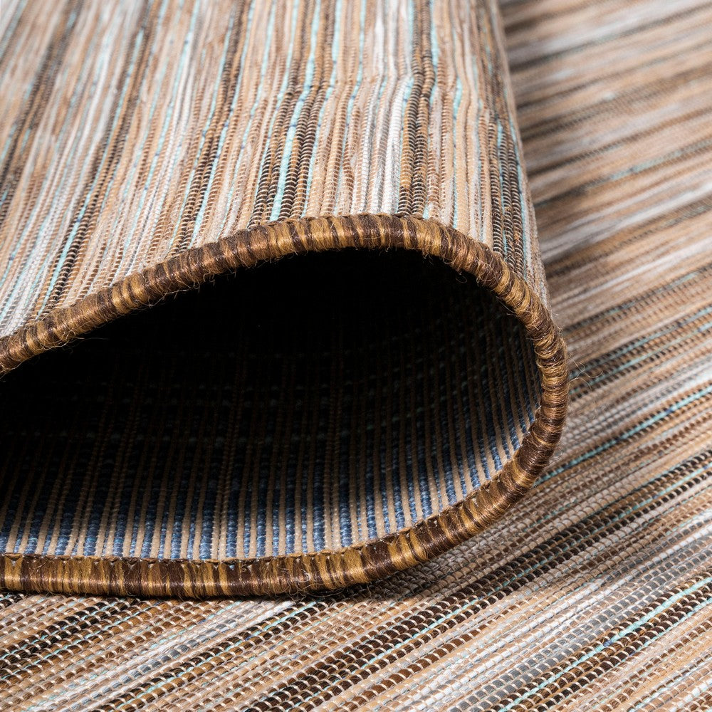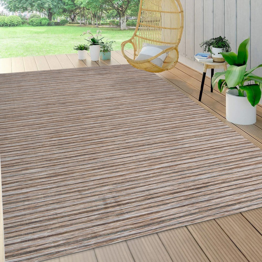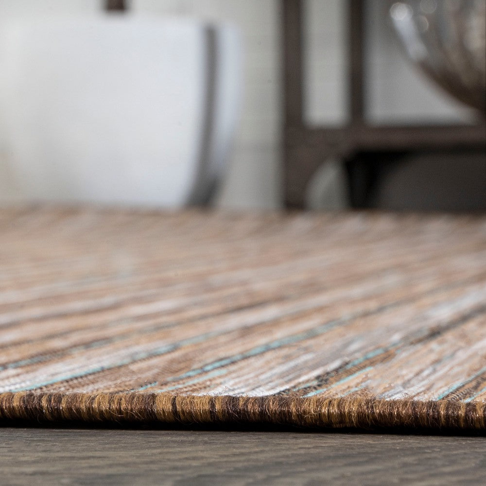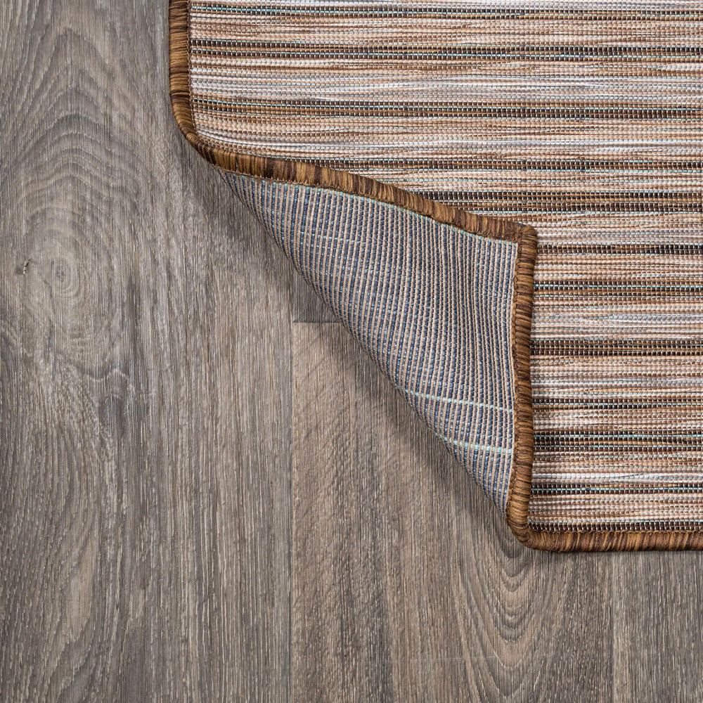 Anchor your mid-century modern, urban contemporary, or farmhouse-inspired space with our flat-weave striped rug. The mingled jute-brown stripe design is practical for high-traffic areas with kids and pets. Add pattern to a living room, dining room, entry, office or bedroom with this easy-care synthetic rug.