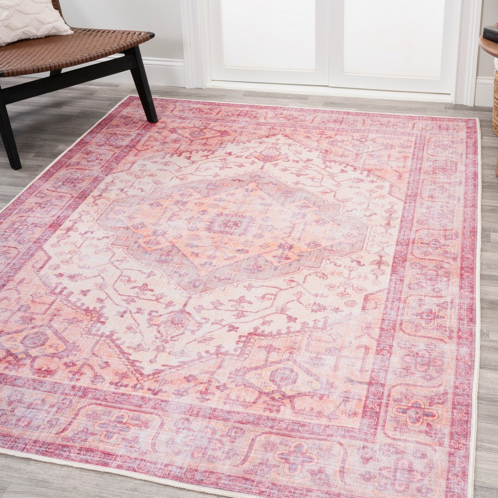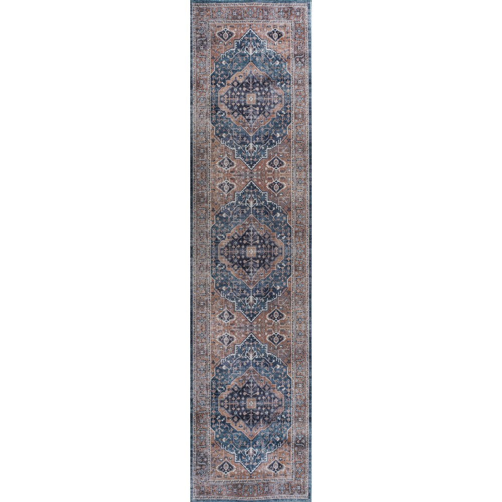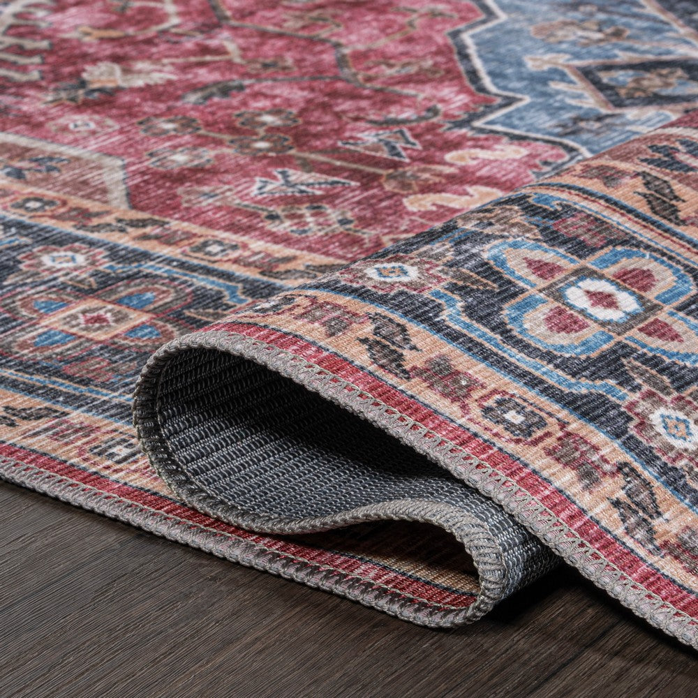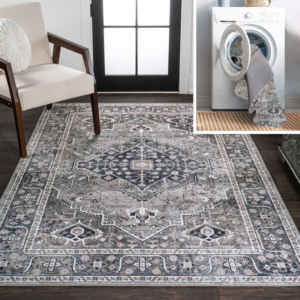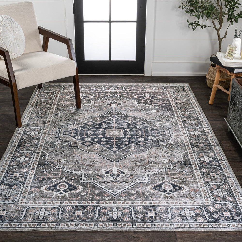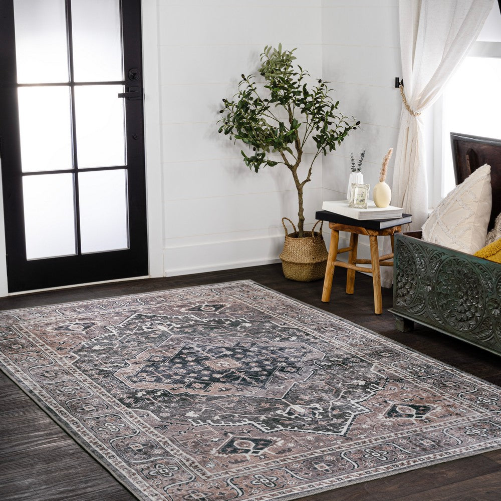 The ornate ogee medallion in the center of this rug recalls ancient Persian rug designs. Updated colors add a modern Bohemian-inspired twist to a classic design. With its pet-friendly pattern, this easy-care rug would be perfect for a dining room, living room, entry, bedroom or porch.