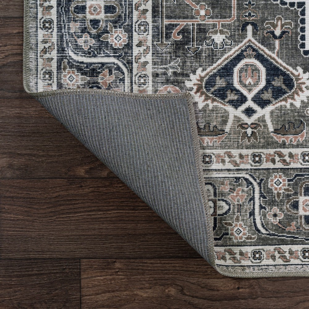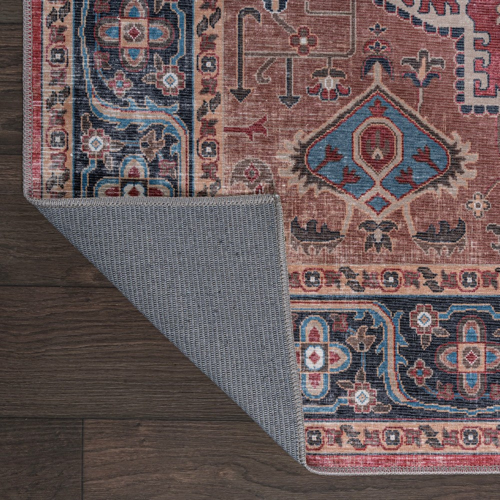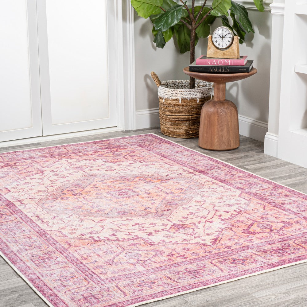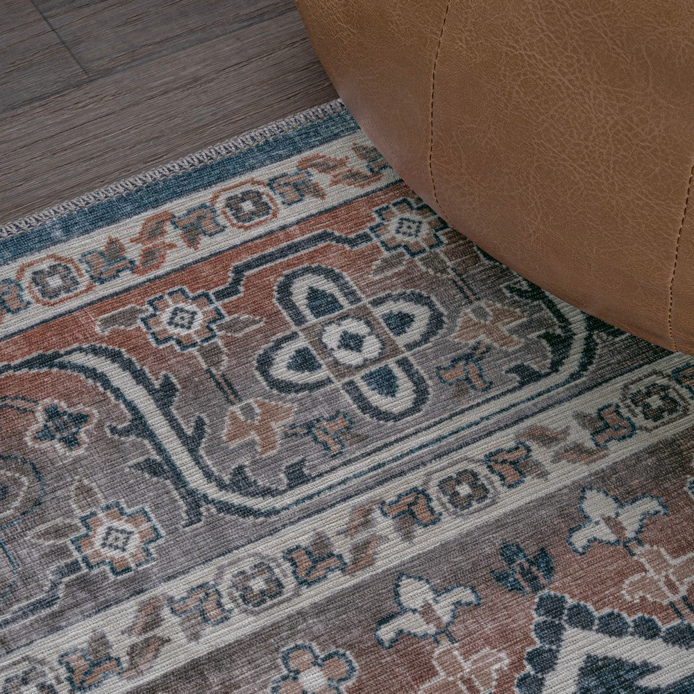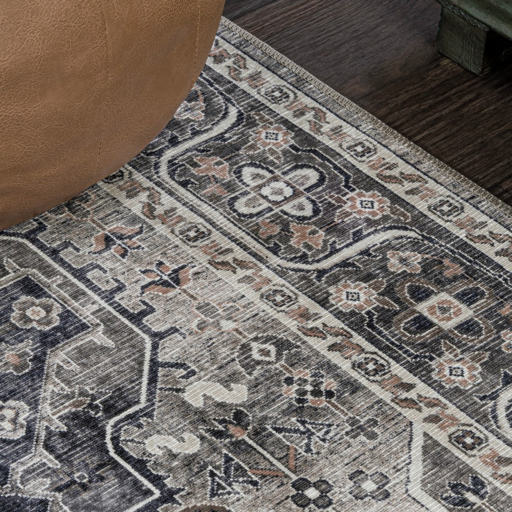 The ornate ogee medallion in the center of this rug recalls ancient Persian rug designs. Updated colors add a modern Bohemian-inspired twist to a classic design. With its pet-friendly pattern, this easy-care rug would be perfect for a dining room, living room, entry, bedroom or porch.