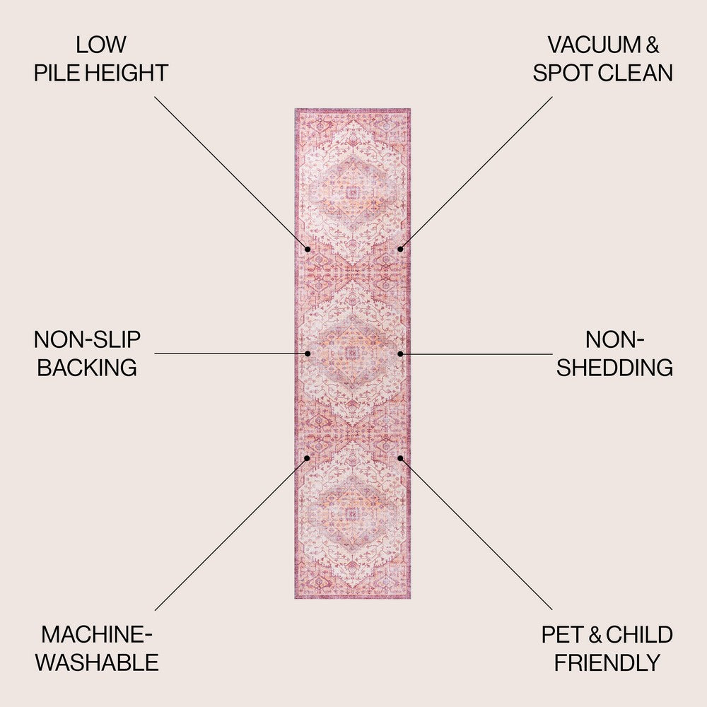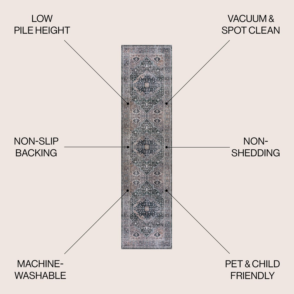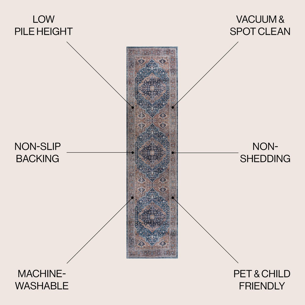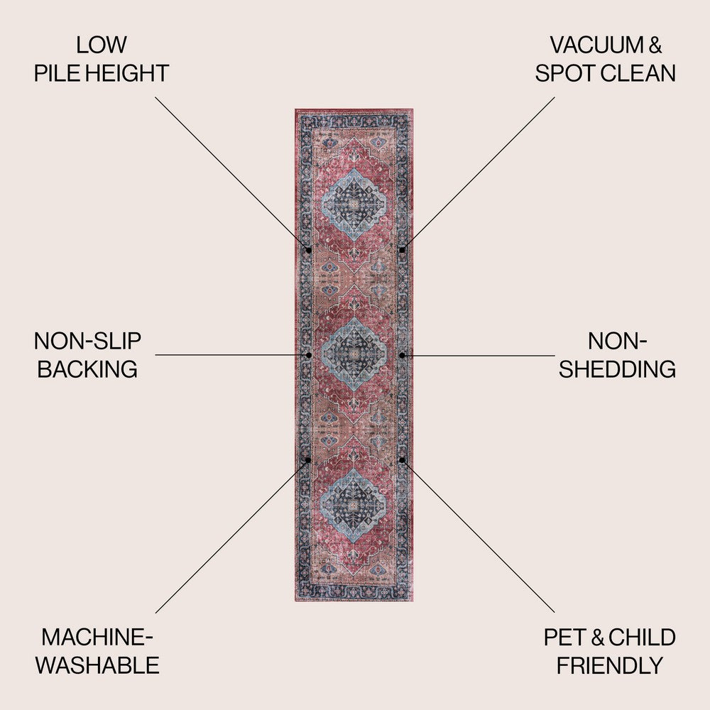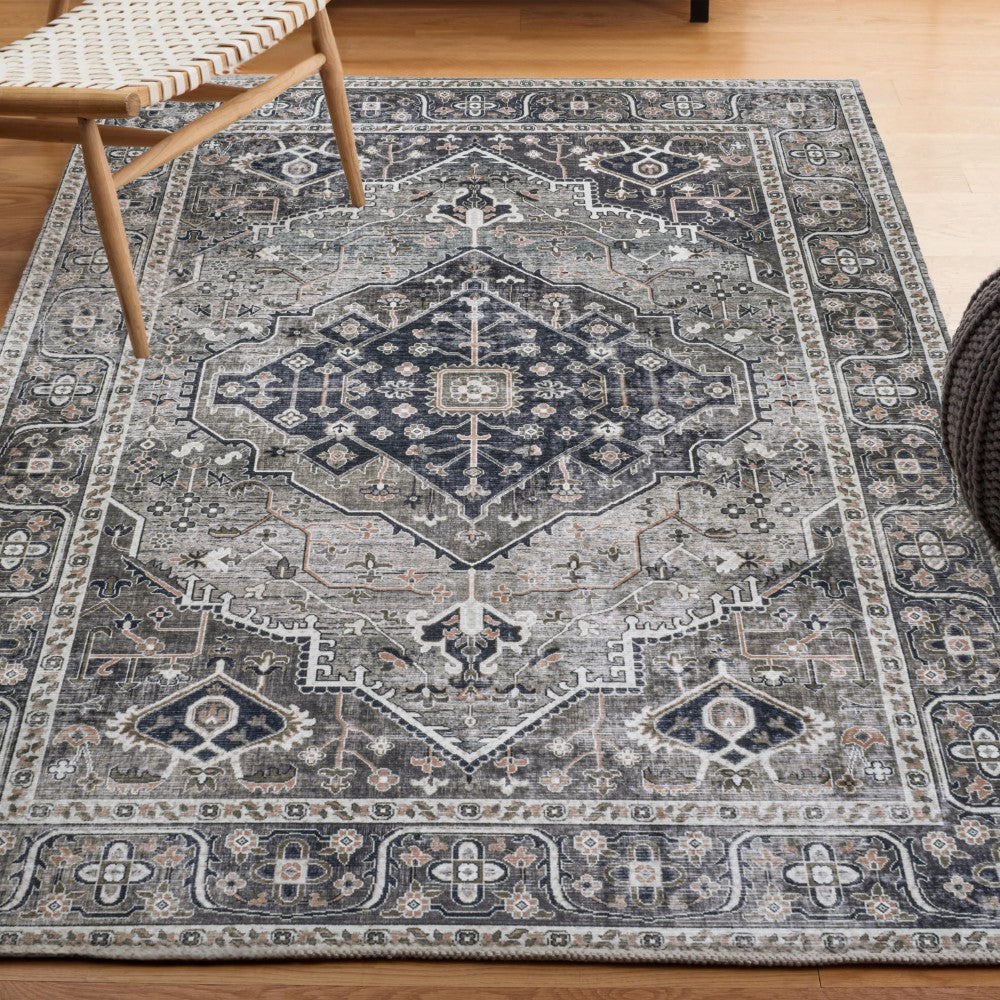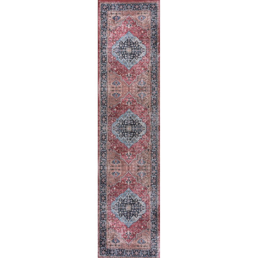 The ornate ogee medallion in the center of this rug recalls ancient Persian rug designs. Updated colors add a modern Bohemian-inspired twist to a classic design. With its pet-friendly pattern, this easy-care rug would be perfect for a dining room, living room, entry, bedroom or porch.