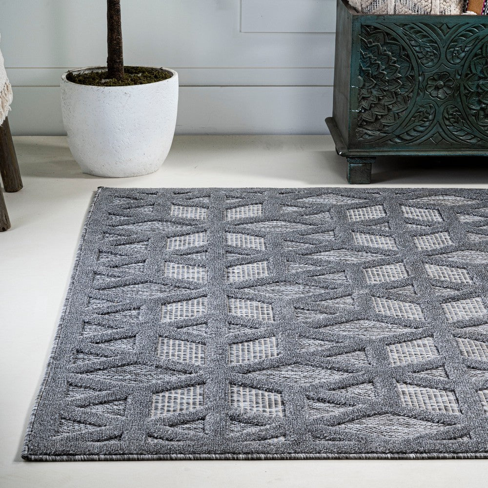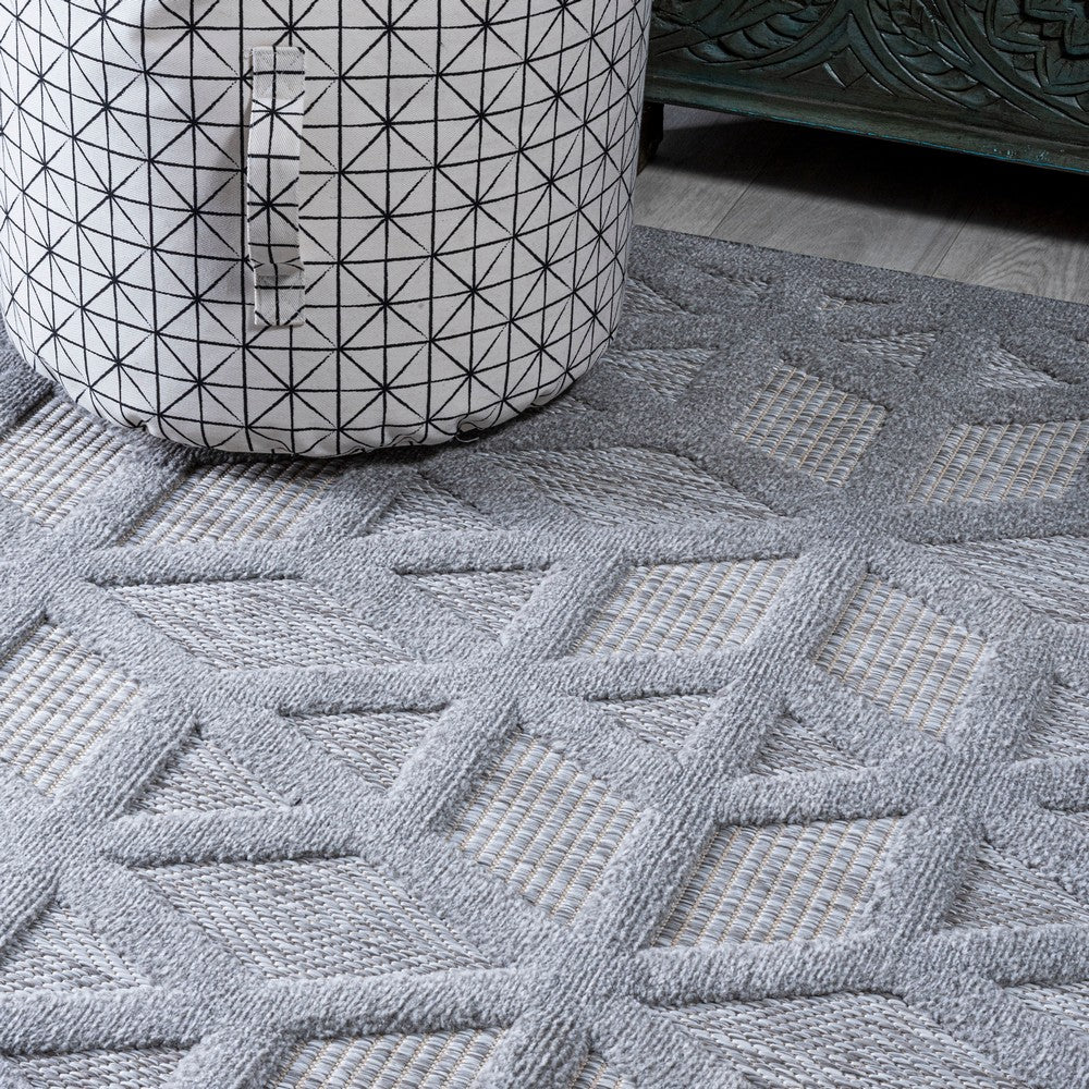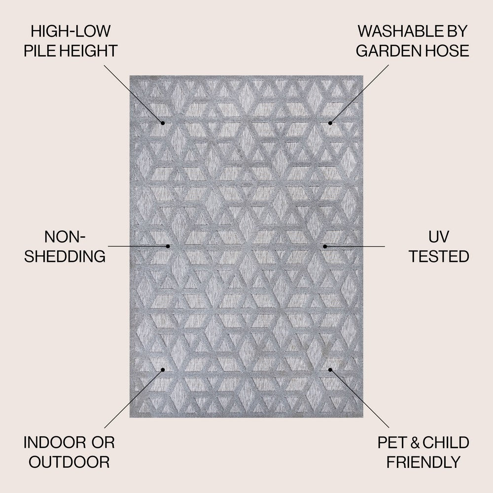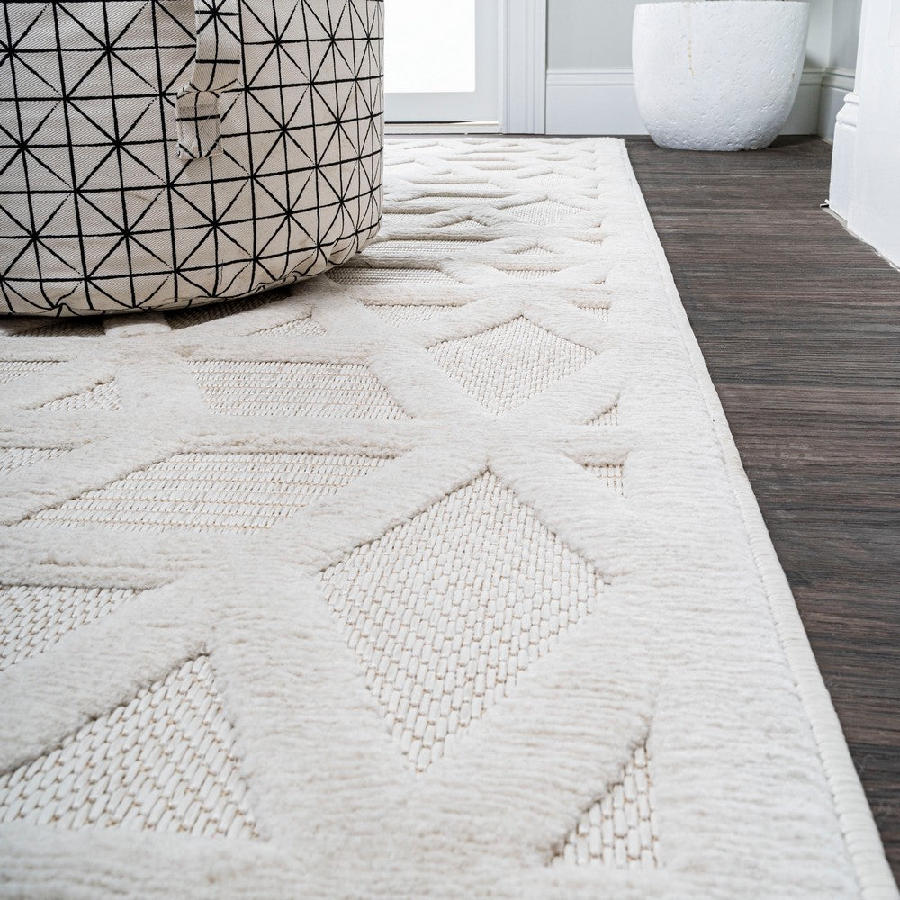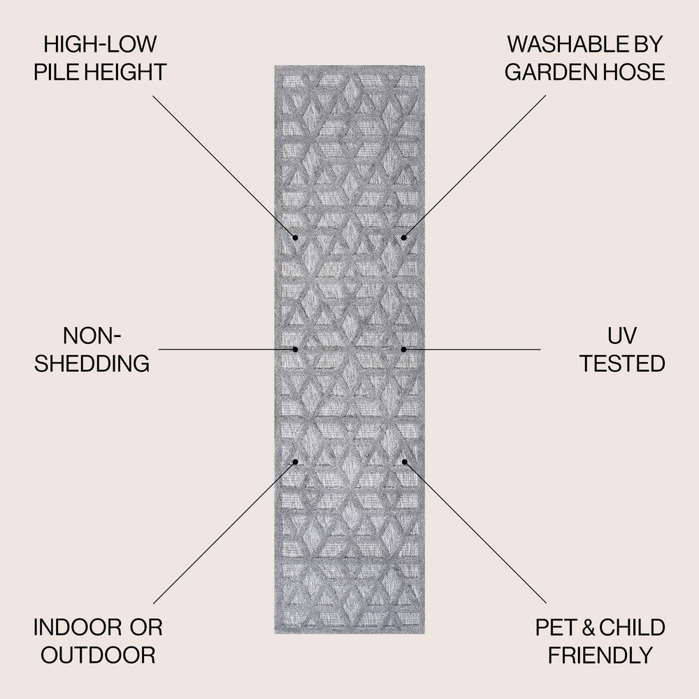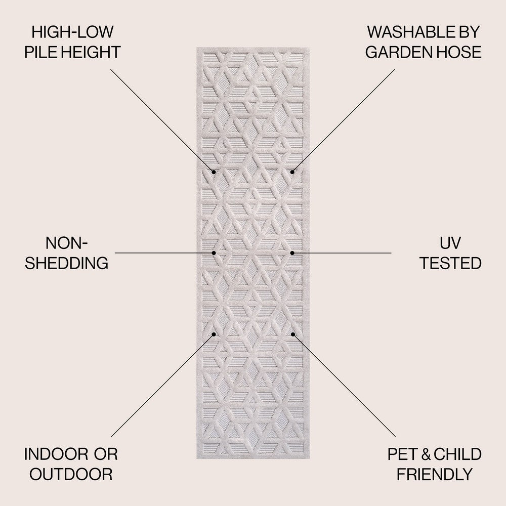 Inspired by antique Moorish tile designs, this neutral indoor/outdoor rug adds subtle, elegant pattern to your porch, patio or sunroom. Mingled threads give this geometric rug a vintage vibe that's perfect for an entry, kitchen, hallway, living room or bedroom. The pet-friendly and kid-proof low-pile design makes it easy to clean, and perfect for the modern beach house.