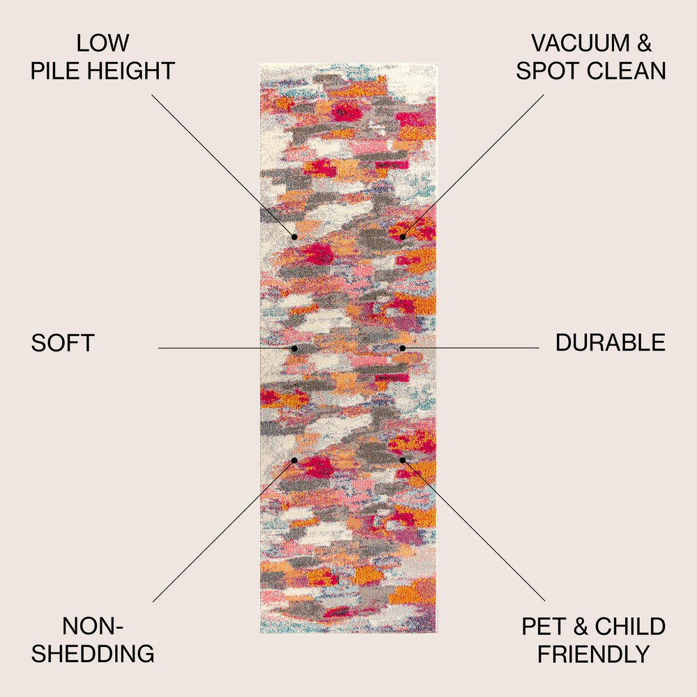 Abstract and heavily inspired by close-range views of impressionist masterpieces, this rug design is worthy of a wall, but at home on the floor. Power loomed from super soft polypropylene in shades of red, pink, coral, orange, gray, beige and ivory the palette is well suited to a variety of color schemes.
