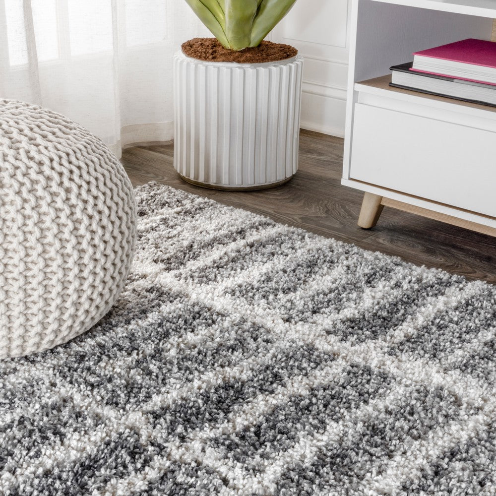 Just like a stacked bond tile design, our Merida Stacked Grid rug has lines arranged in columns. The soft, medium shag pile features mingled shades of gray, with the grid design in ivory. Perfect for a bedroom, living room, or cozy reading nook.