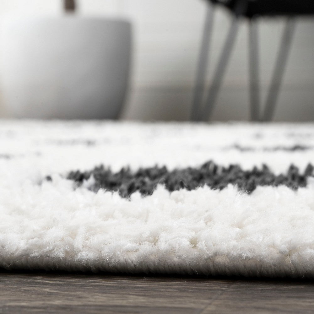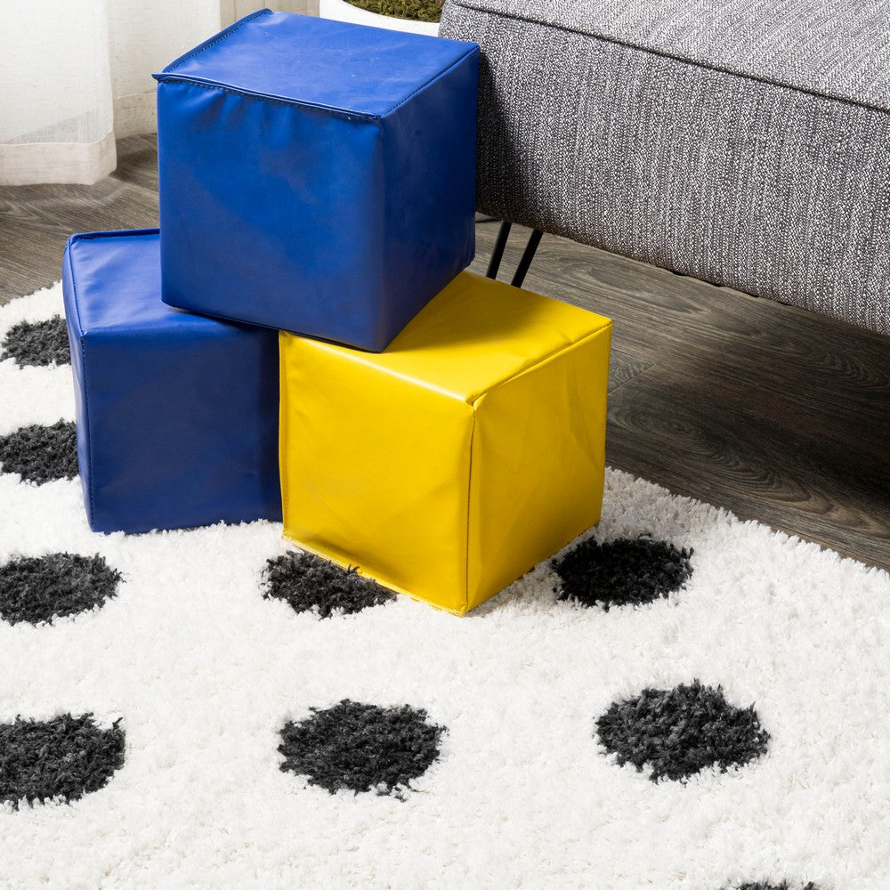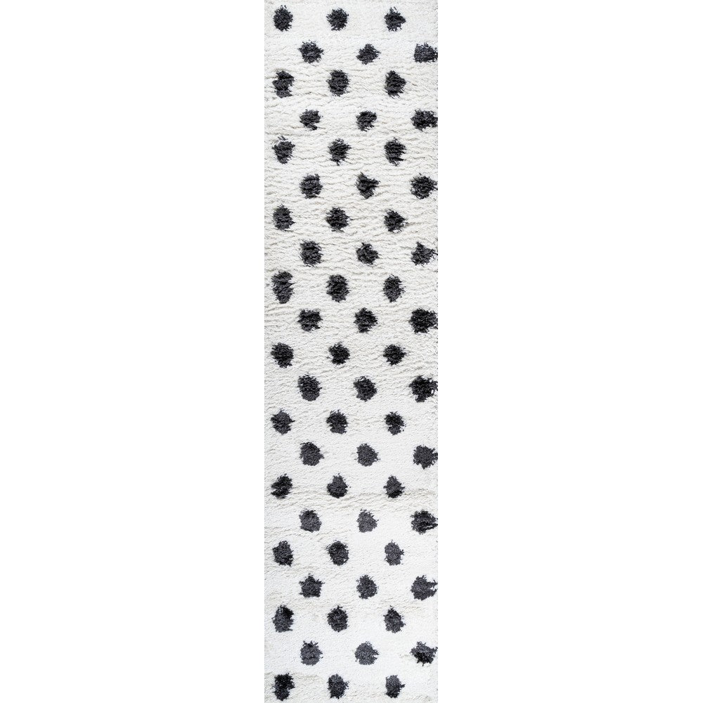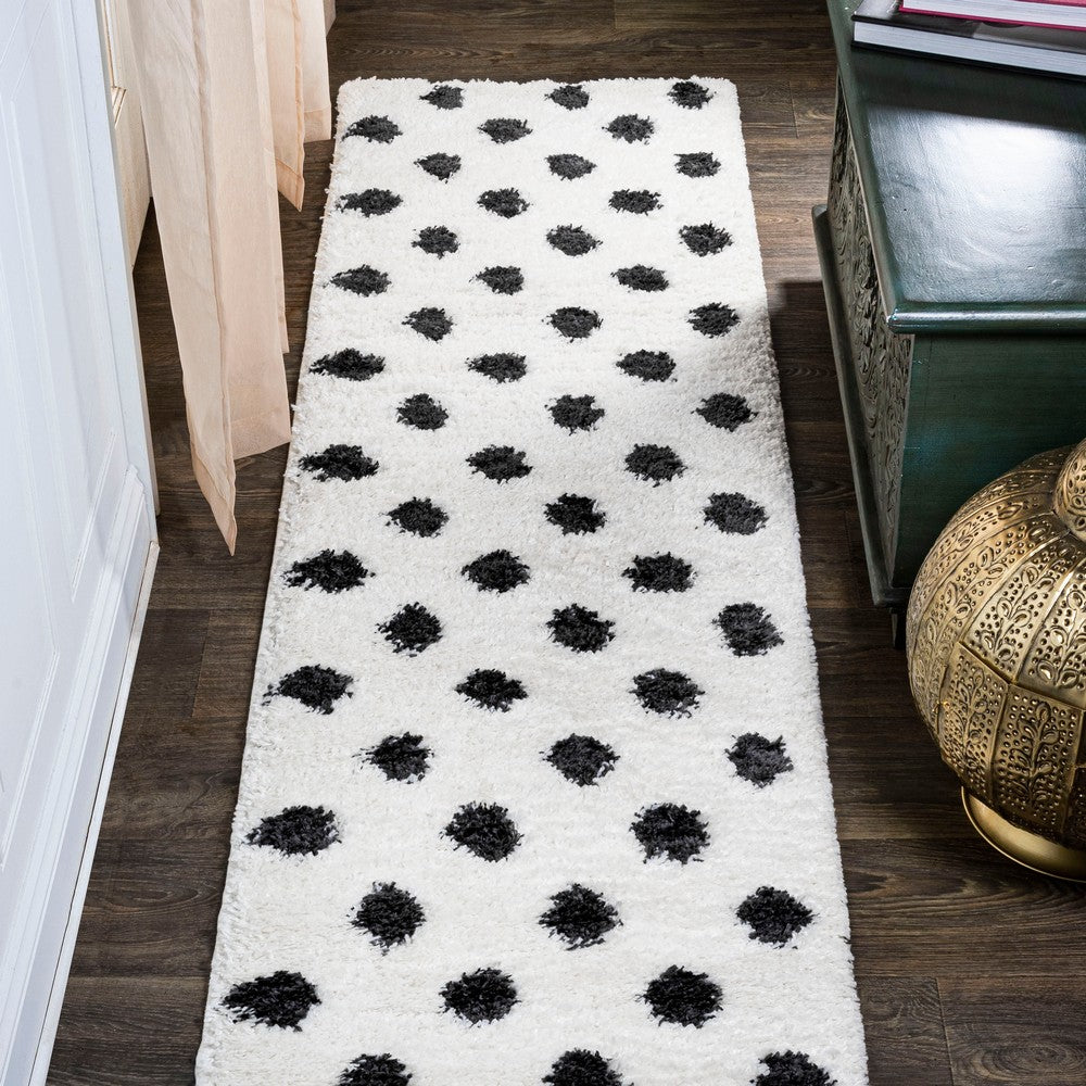Inspired by mid-century rugs, our polka dot rug has a soft, low shag pile. The all-over pattern is woven in black on an ivory background. Add some graphic punch to your living room, bedroom, or reading nook with this easy-care rug.