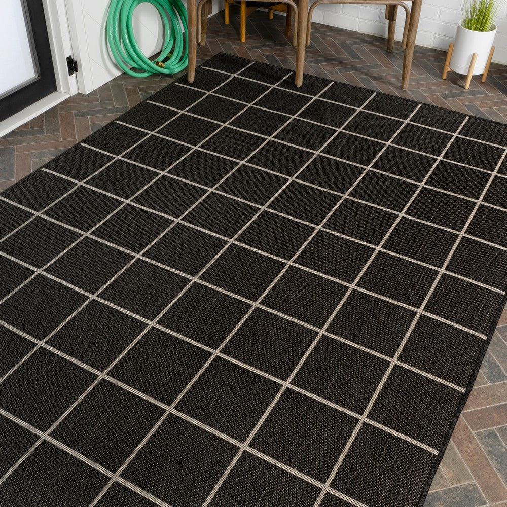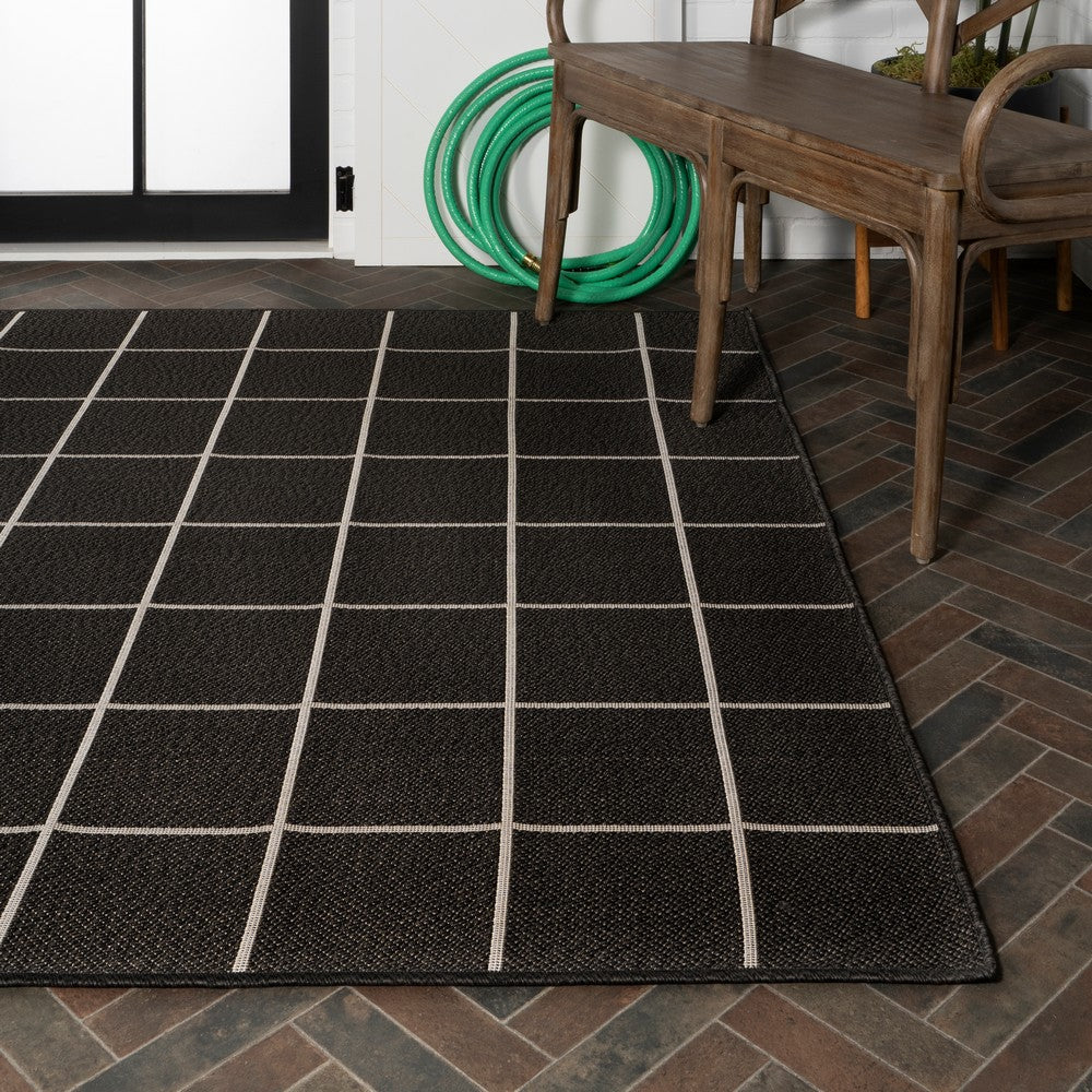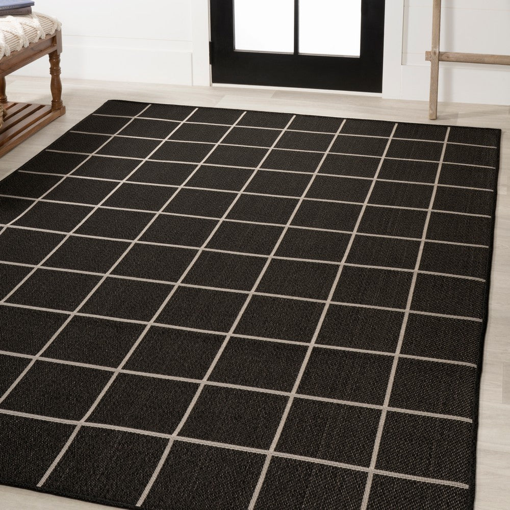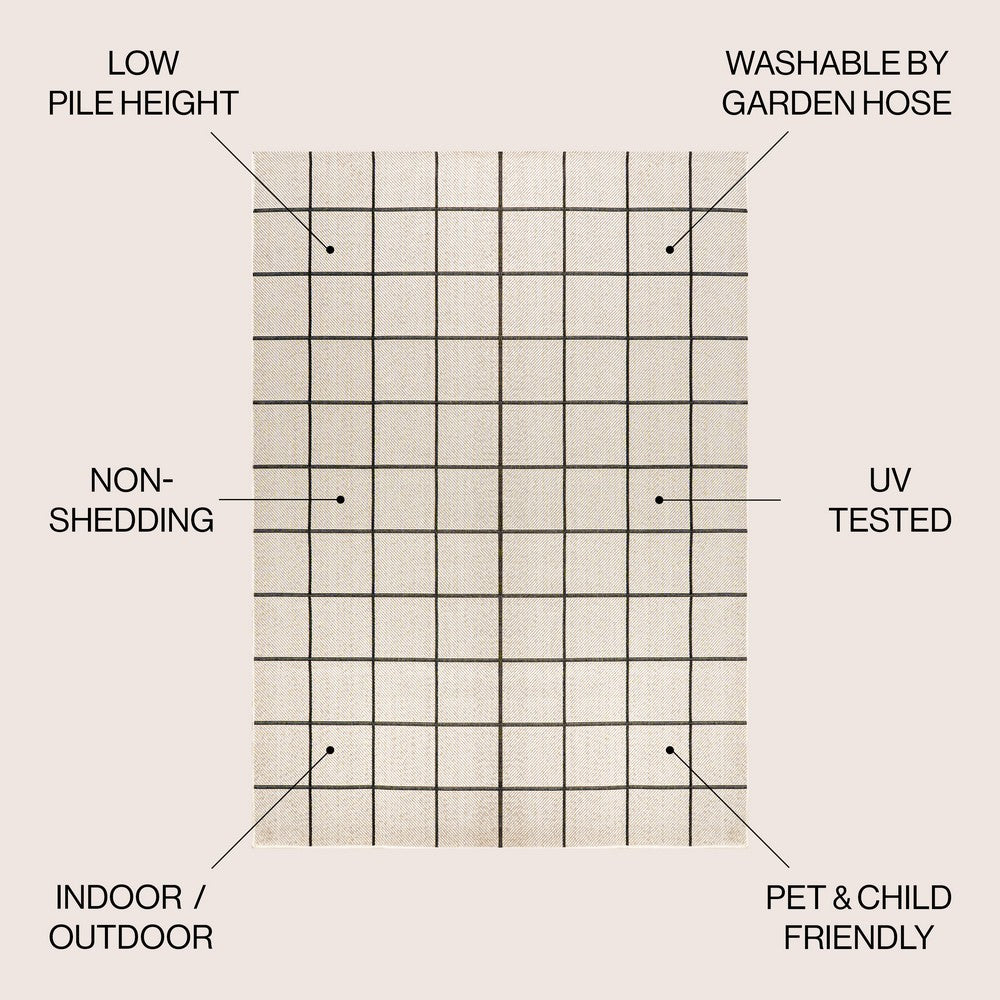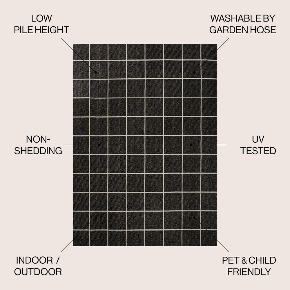 Inspired by mid-century modern design, our square pattern rug has a durable low pile. The geometric pattern is woven in just two colors for a low-key, minimalist look. Add graphic punch to your living room, dining room, bedroom, or porch with this easy-care, family-friendly rug.