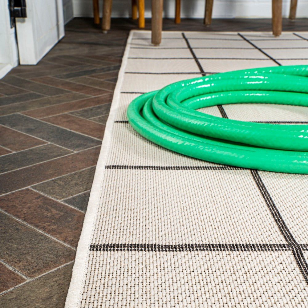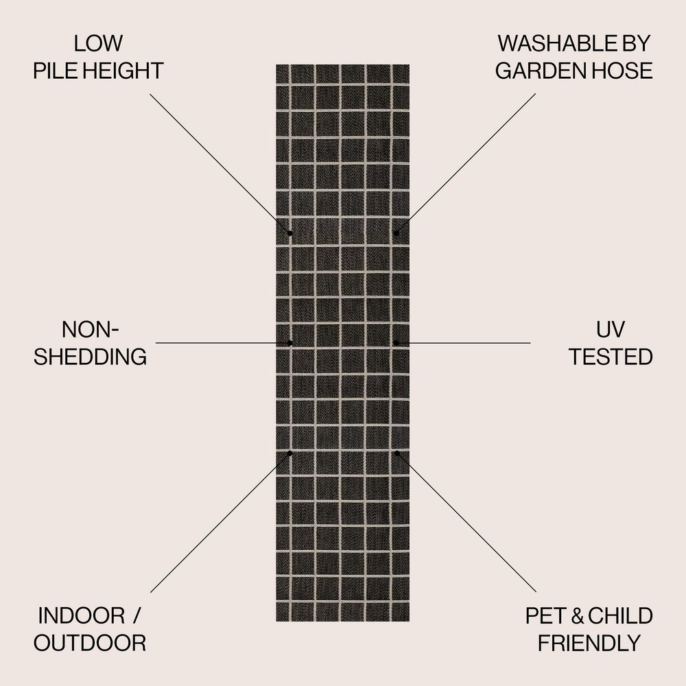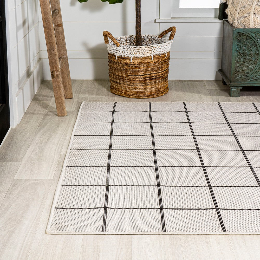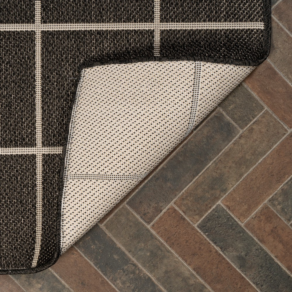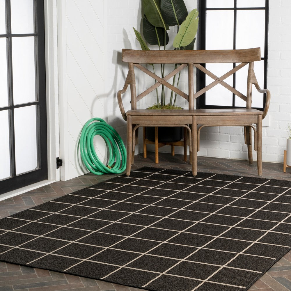 Inspired by mid-century modern design, our square pattern rug has a durable low pile. The geometric pattern is woven in just two colors for a low-key, minimalist look. Add graphic punch to your living room, dining room, bedroom, or porch with this easy-care, family-friendly rug.