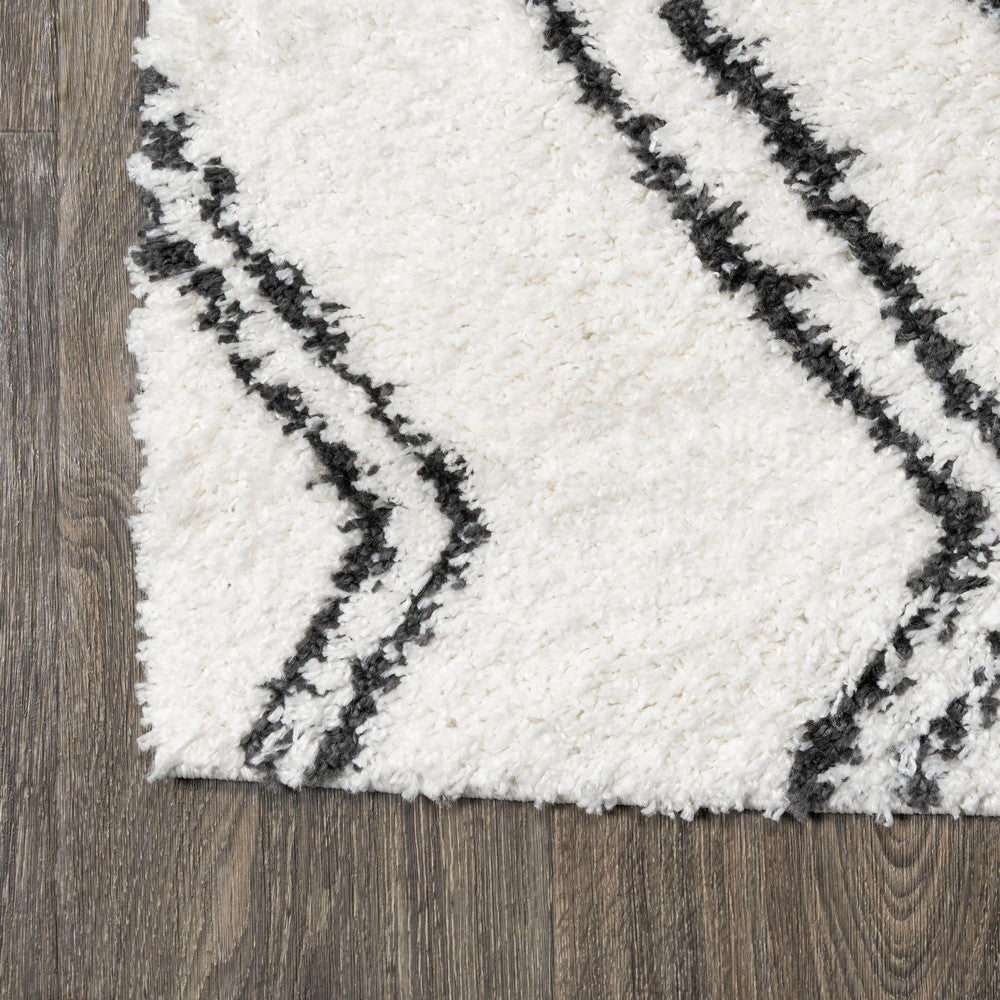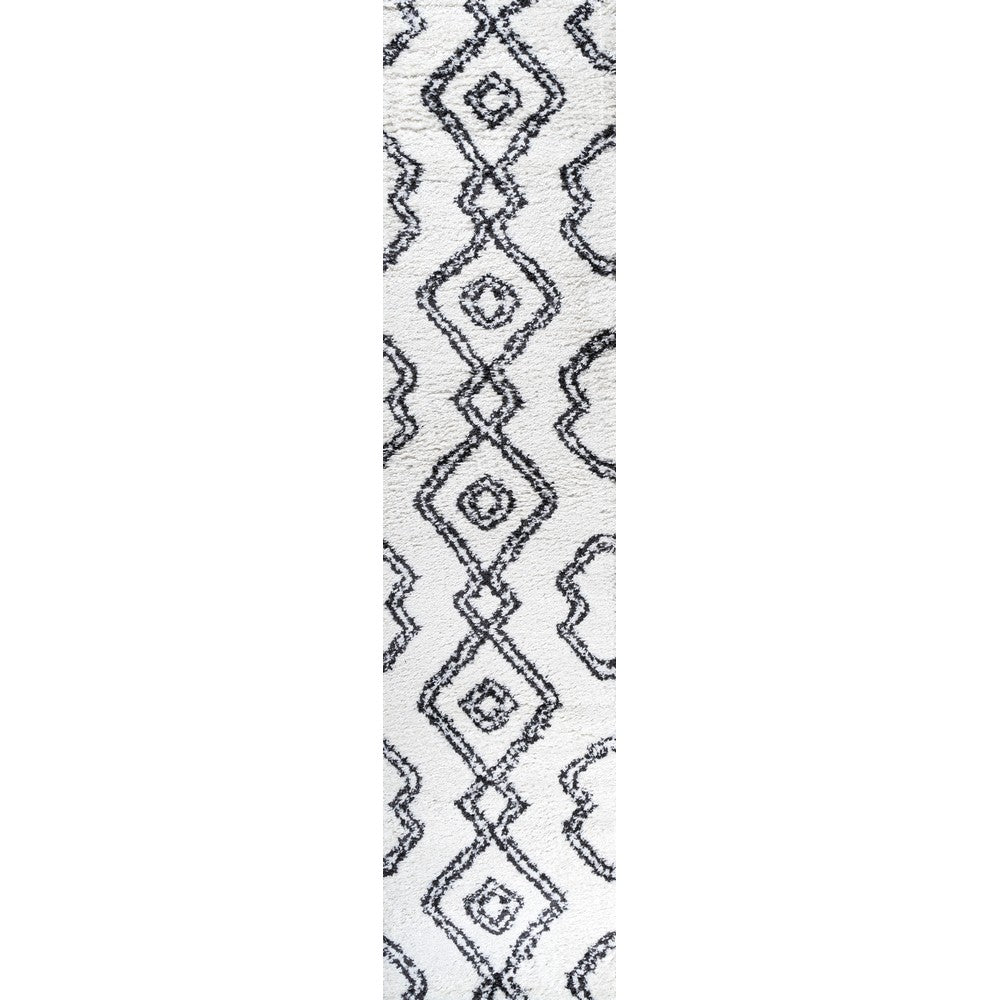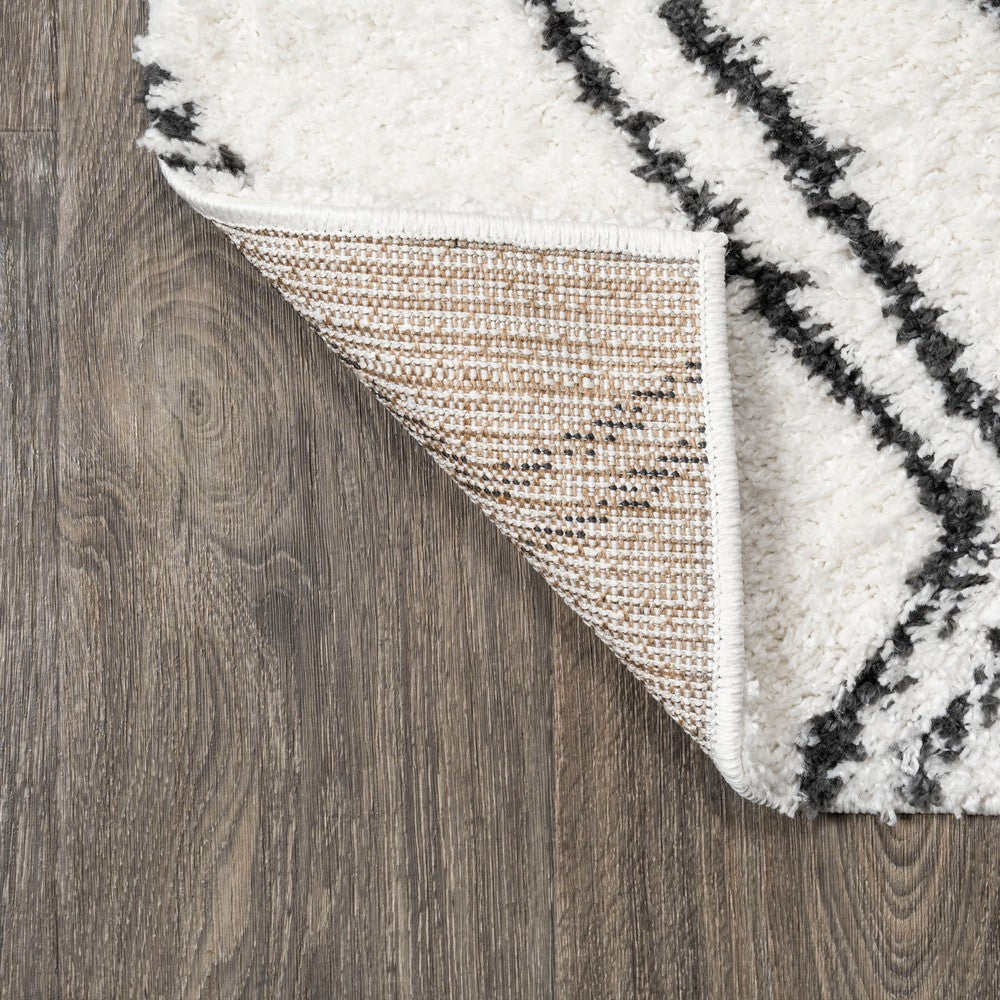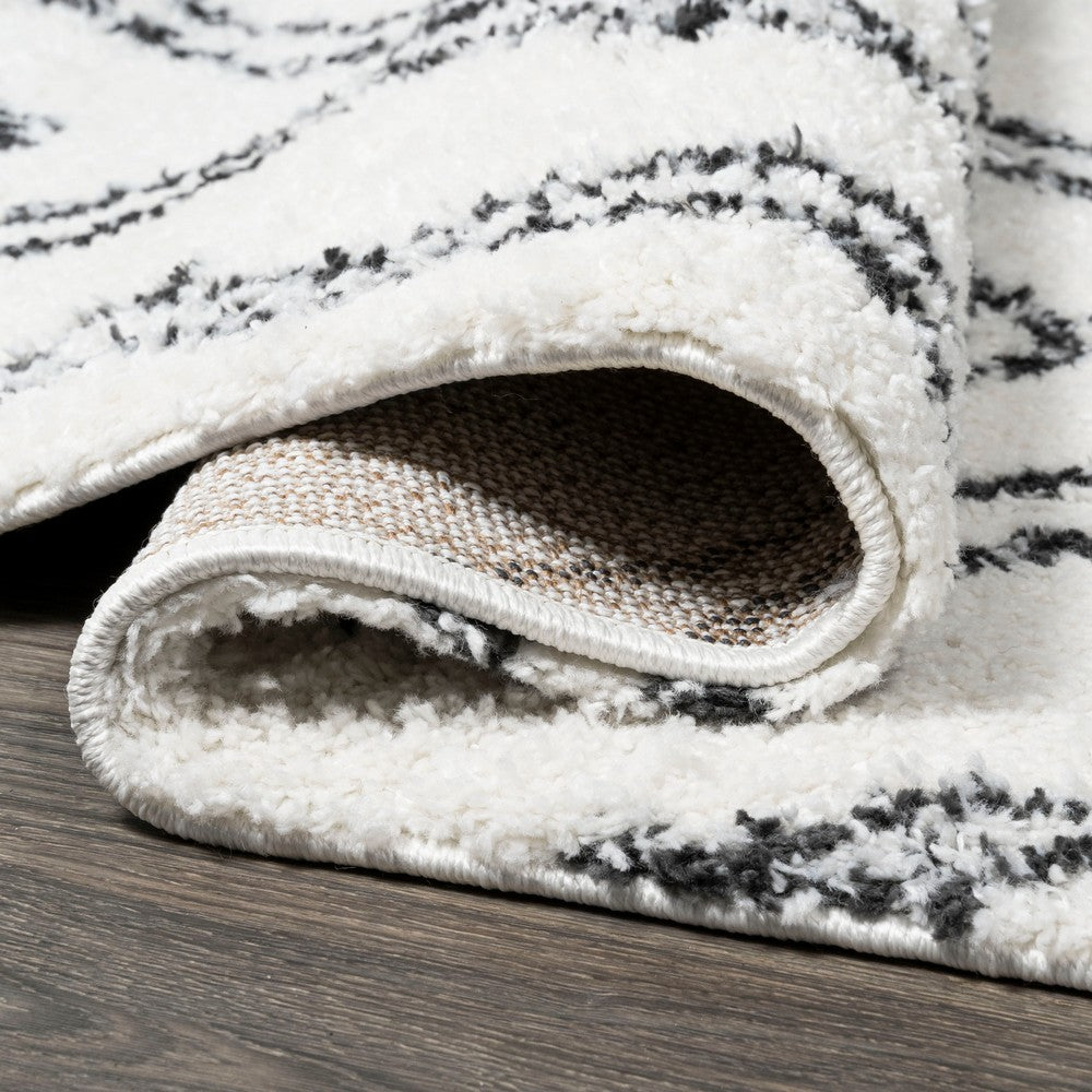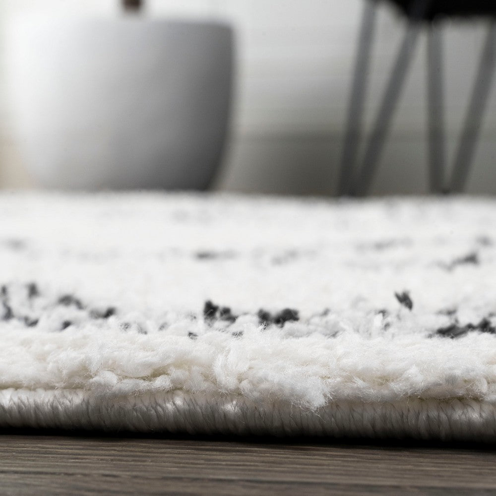 Inspired by vintage Beni Ourain Moroccan rugs, our soft and fluffy shag yarns make it easy to go barefoot. The classic Moroccan pattern has a geometric design of deep black diamonds on a field of ivory. Anchor your Bohemian space; add softness to a bedroom, living room, or cozy reading nook; this is a low-pile shag rug with timeless style.