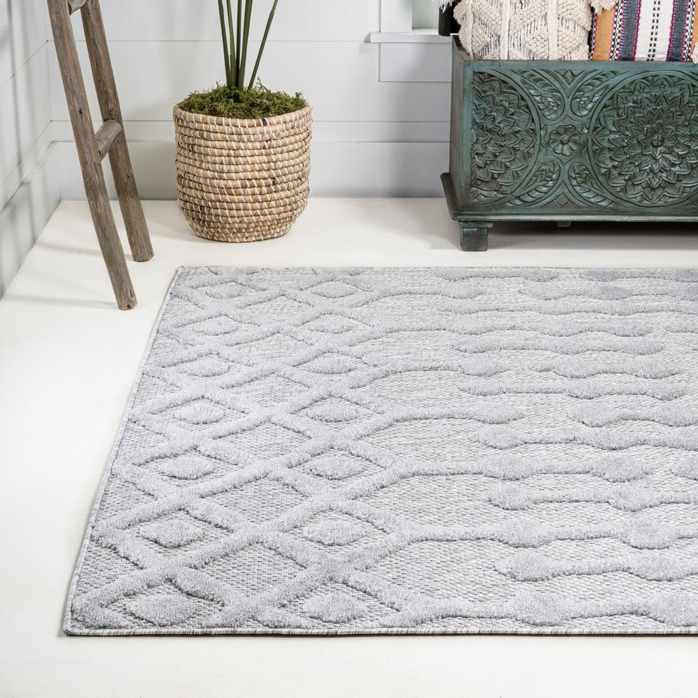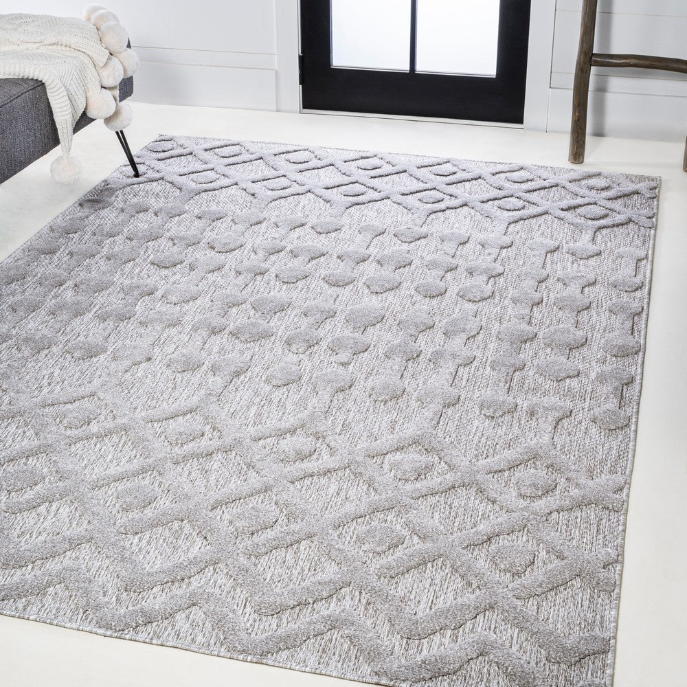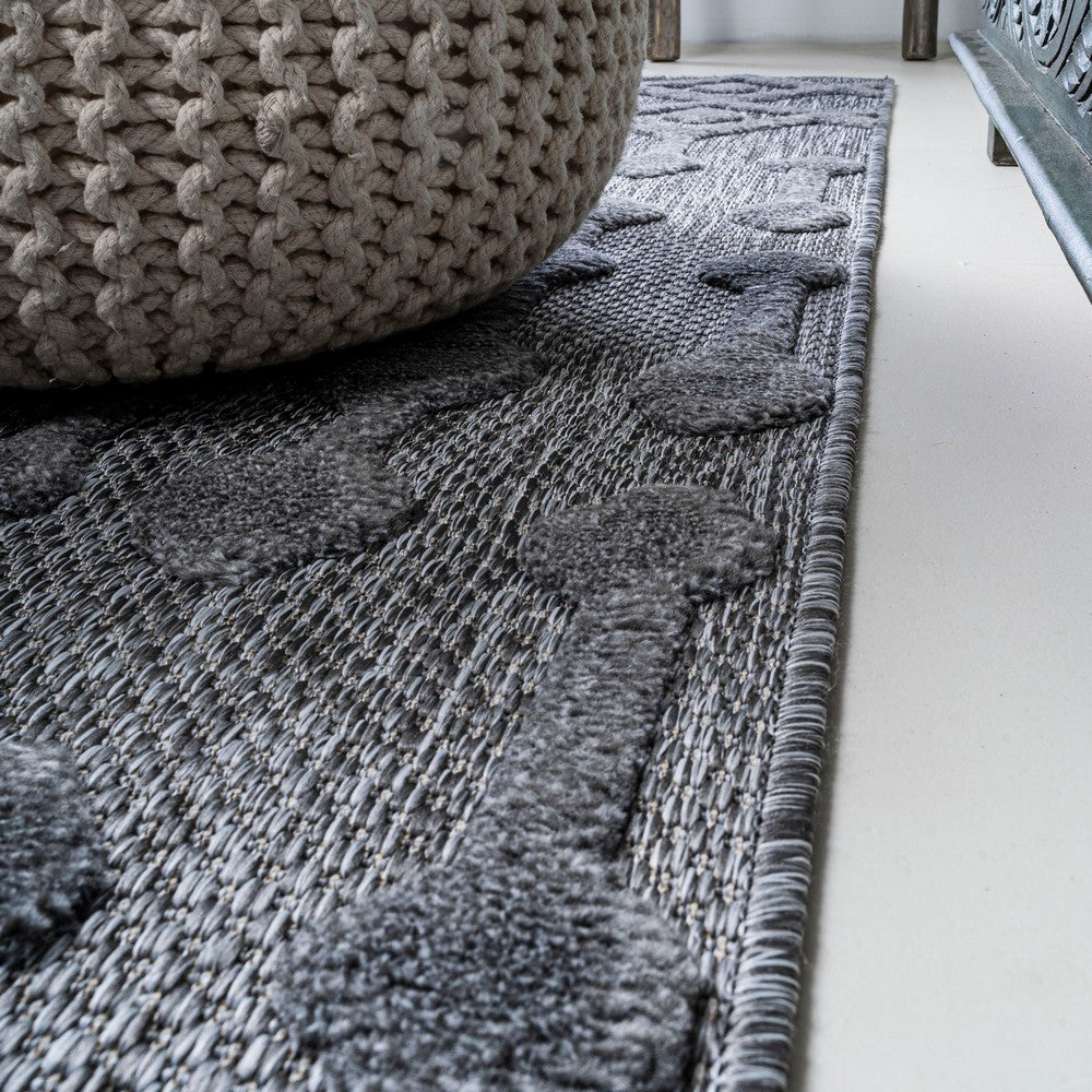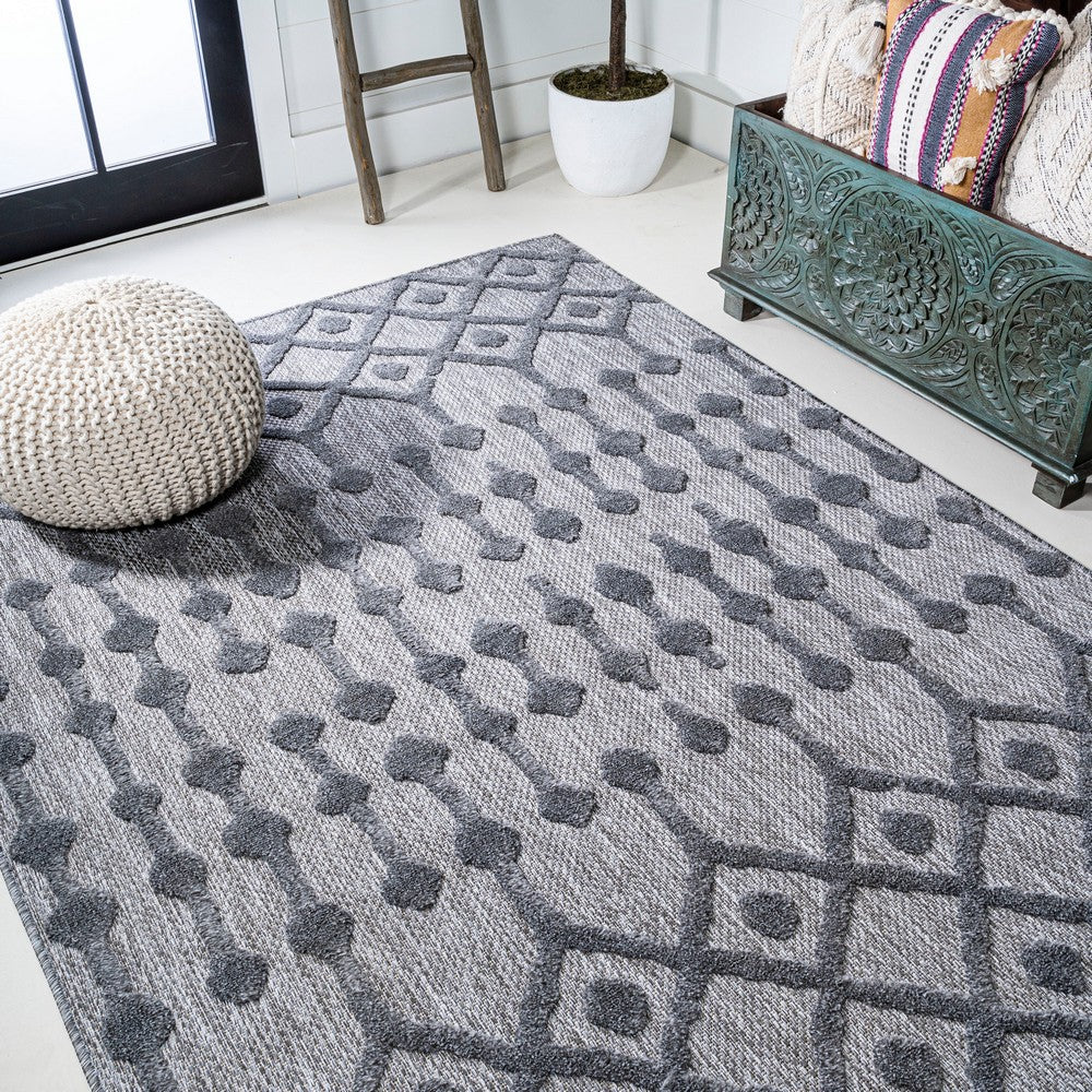 Inspired by vintage Moroccan rugs, our indoor/outdoor rug adds geometric pattern to your porch, patio or sunroom. The classic diamond and dot pattern has a modern twist, woven in shades of gray. Mingled threads give this rug a vintage vibe that's perfect for an entry, kitchen, hallway, living room or bedroom too. The pet-friendly and kid-proof low pile design makes it easy to clean, and perfect for the beach house.