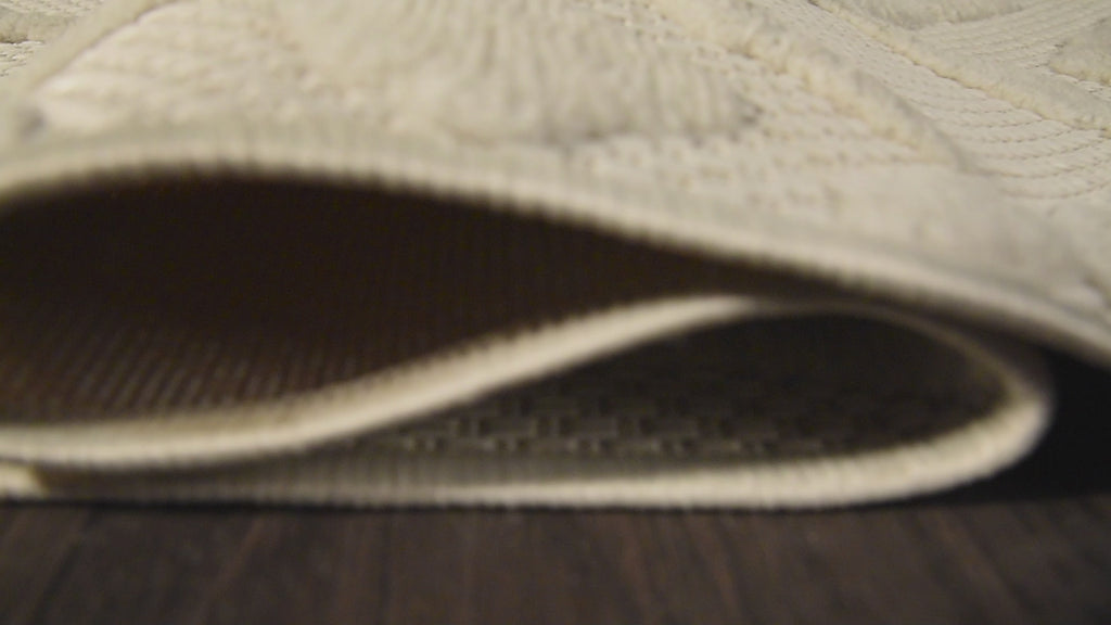 - Power loomed in a low pile that's soft and durable, with a latex backing for added stability