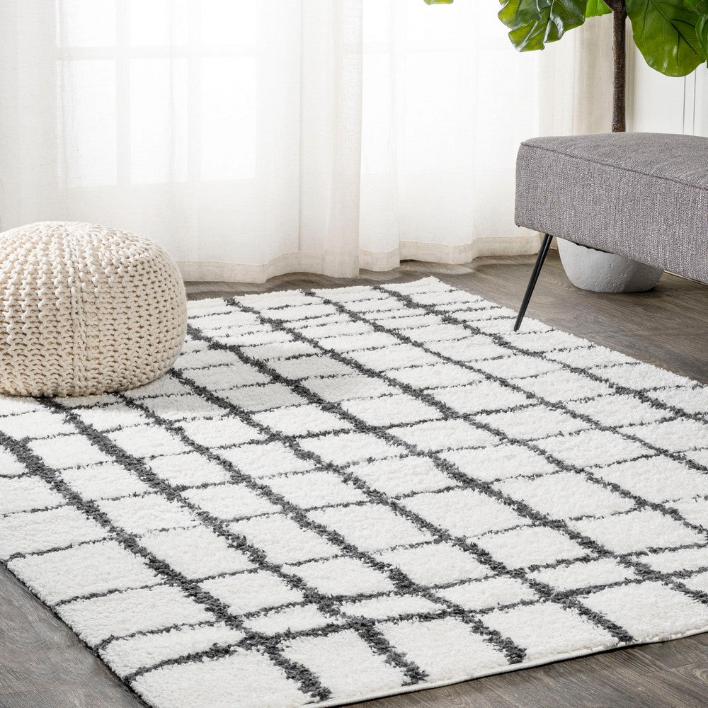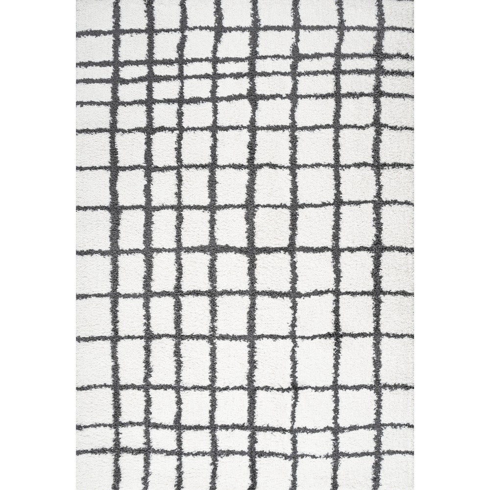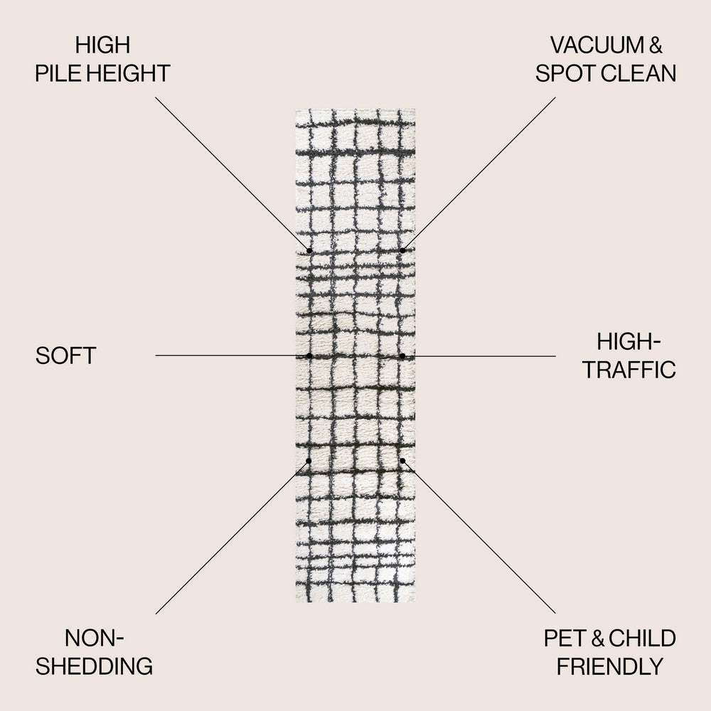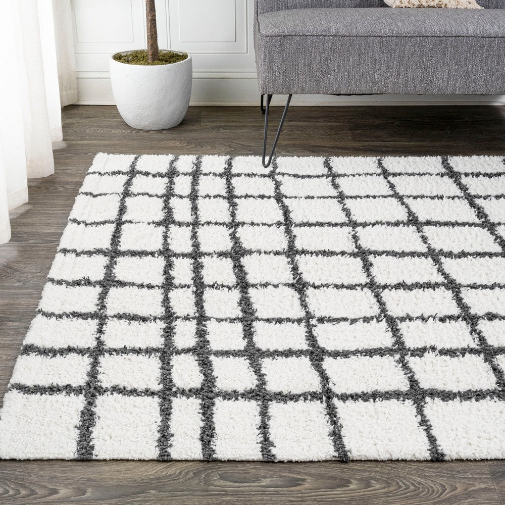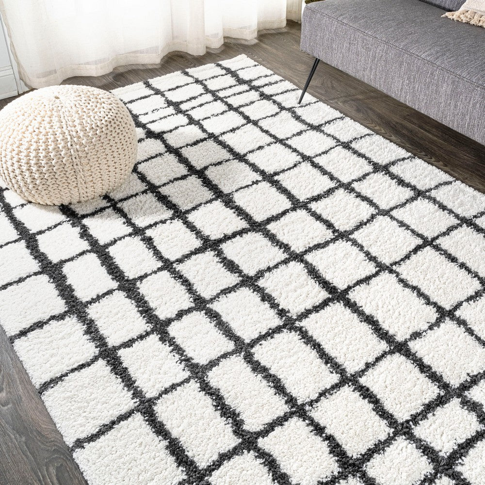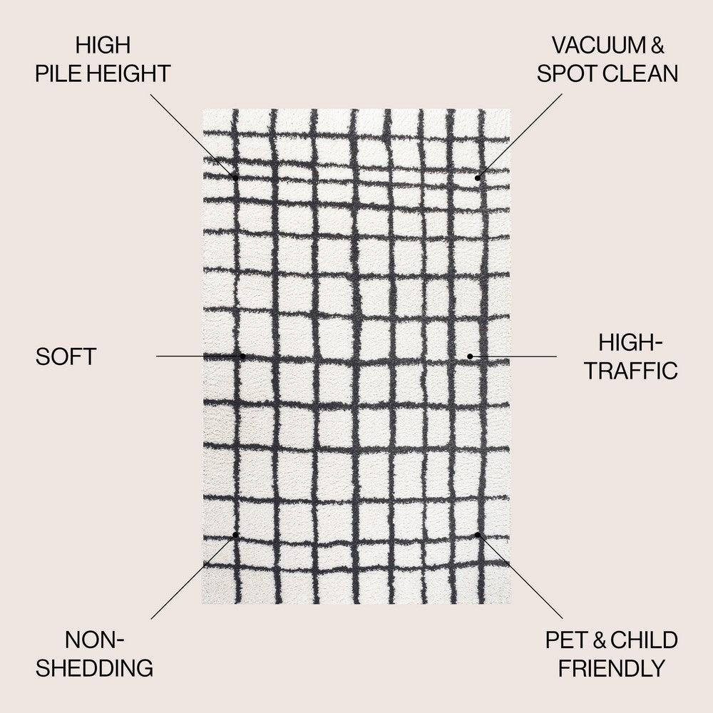 Inspired by Moroccan rugs, our modern rug has a soft, low shag pile. The geometric crisscross pattern is woven in black on an ivory background; our minimalist plaid design has mid-century flair. Add graphic punch to your living room, bedroom, or reading nook with this easy-care rug.