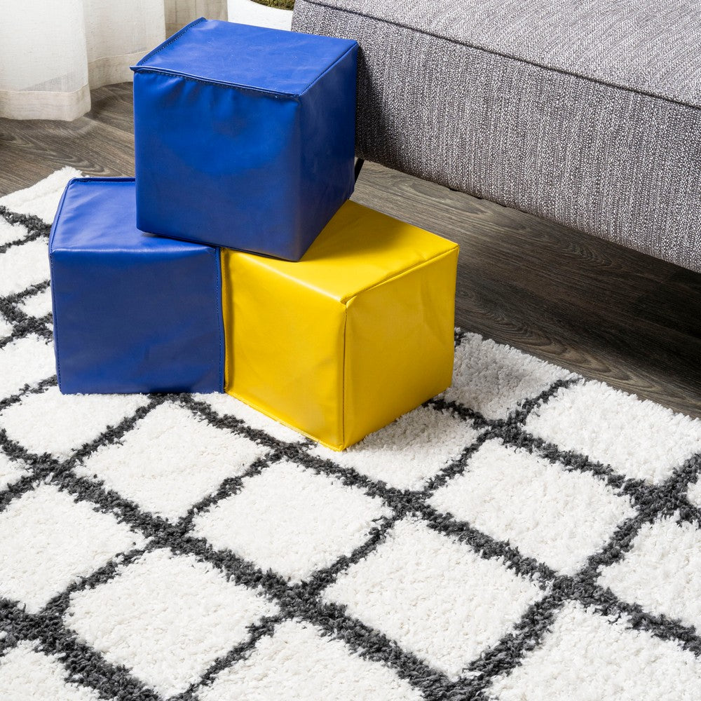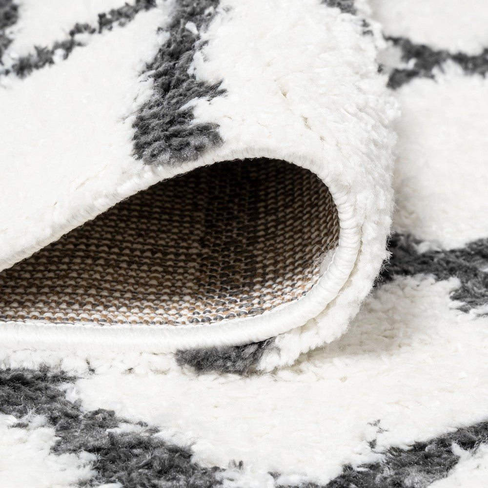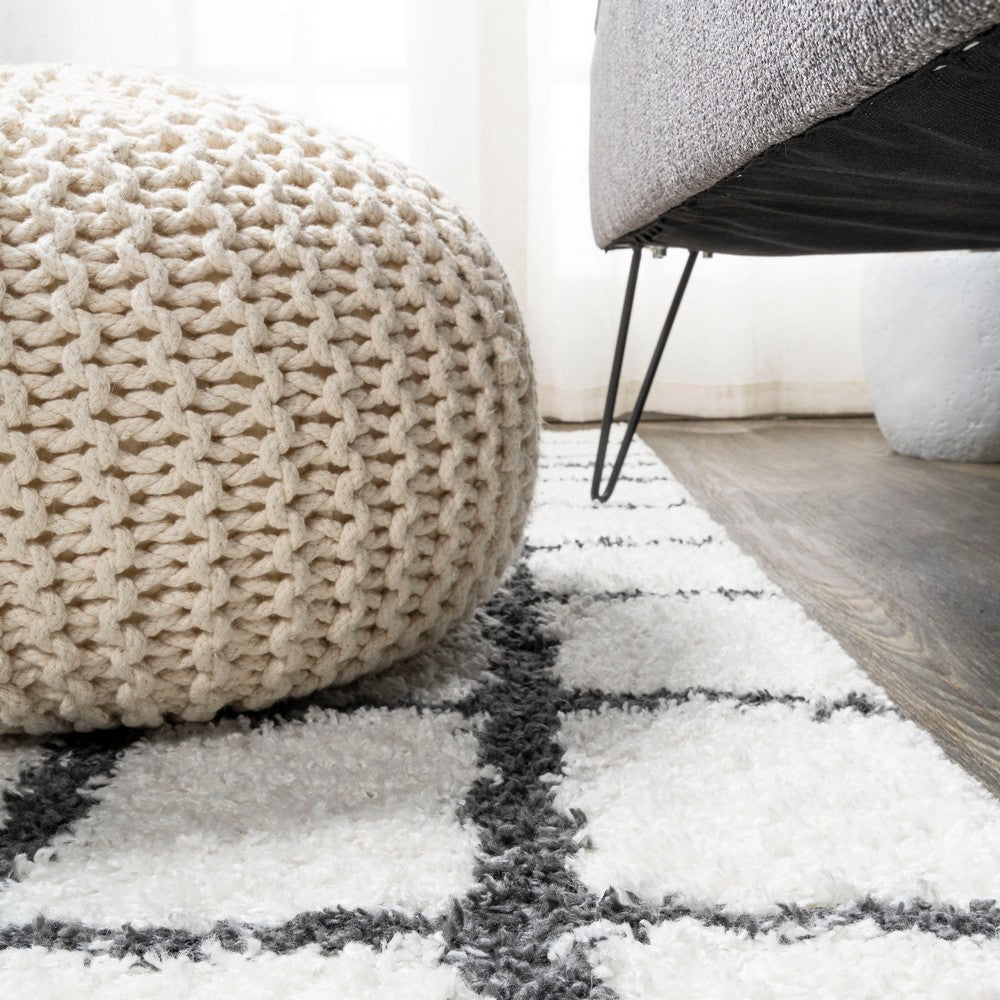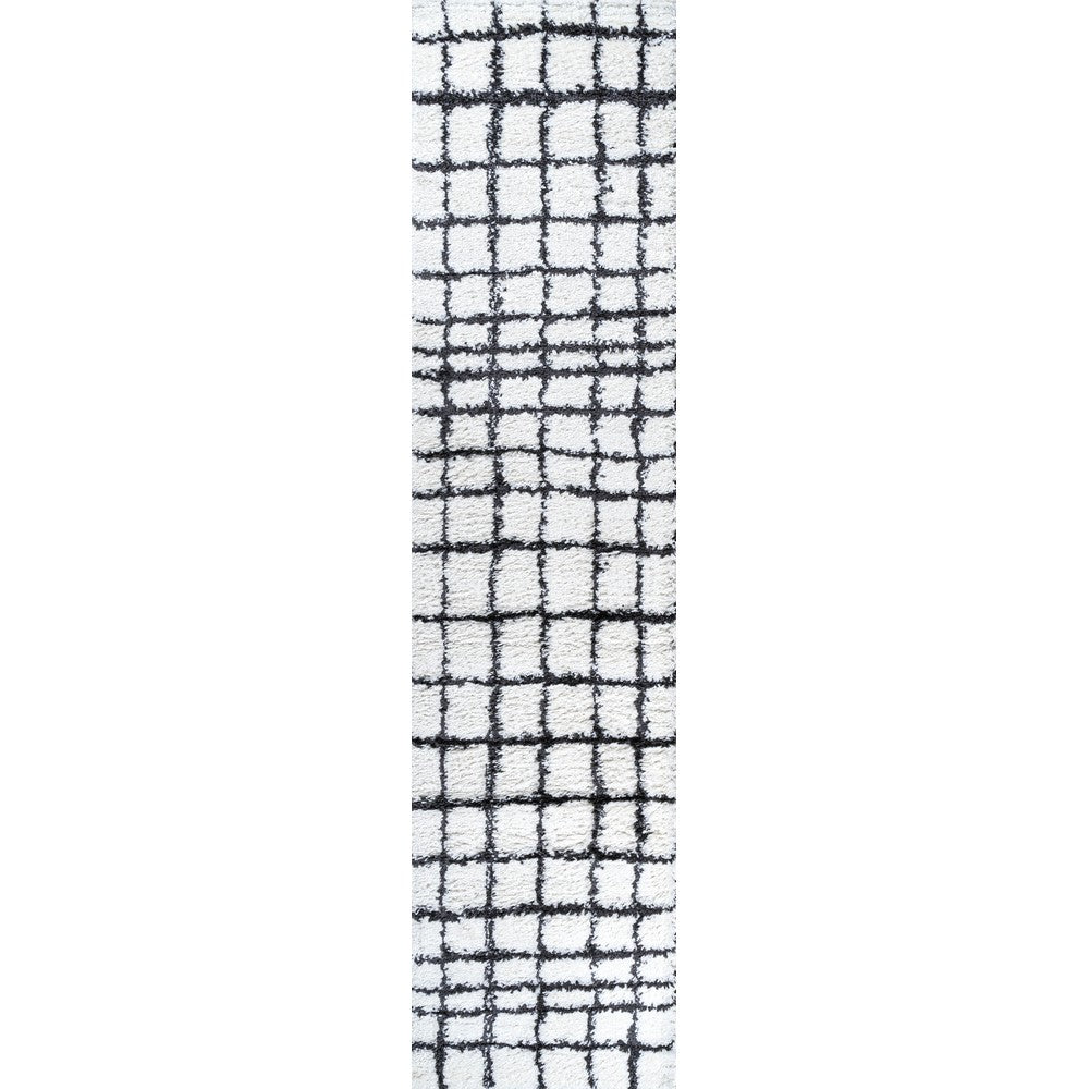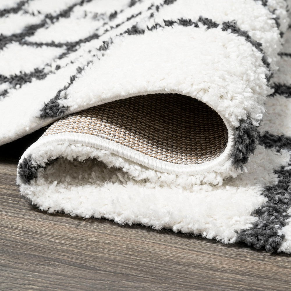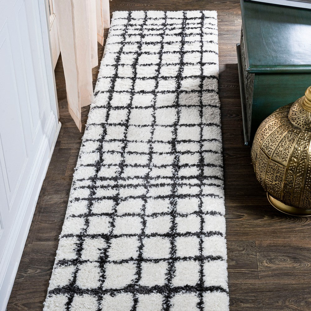 Inspired by Moroccan rugs, our modern rug has a soft, low shag pile. The geometric crisscross pattern is woven in black on an ivory background; our minimalist plaid design has mid-century flair. Add graphic punch to your living room, bedroom, or reading nook with this easy-care rug.