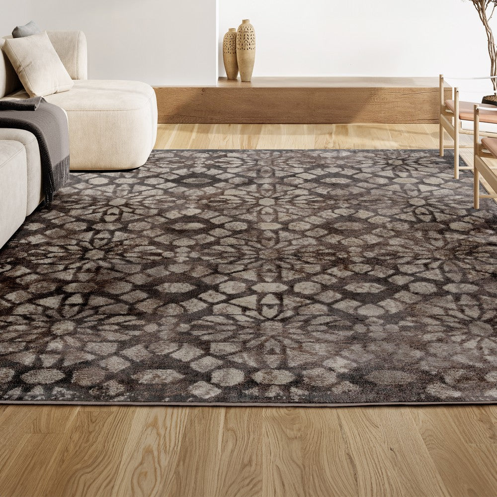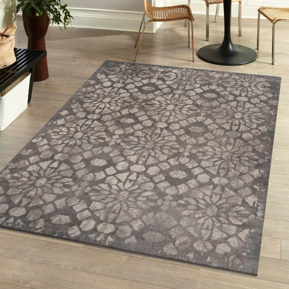 Inspired by the tile floors of Italy and Morocco, this rug's modern, neutral design adds rich pattern underfoot. The stylish geometric trellis is accented by ornate medallions, woven in ivory on a gray background. Whether your style is contemporary or traditional, this rug adds impact to a living room, dining room or bedroom. The easy-care, all-over design is perfect for busy families.