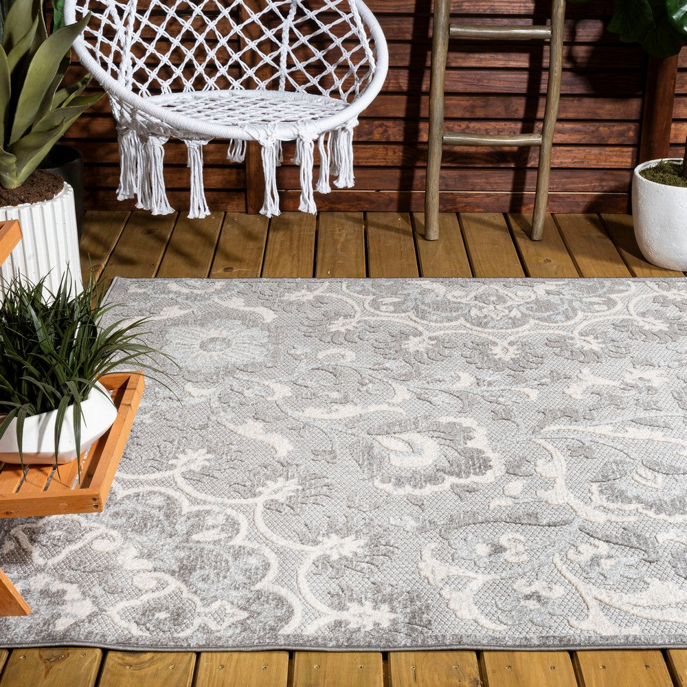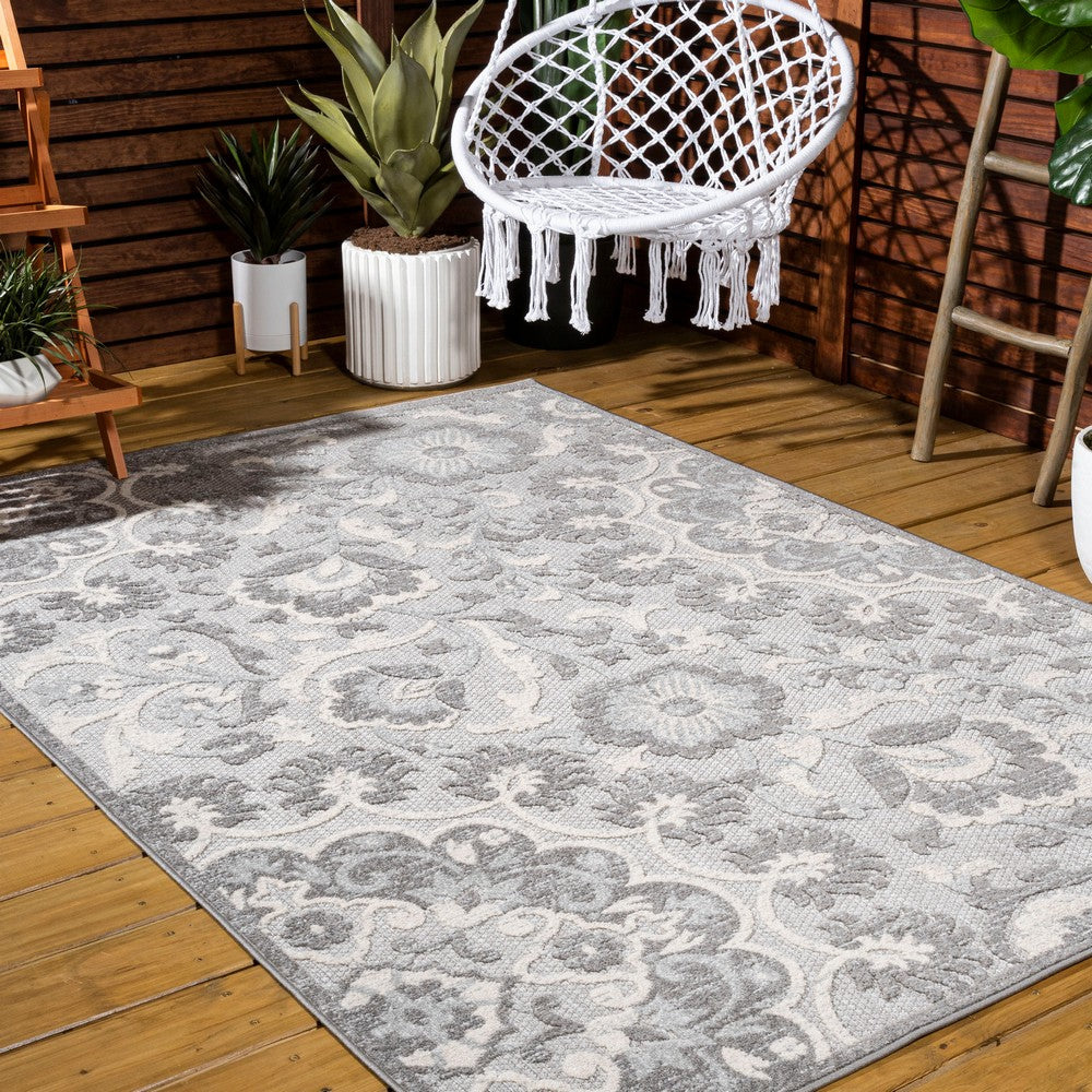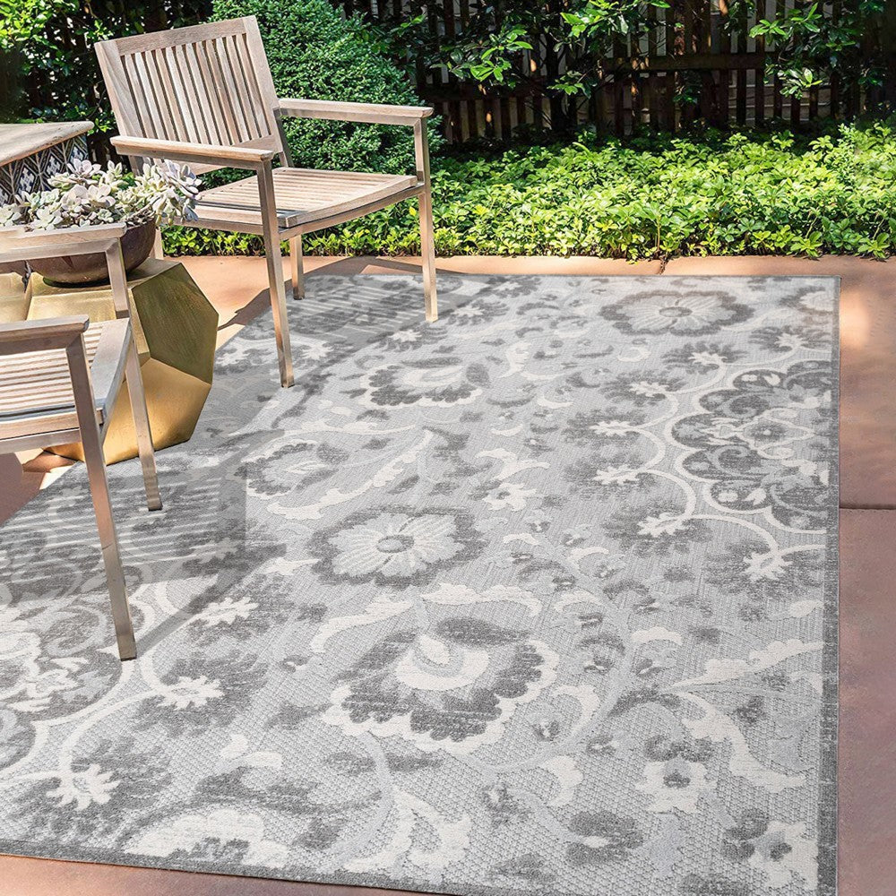 This indoor-outdoor rug's ornate medallion design recalls Moroccan patterns, but the color palette is modern. The all-over design is an easy maintenance solution for homes with kids and pets; use it in a kitchen, living room, bedroom or dining room. Outdoors, this eclectic rug adds a Boho-chic touch to a porch or patio.