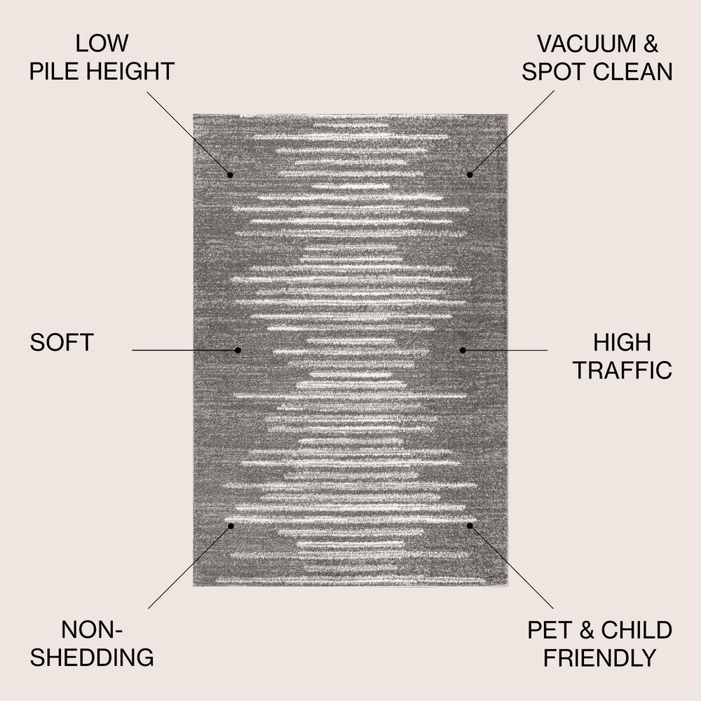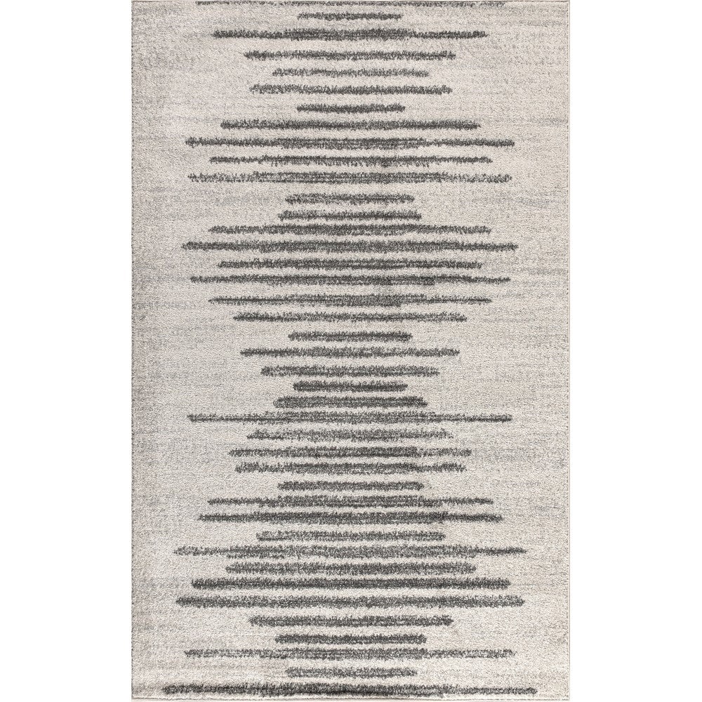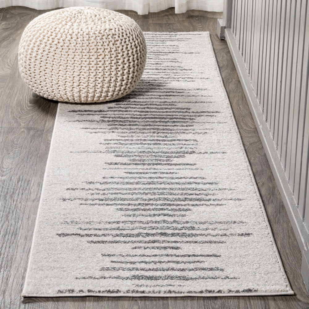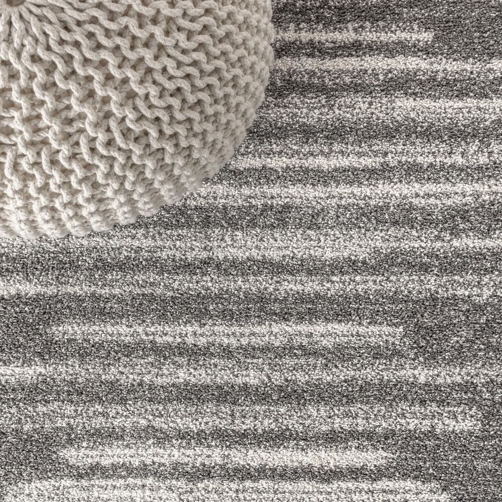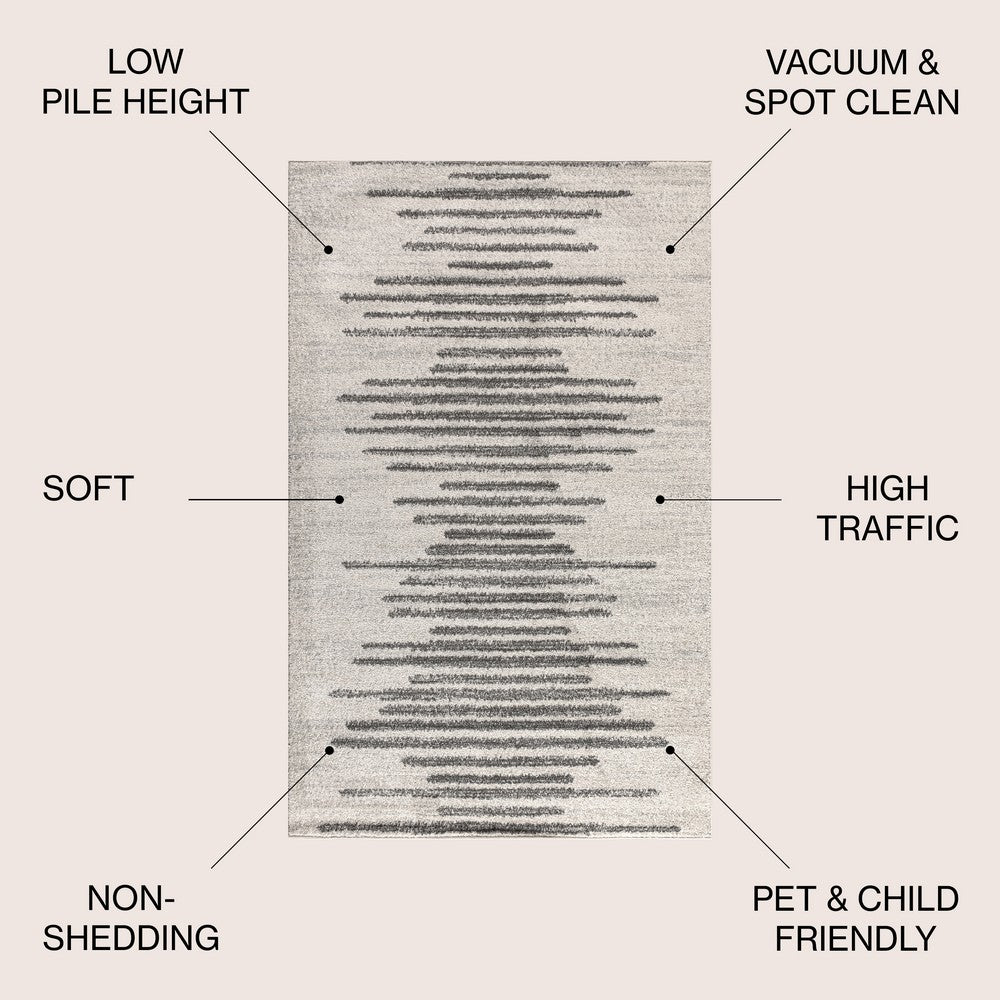 Inspired by vintage Moroccan rugs, our modern striped rug is power-loomed with a short pile. The central stripe pattern is woven in gray on an ivory background; the mingled threads recall traditional handwoven rugs. Add some Bohemian style to your home with this easy-care rug.