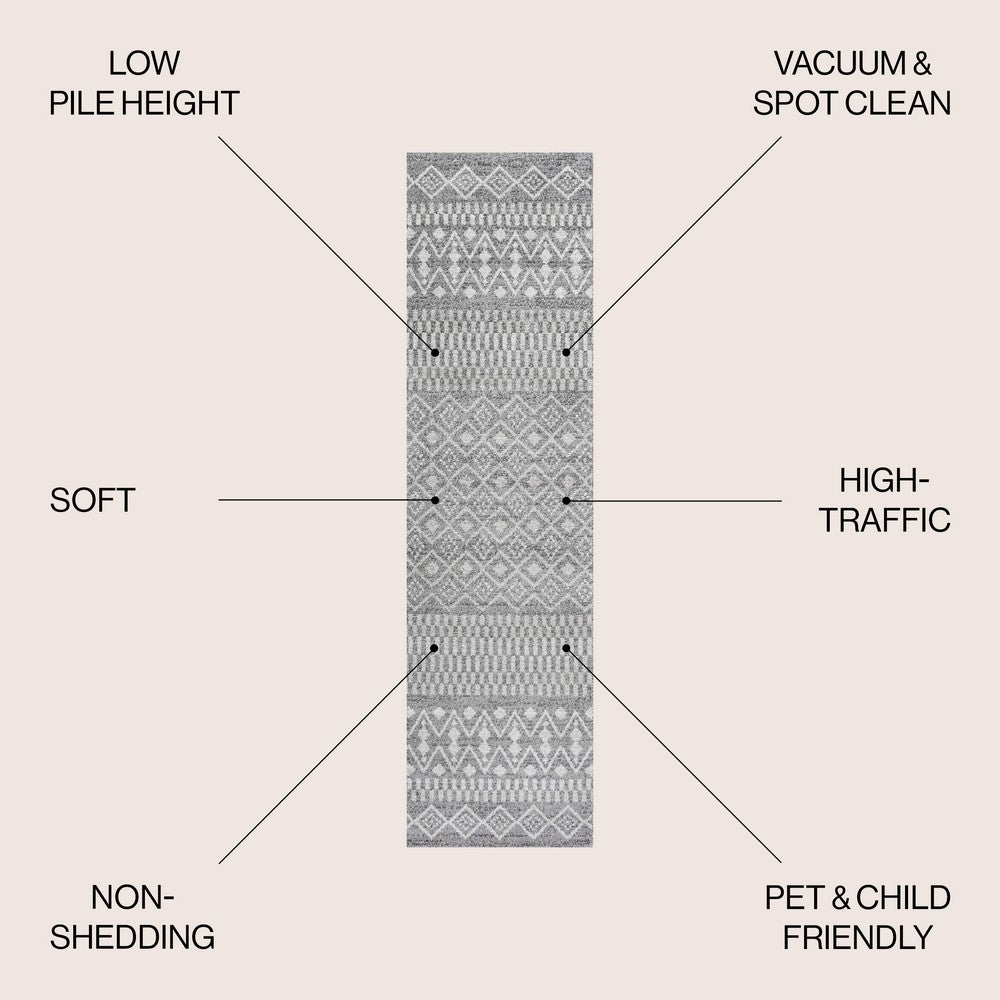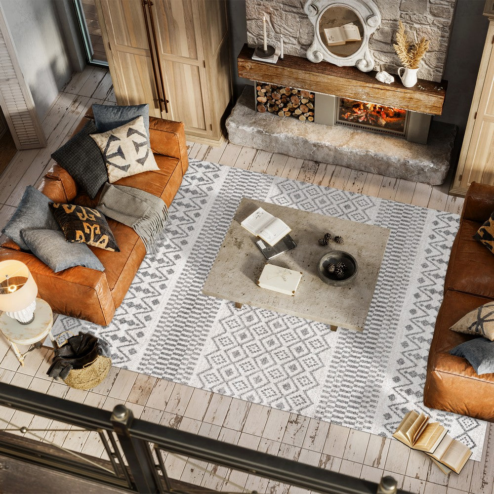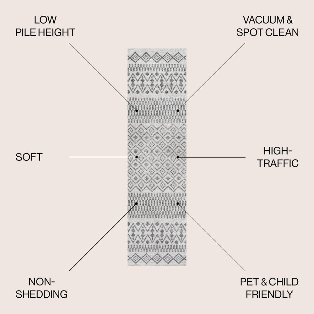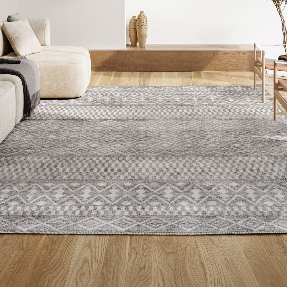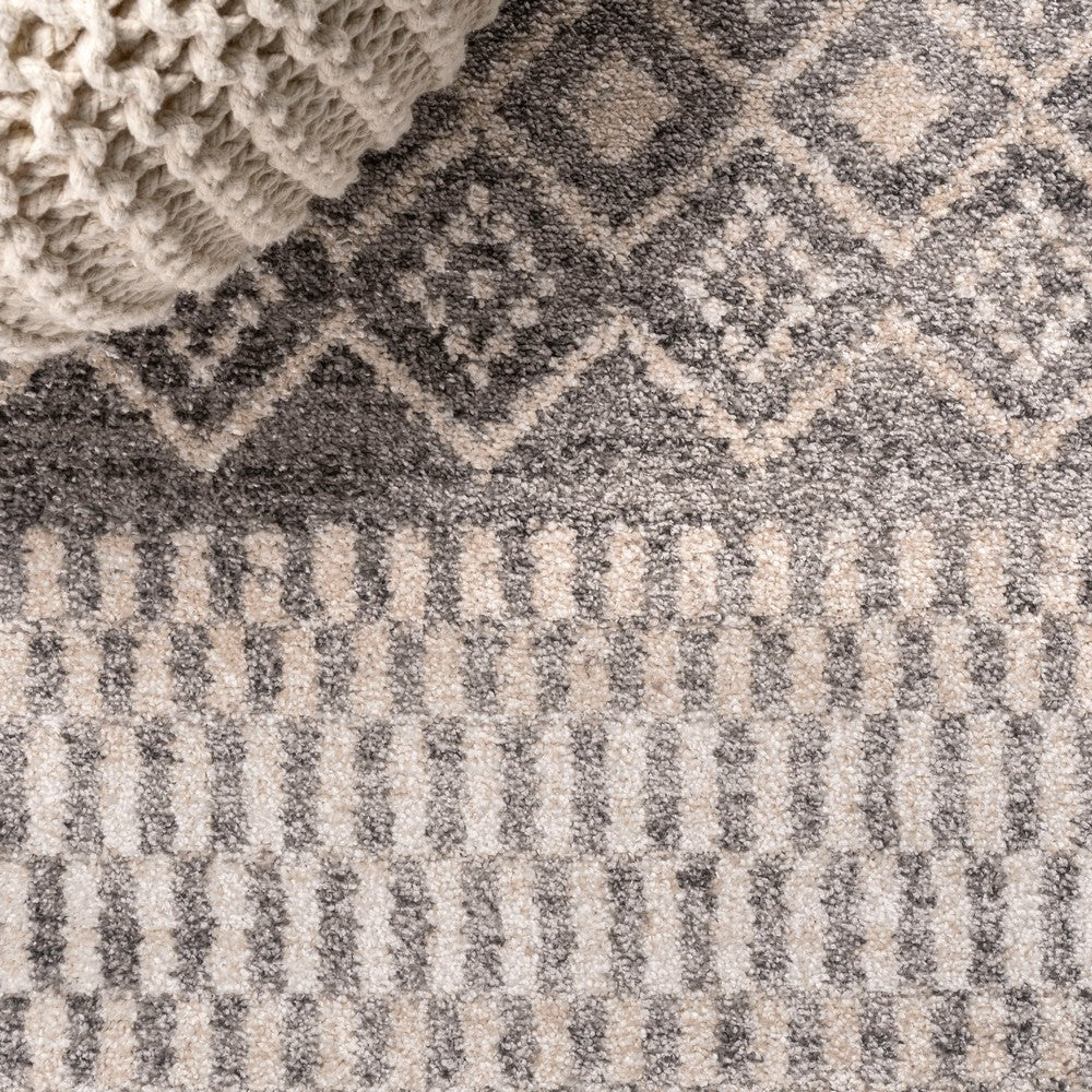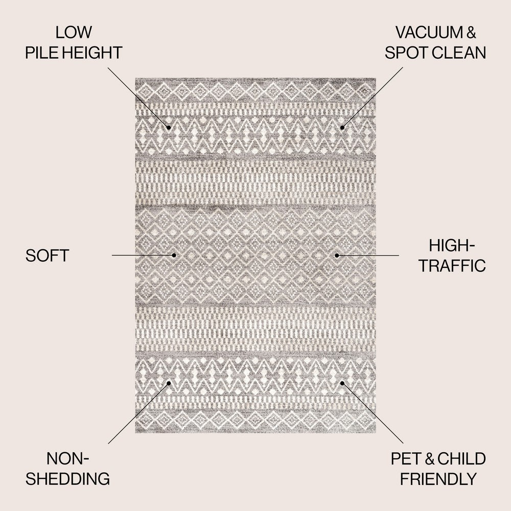 Inspired by vintage Moroccan tribal rugs, our modern version is ideal for a living room, bedroom or entry. Berber-inspired geometric designs are woven in ivory on a field of gray; the mingled threads recall traditional handwoven rugs. Add some Bohemian style to your home with this easy-care rug.