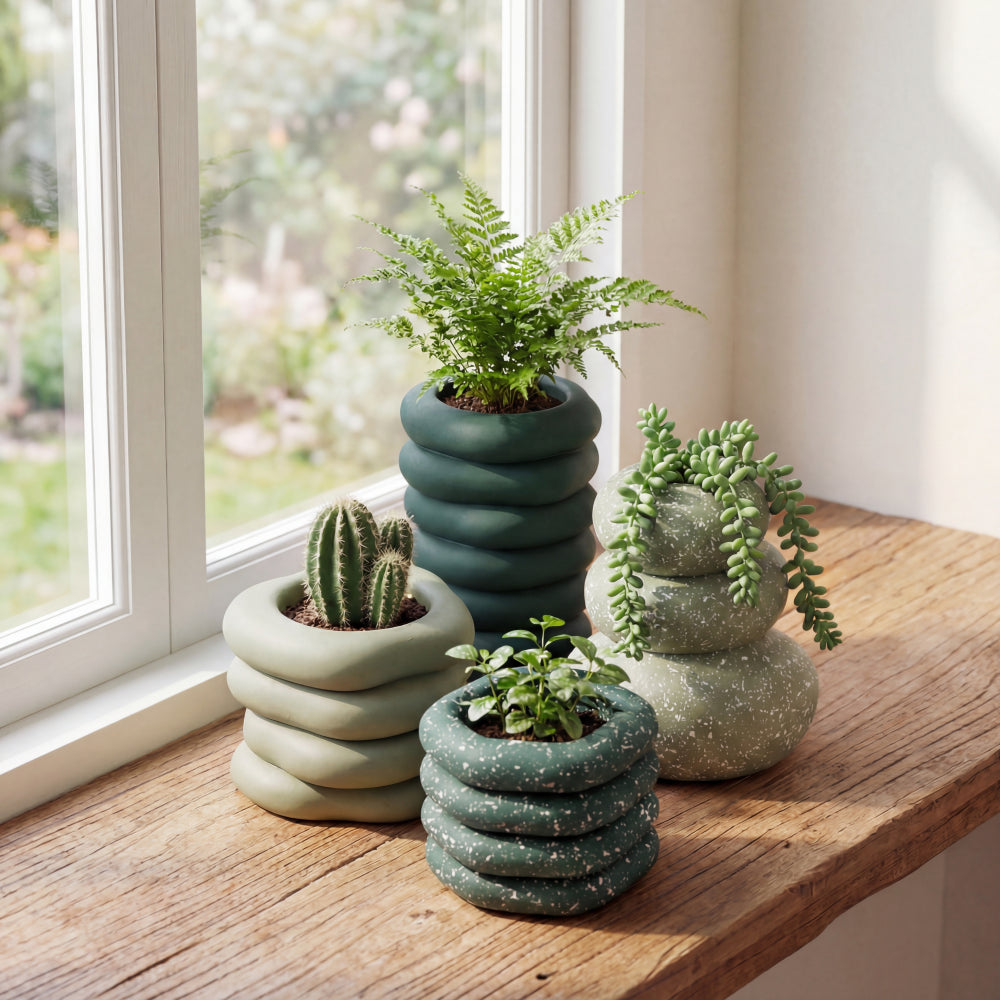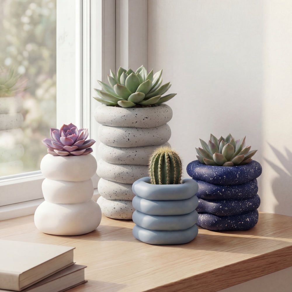 Zyra Modern Minimalist Handmade Concrete Stacked Ring Planter Set with Drainage Holes