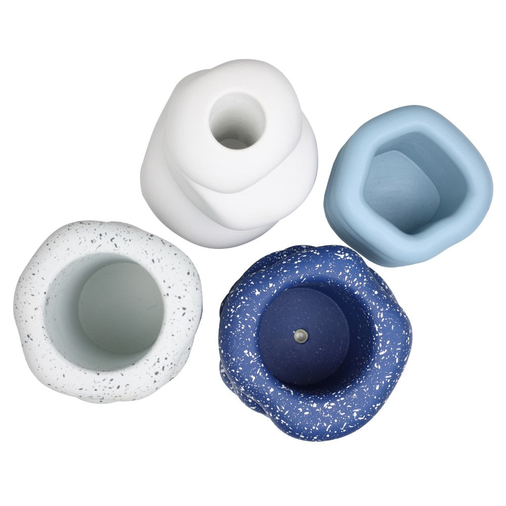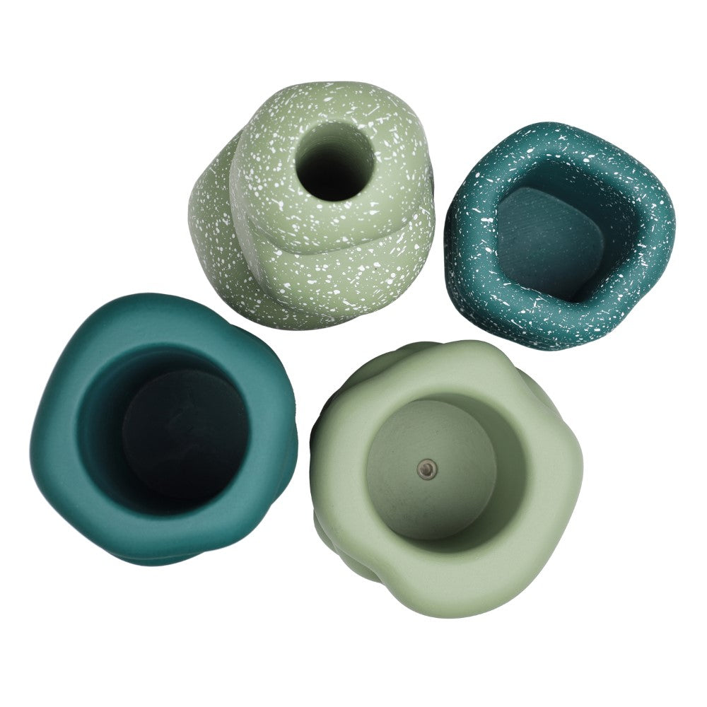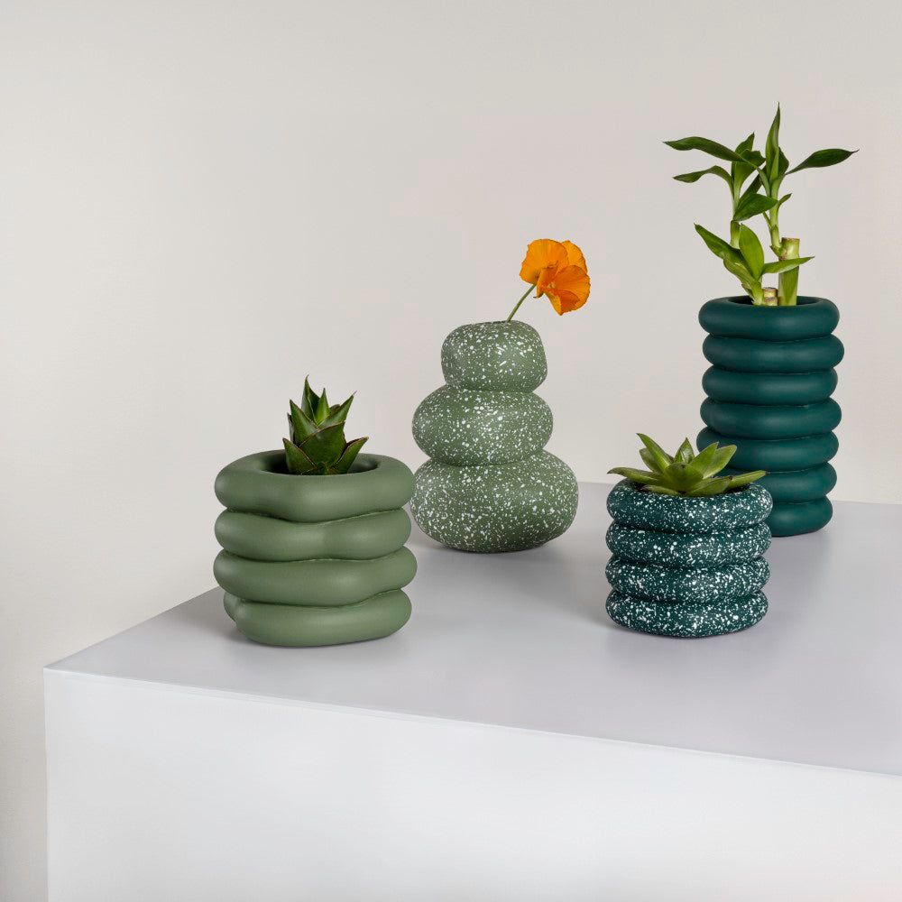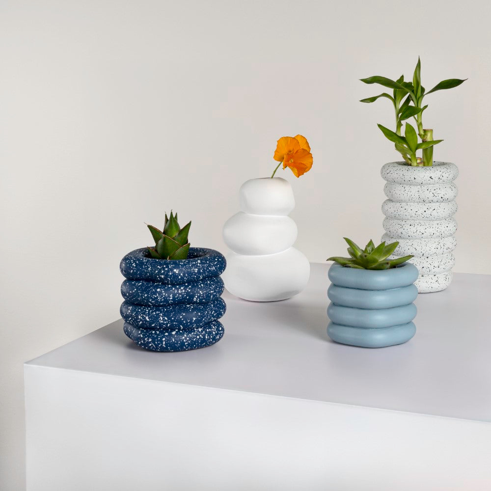 Inspired by balanced cairn formations, this handmade concrete vase set explores the harmony of stacked ring silhouettes and sculptural form. Rounded layers create rhythmic dimension, while the smooth matte finish enhances the organic curvature and architectural presence of each piece. Designed as a cohesive quartet, the collection forms a bold yet grounded composition rooted in modern simplicity.