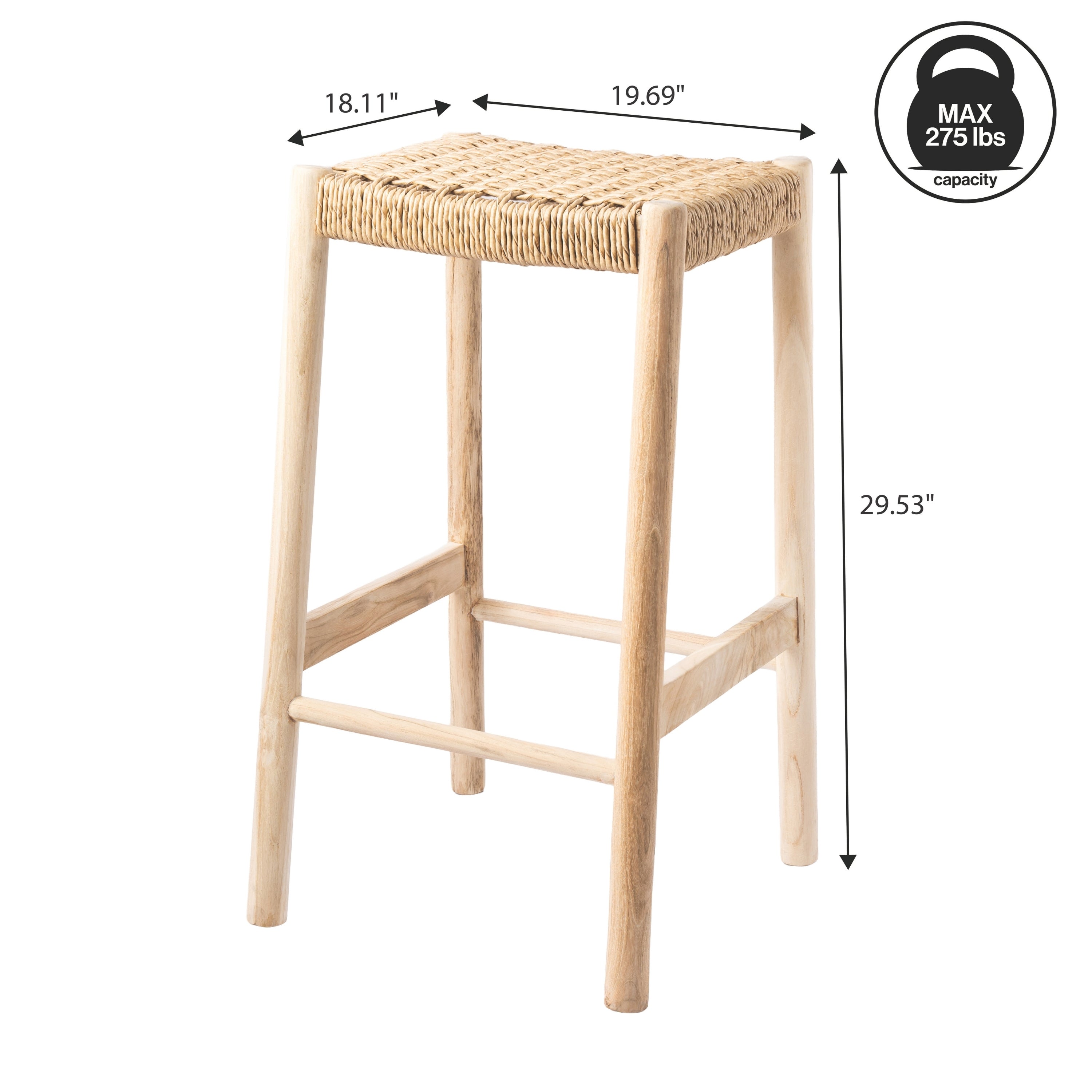 - Crafted with durable synthetic rattan weaving and a sturdy teak wood frame, this backless bar stool offers both style and function