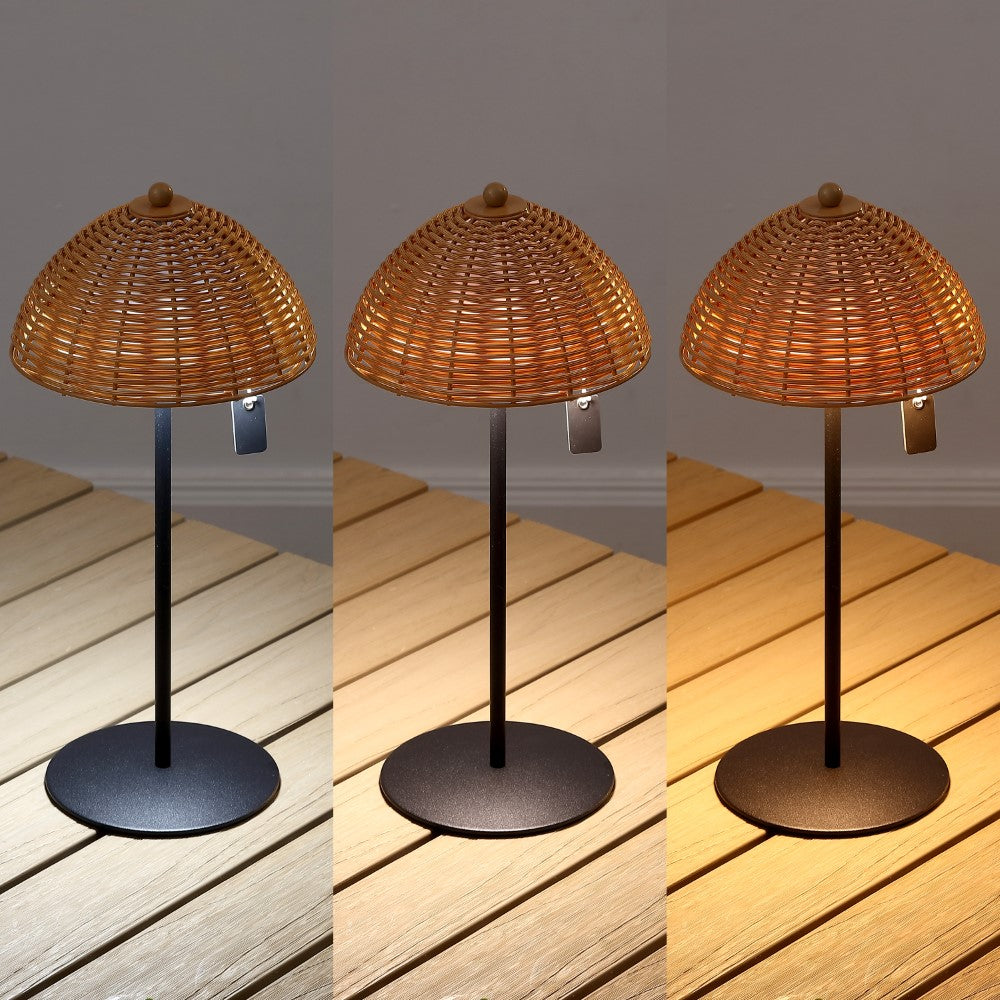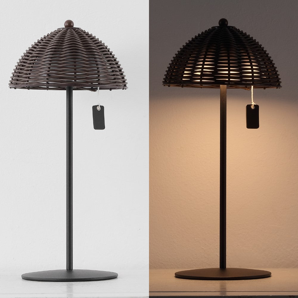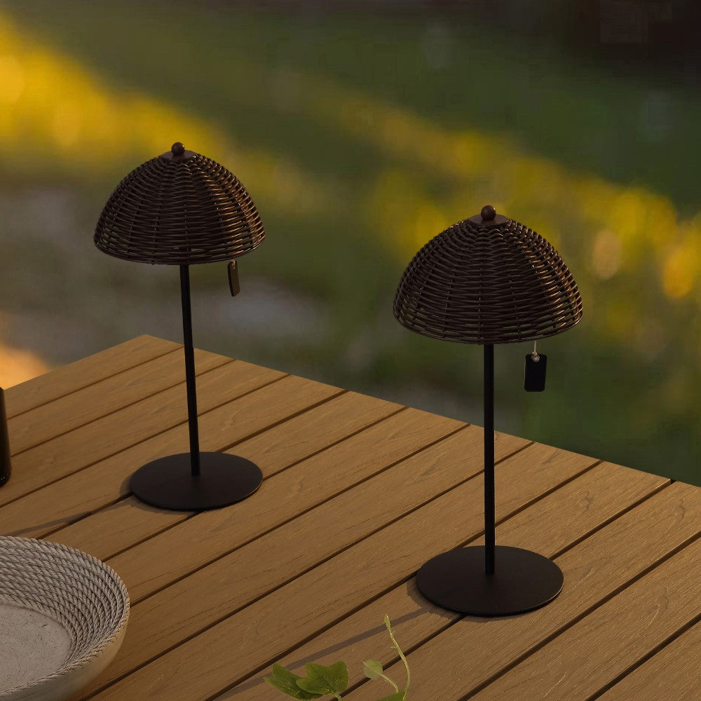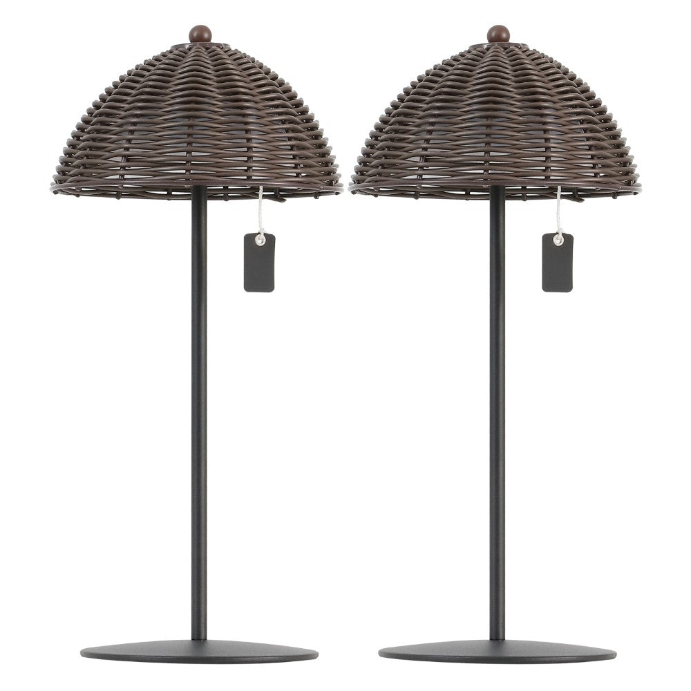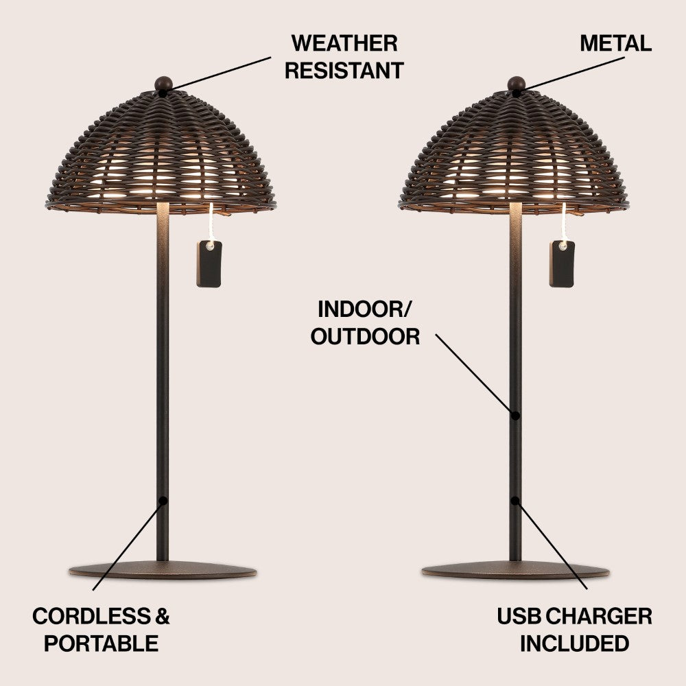Accent a porch or patio with this pair of modern, coastal style table lamps. Made from durable aluminum and plastic, these mini lamps feature a 6.75" wide base that can tuck into a small space; the faux wicker shade contains a rechargeable battery with a touch sensor switch. Integrated LED bulbs add bright, warm light indoors and out.