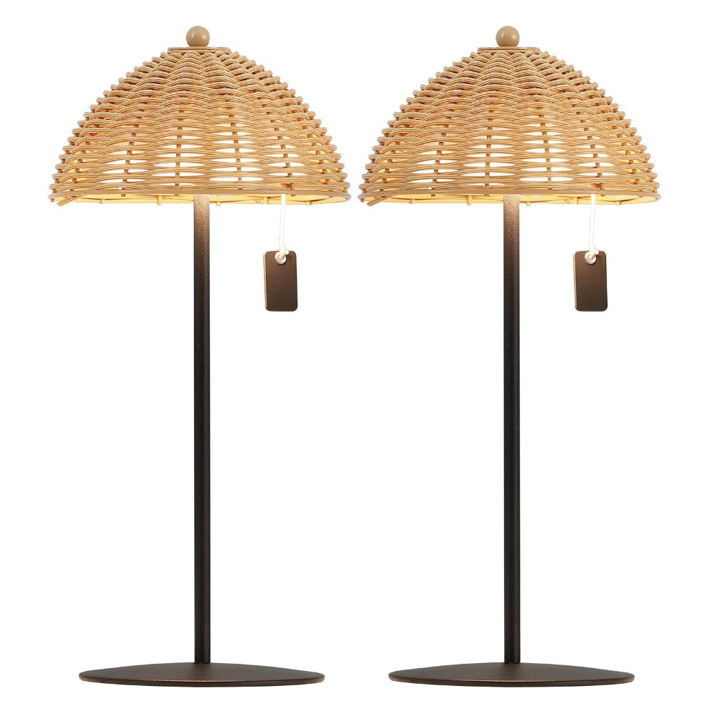 Ardath 12.75" Modern Coastal Indoor/Outdoor Wicker Shade Rechargeable/Cordless Dimmable Integrated LED Table Lamp Set 2