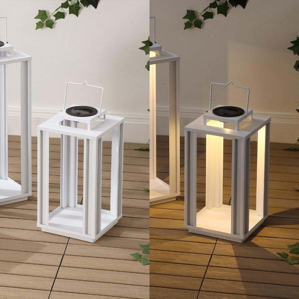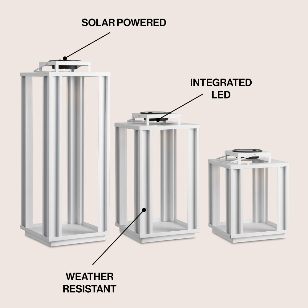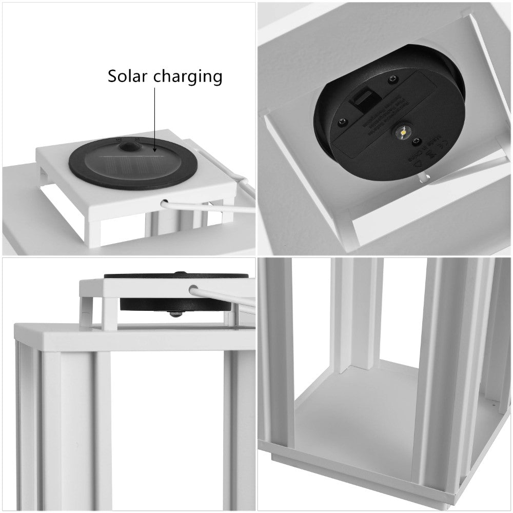 - These contemporary lanterns charge automatically via a solar cell on the top of each, with an on-off switch
