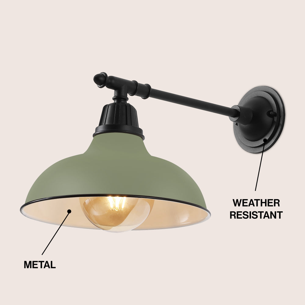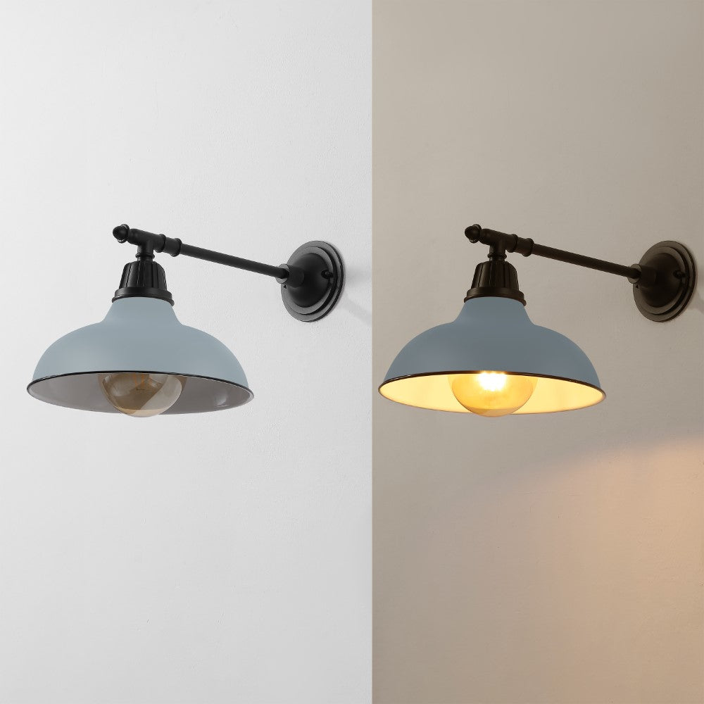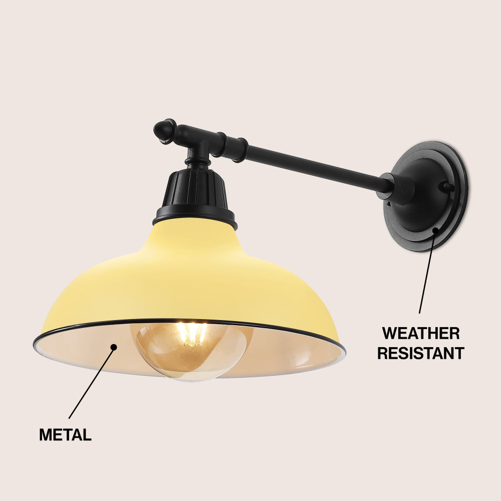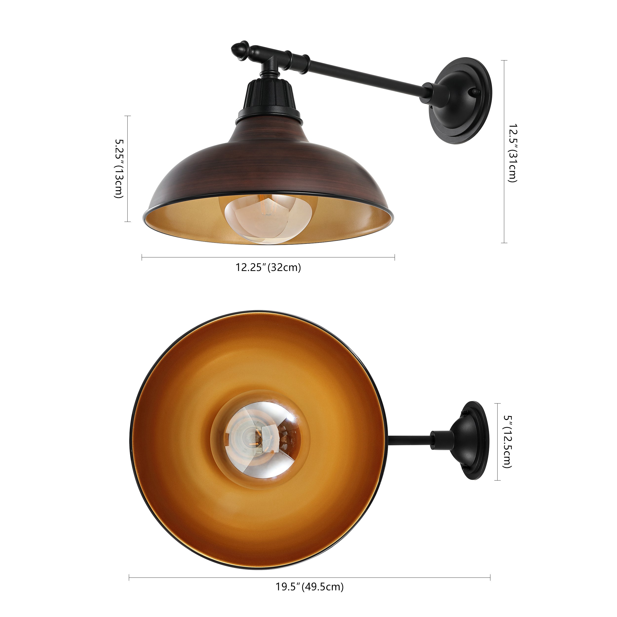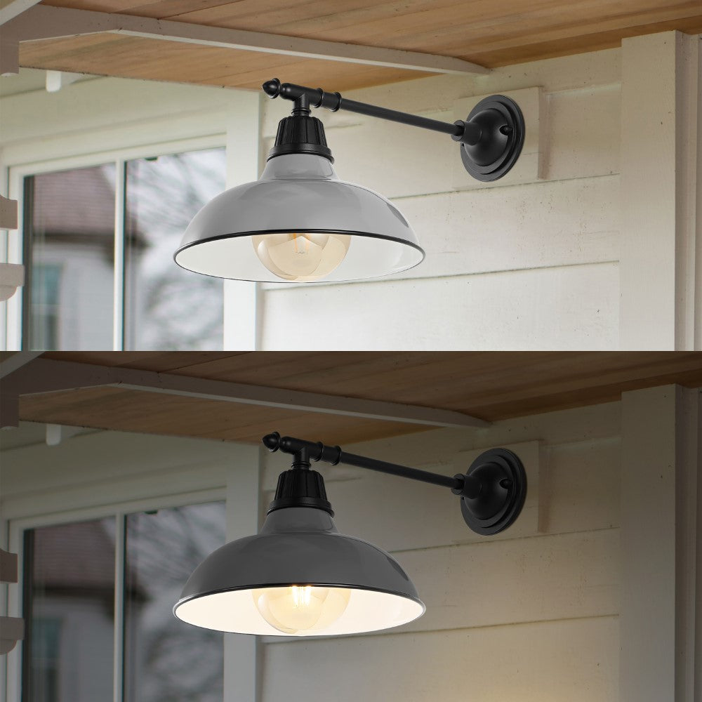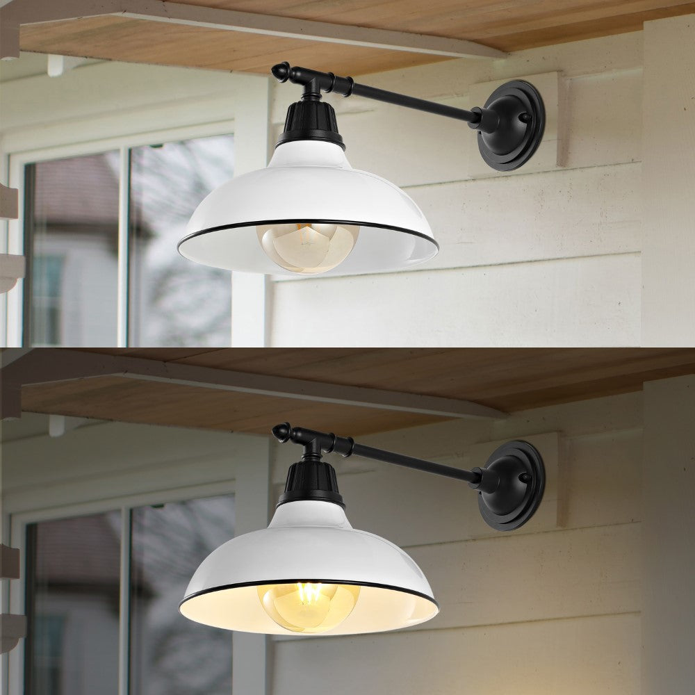 Our vintage style metal wall light adds an industrial touch to any farmhouse design. The warm globe LED bulb has a painted shade mounted on a straight bracket. This outdoor light fixture can be used indoors as well, for residential and hospitality projects.