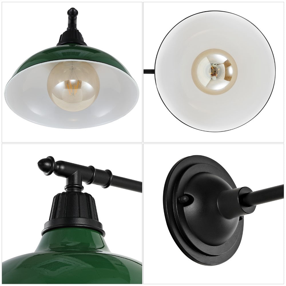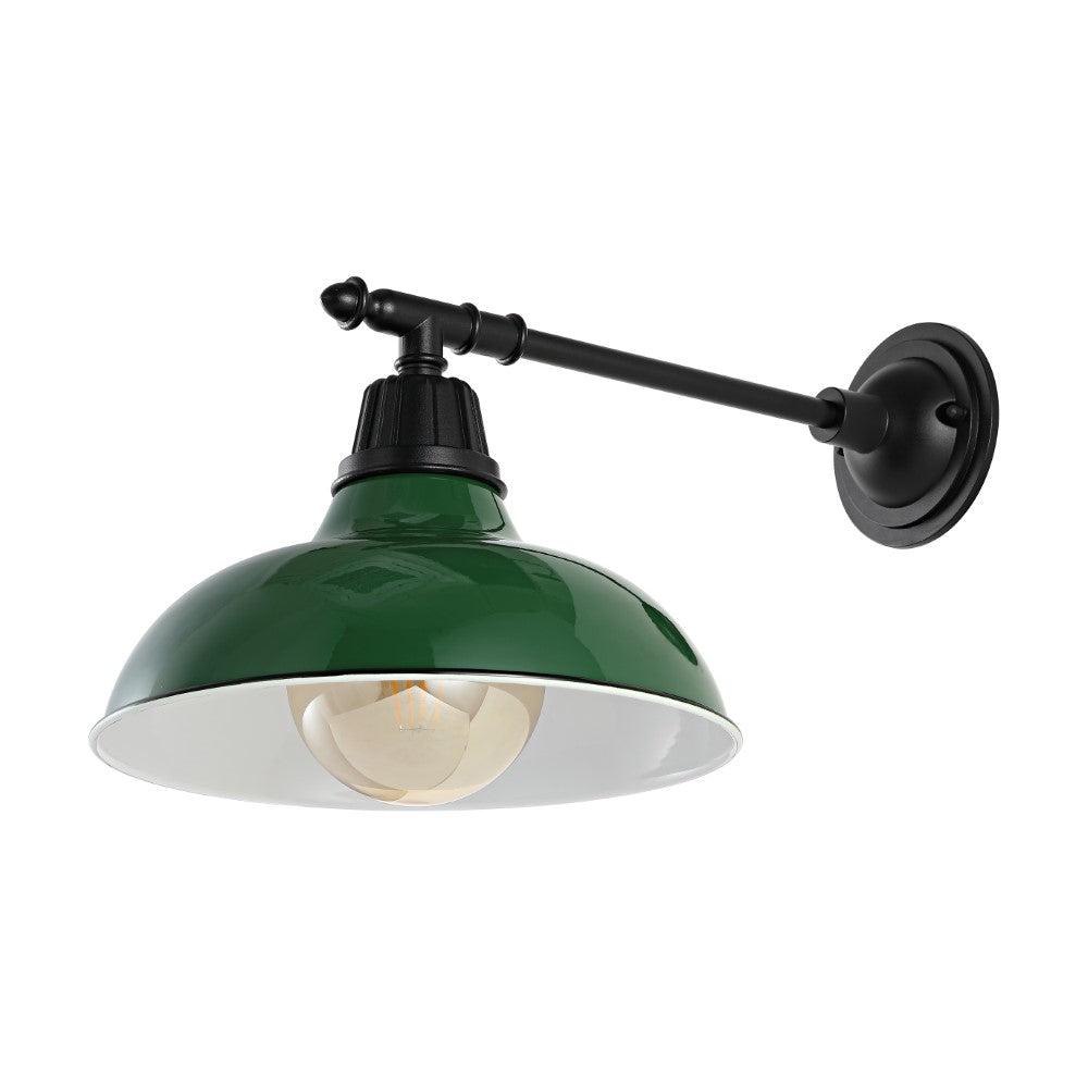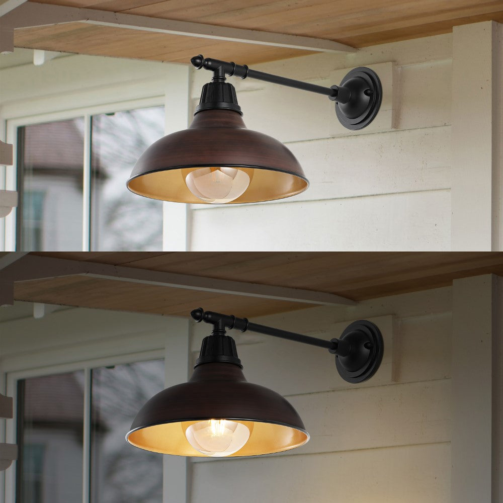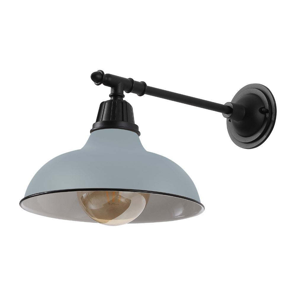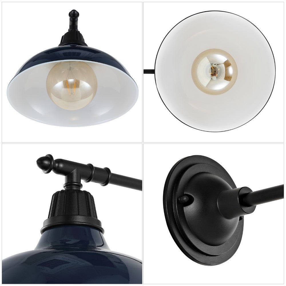 Our vintage style metal wall light adds an industrial touch to any farmhouse design. The warm globe LED bulb has a painted shade mounted on a straight bracket. This outdoor light fixture can be used indoors as well, for residential and hospitality projects.