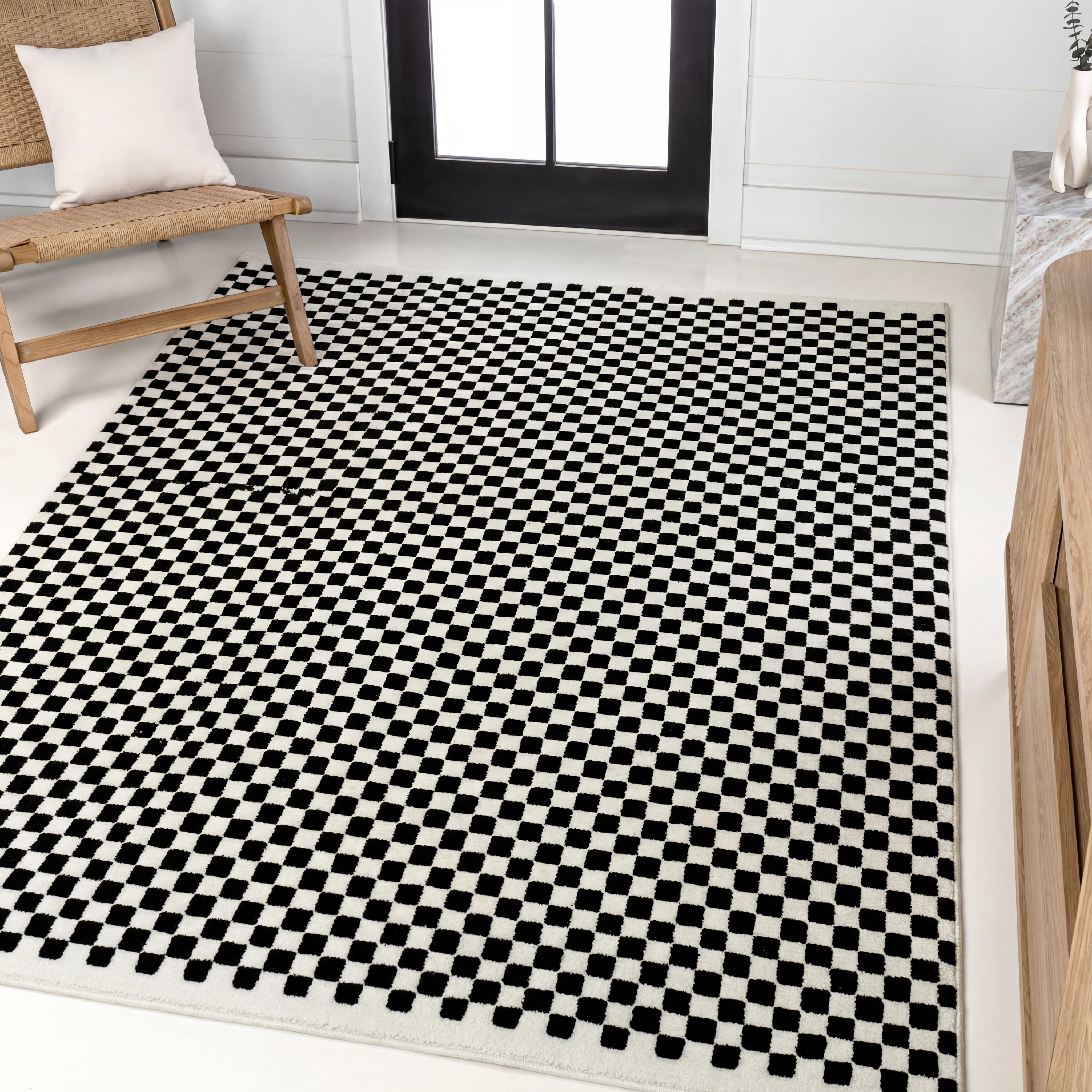 Tartan High-Low Modern Minimalist Checkered Monotone Indoor/Outdoor Area Rug