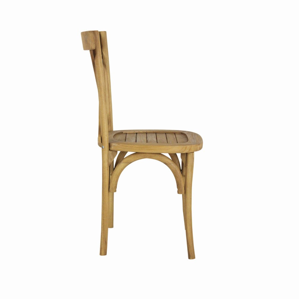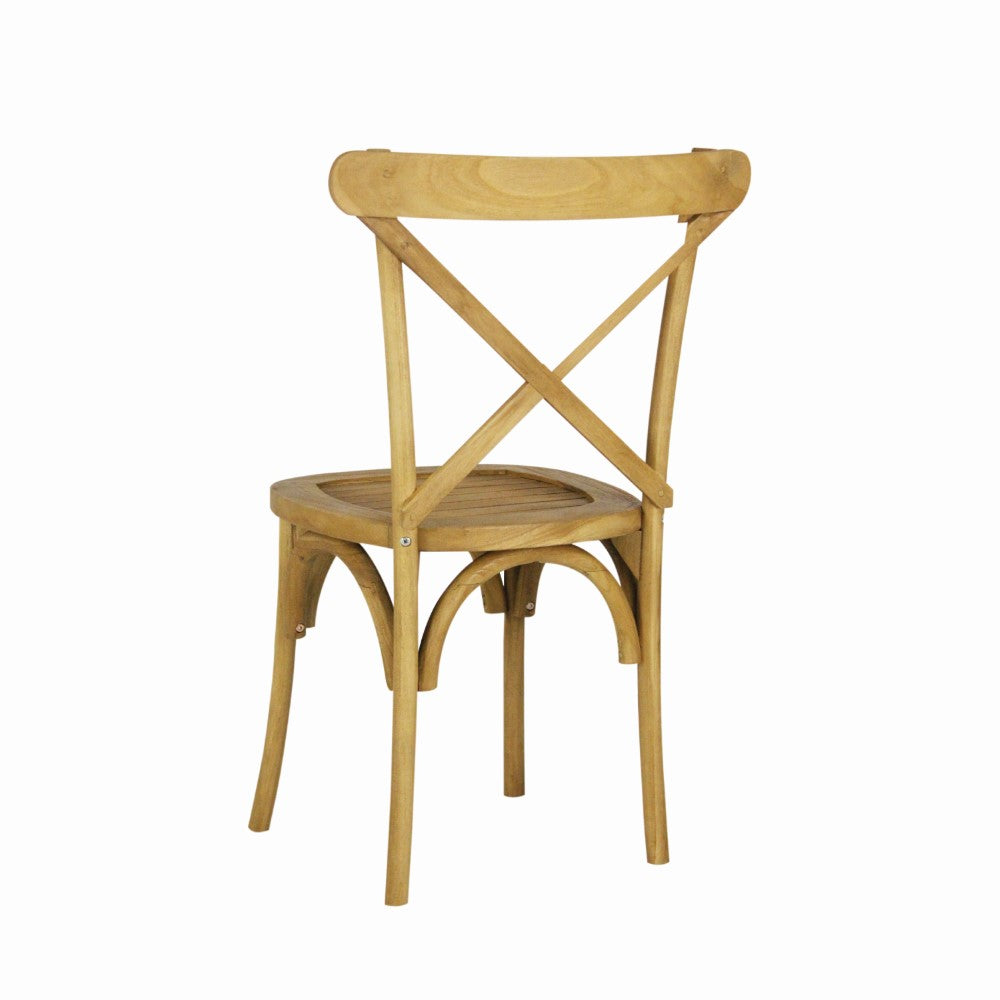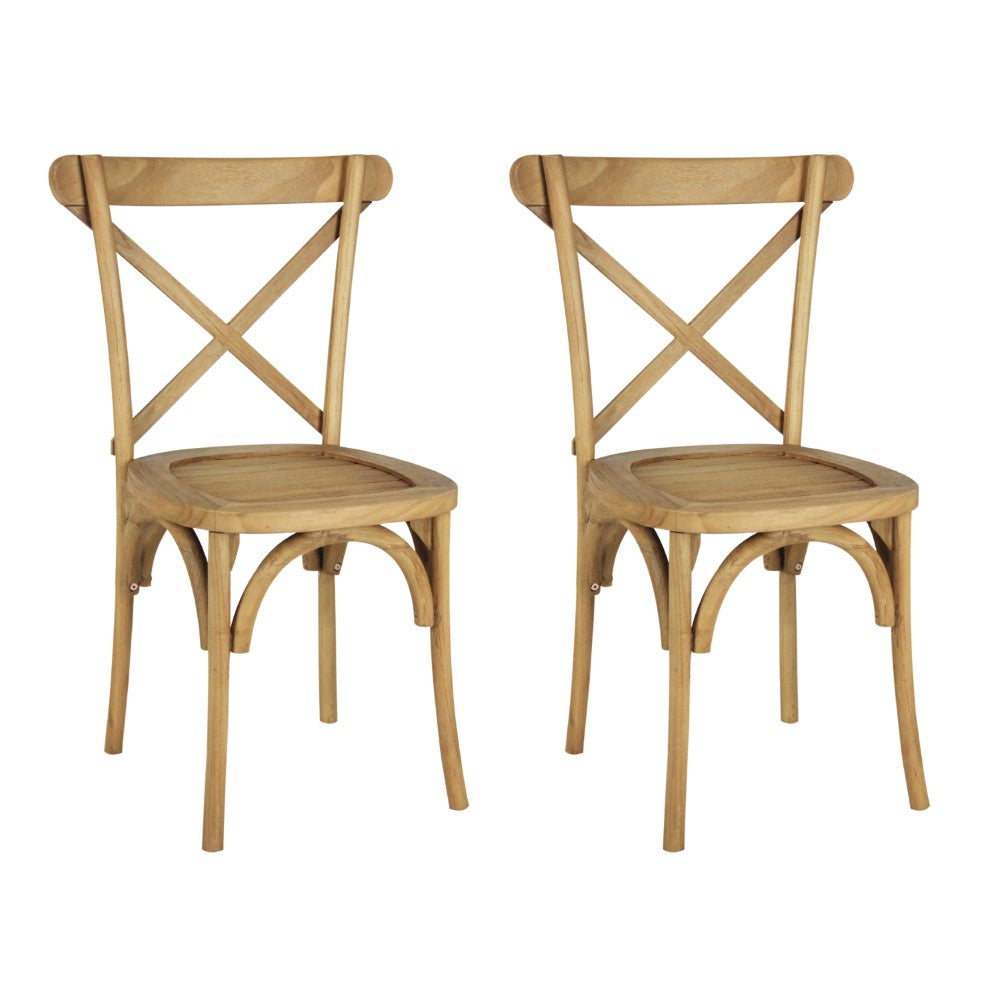 Our classic café dining chairs add instant bistro style to your covered patio or porch - and you can use them indoors too! This set of two cross-back chairs is made from sturdy hardwood and protected with a teak oil finish. Whether your home is traditional or modern, these timeless chairs add touch of charm to any dining area.
