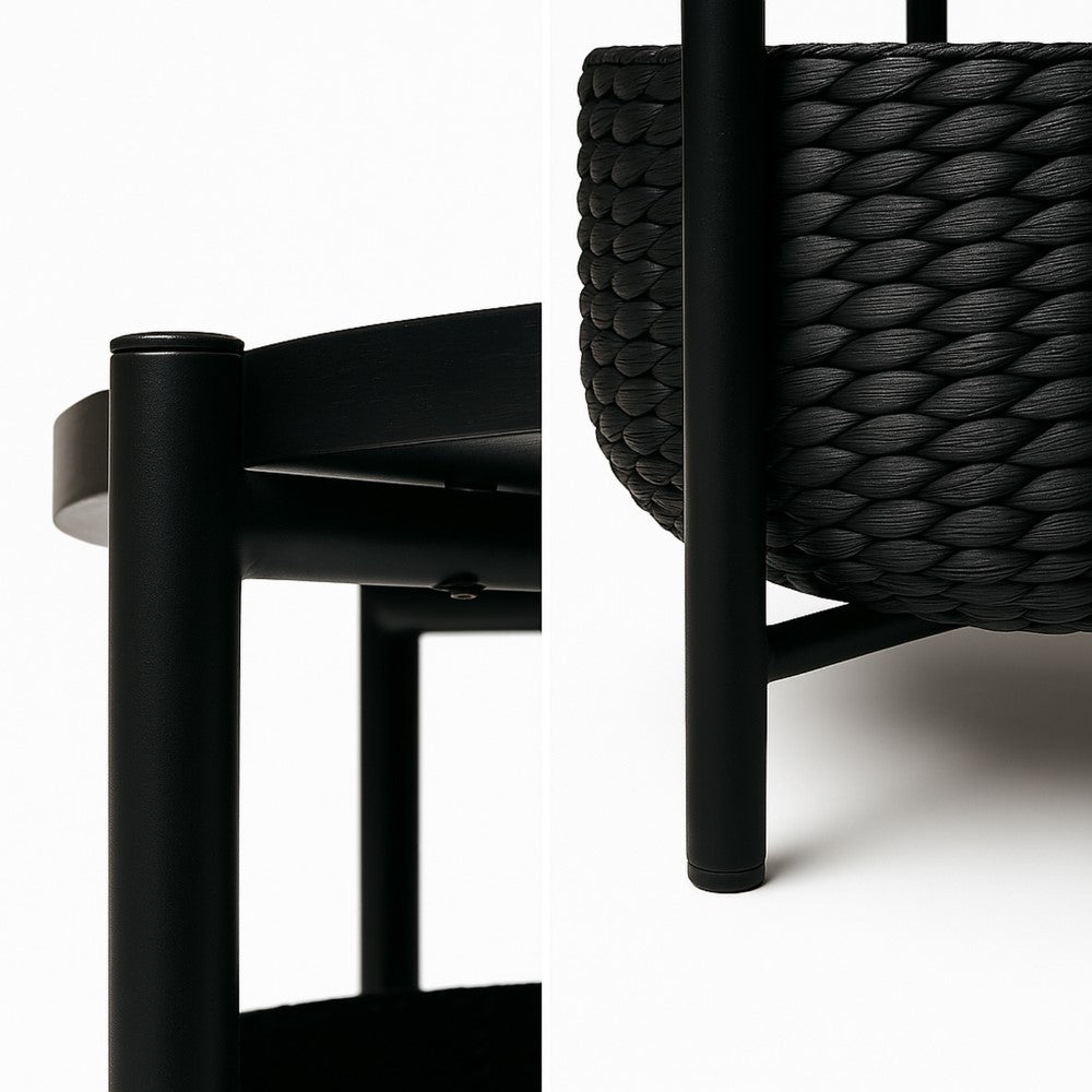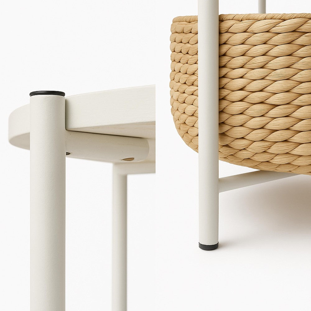 - Sturdy metal frame with a top made from real acacia wood, basket is water hyacinth fibers woven onto a steel frame