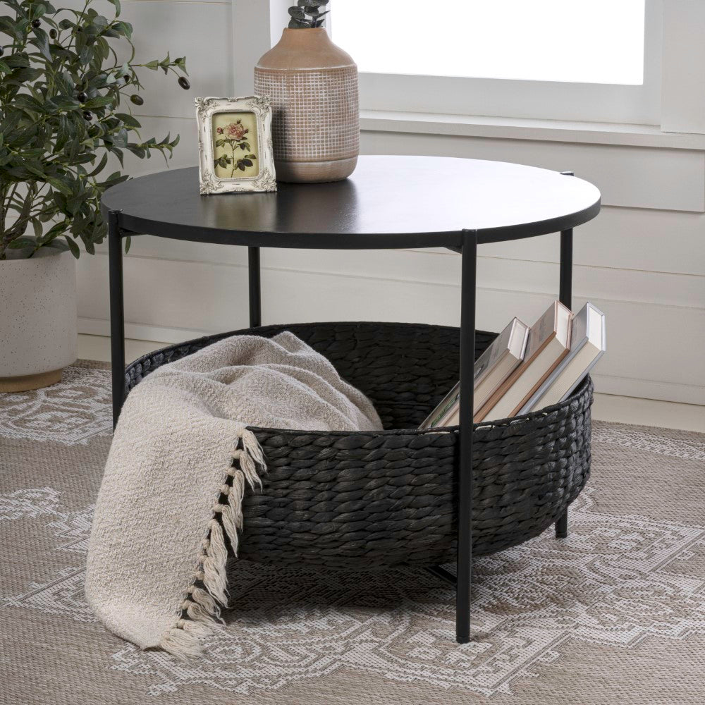 This coastal-inspired side table adds extra storage to the bedroom or living room with modern style. With a durable acacia-wood top and metal frame, this table is built to last. The handwoven water hyacinth basket at the base is the perfect catchall for toys, books or extra pillows.