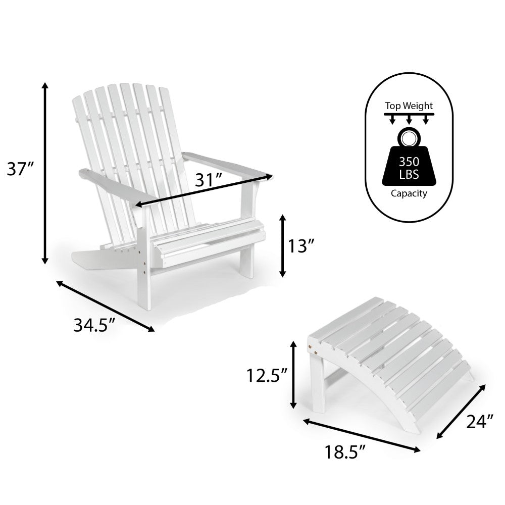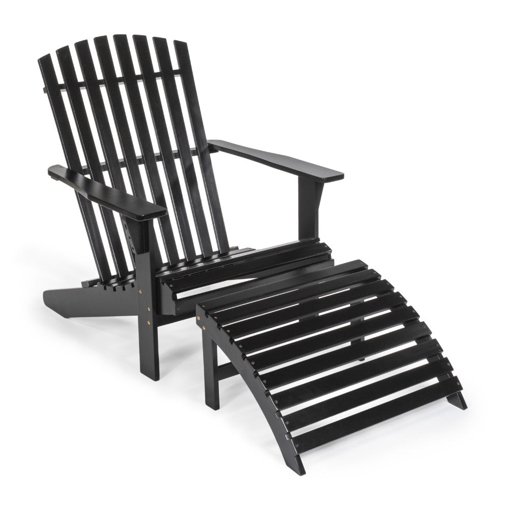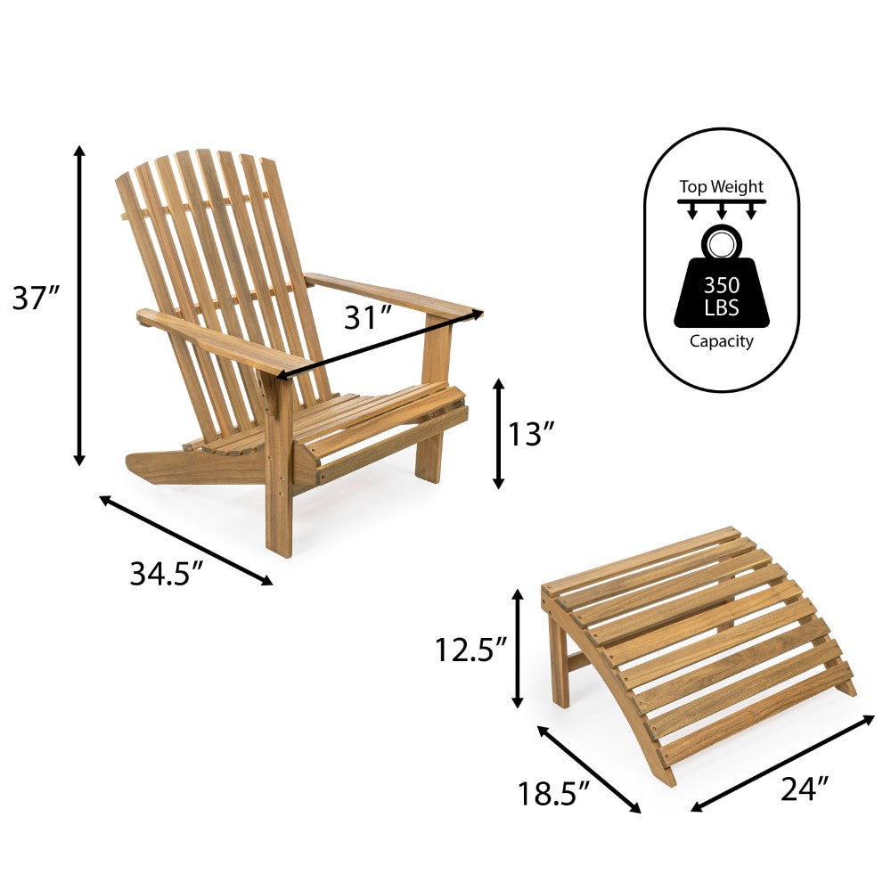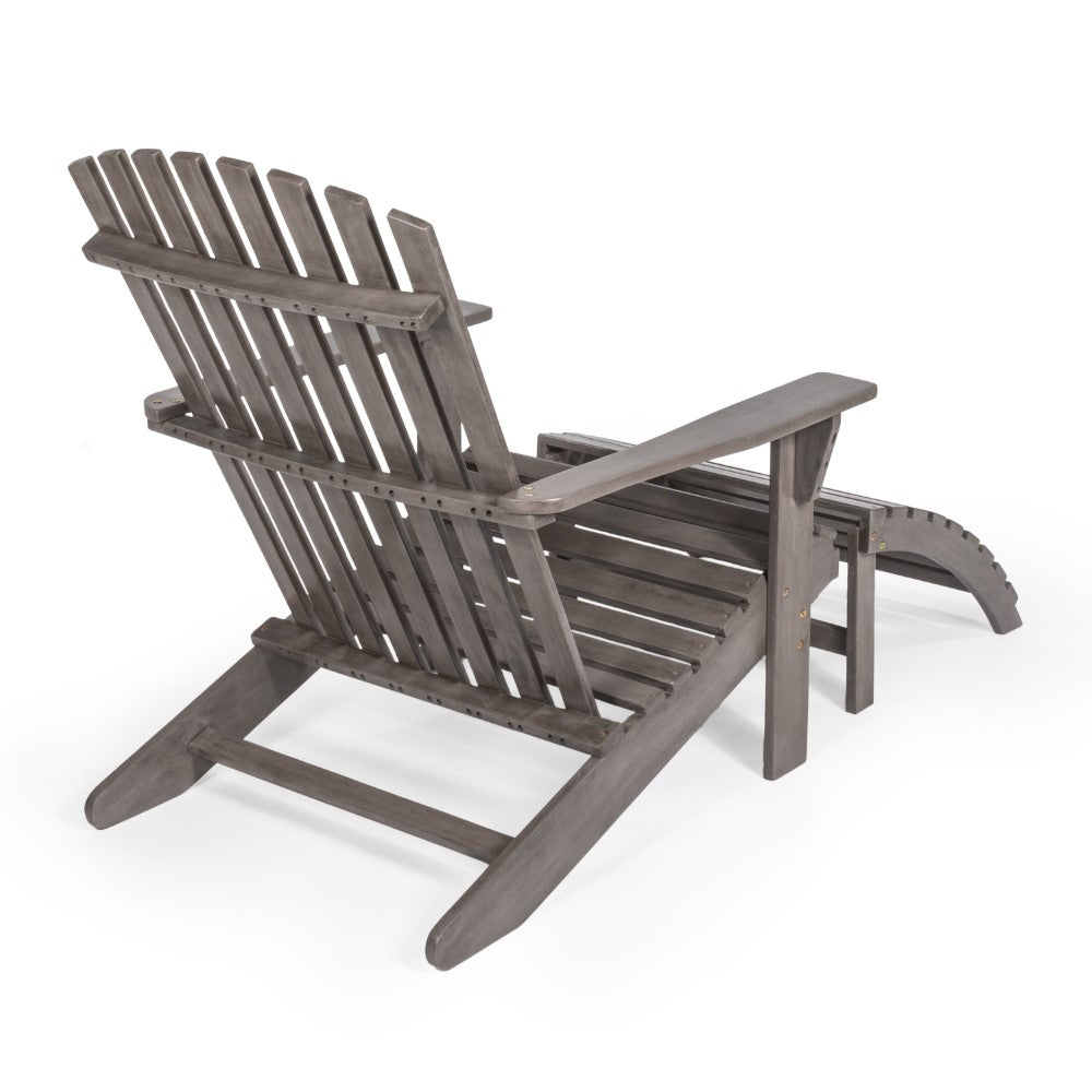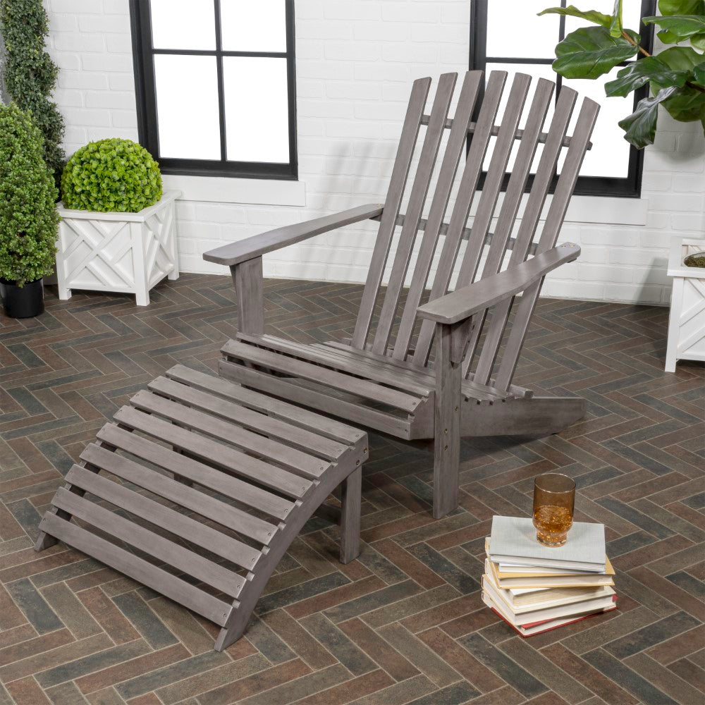 Eucalyptus 2-Piece Traditional Rustic Acacia Wood Adirondack Chair with Detachable Ottoman