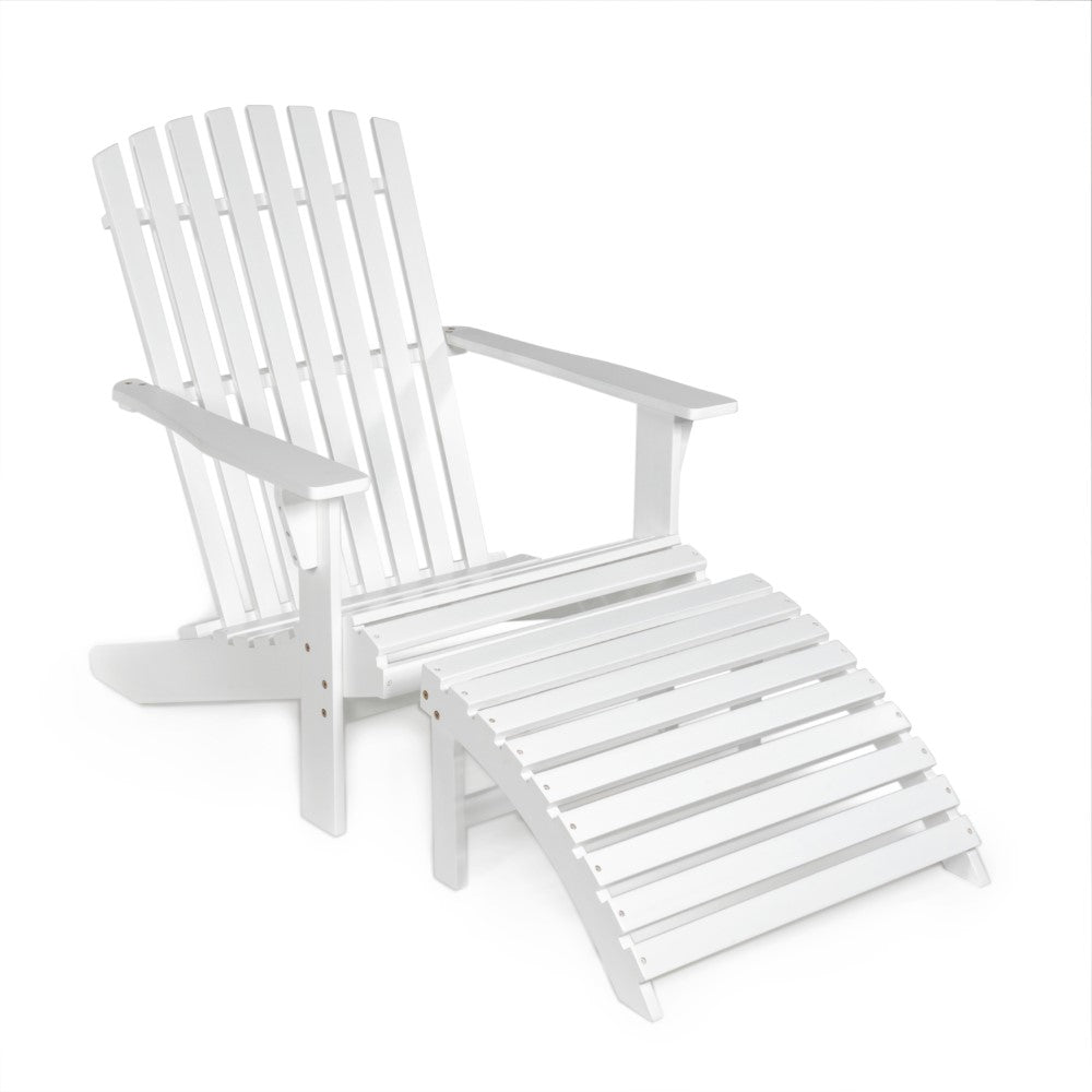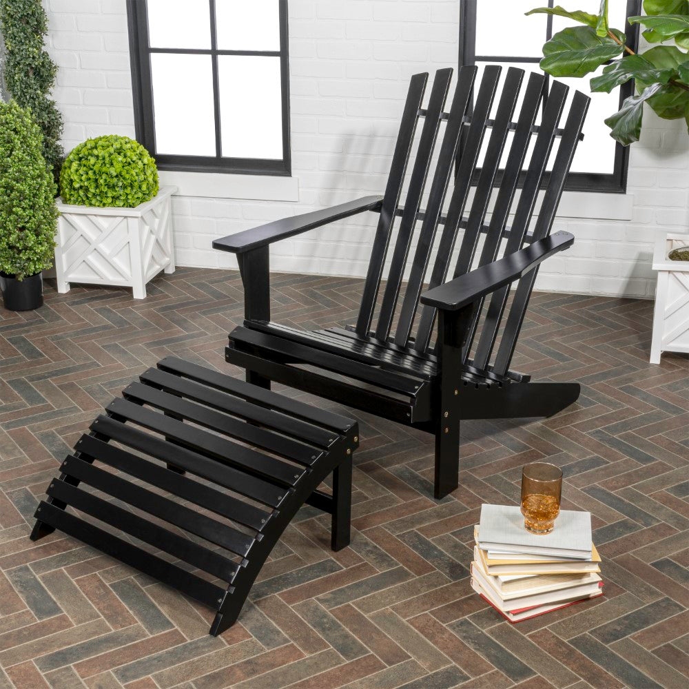 Relax in traditional style with our classic Adirondack chair. Hand-crafted from durable Acacia wood, this roomy chair has a high back and a matching footrest for ultimate comfort. Available in modern and coastal finishes, this chair offers solid construction and a traditional look for your porch or patio.