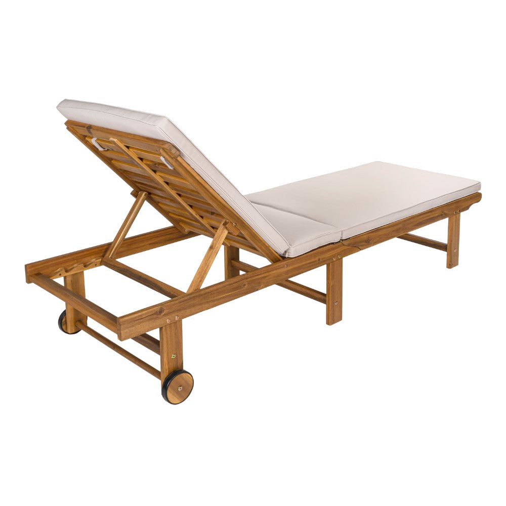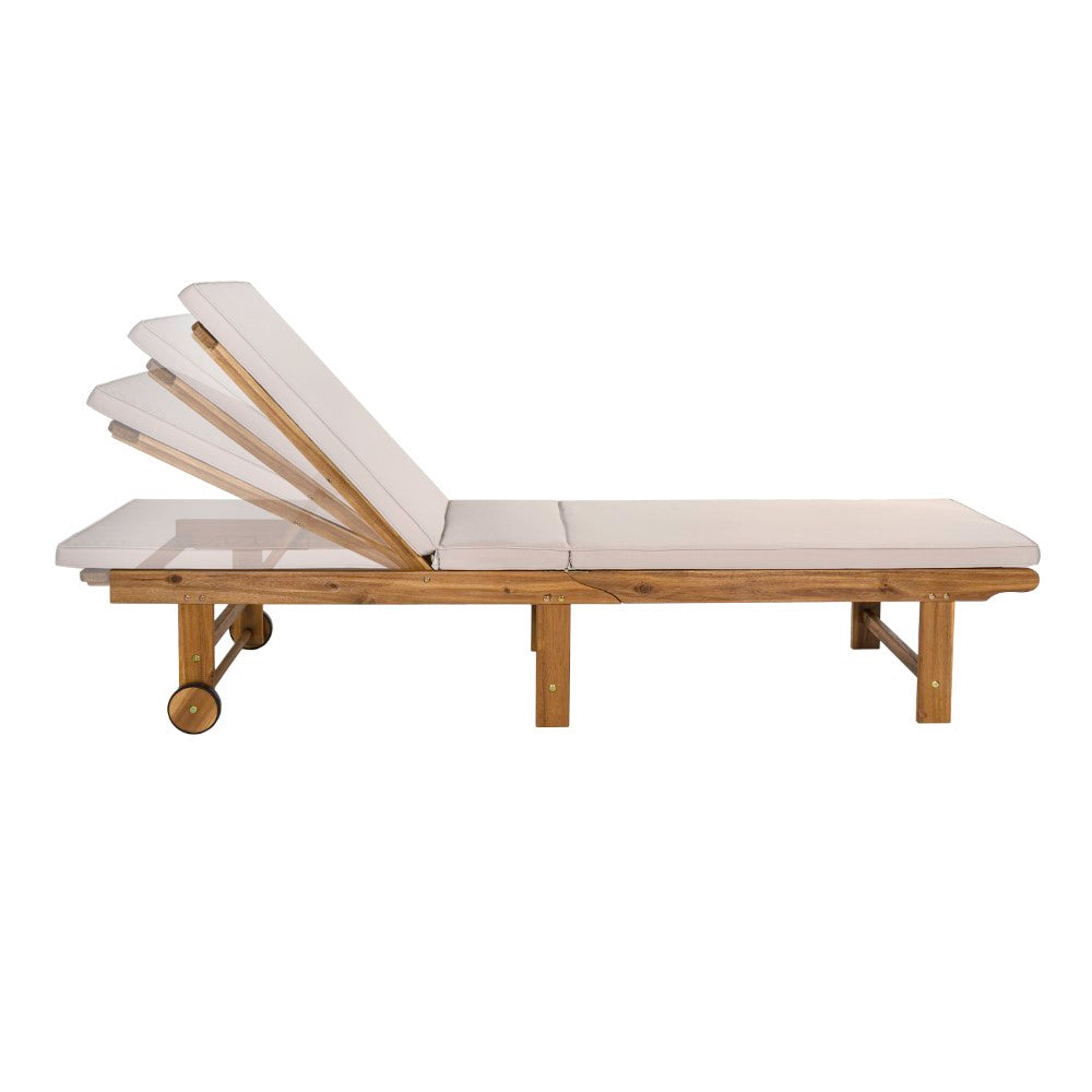 Flarevine 77.17"x23.62" Modern Classic Foldable Adjustable Wood Chaise Outdoor Lounge Chair with Cushion & Wheels