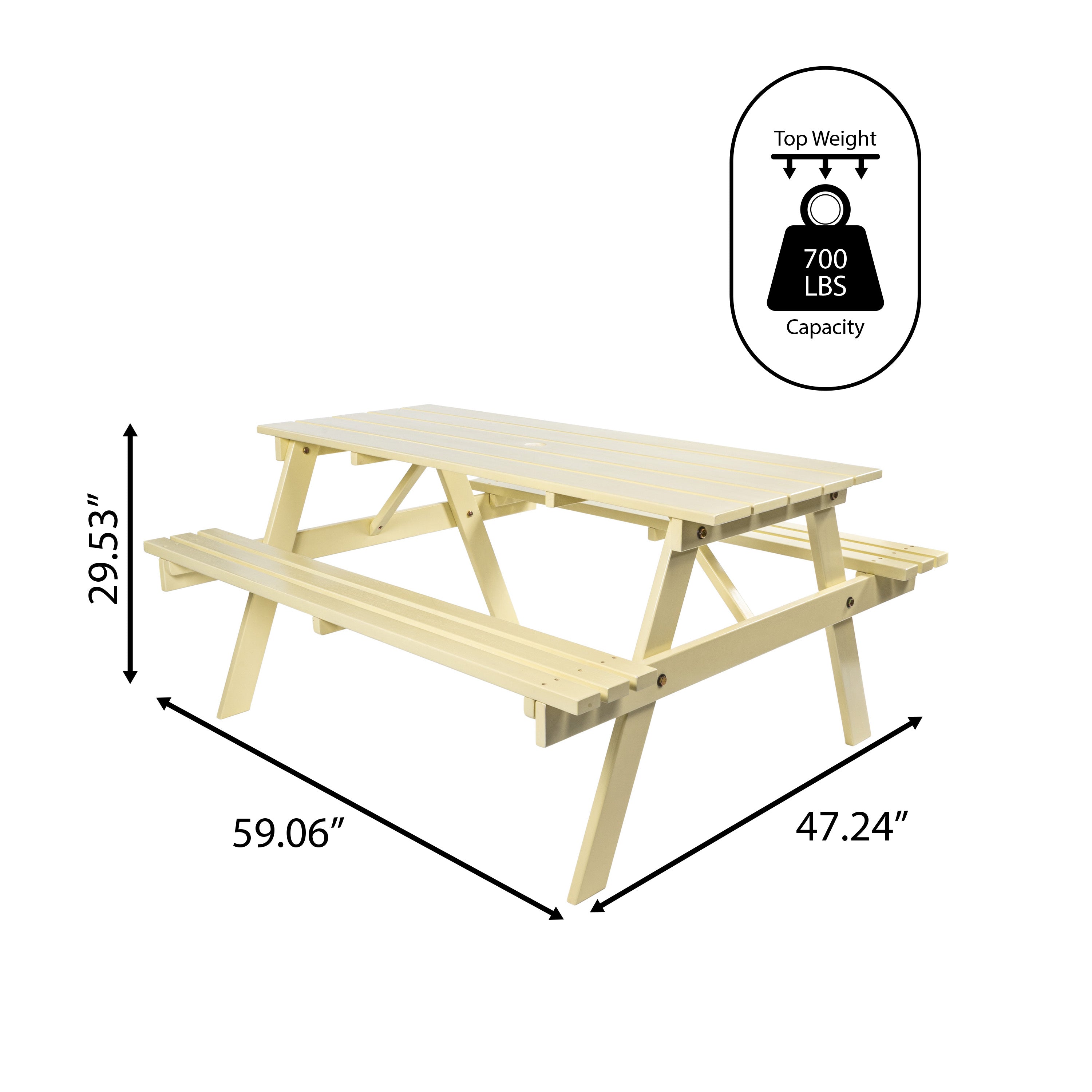 Giantex 59" Modern Classic Outdoor Wood Picnic Table Benches with Umbrella Hole