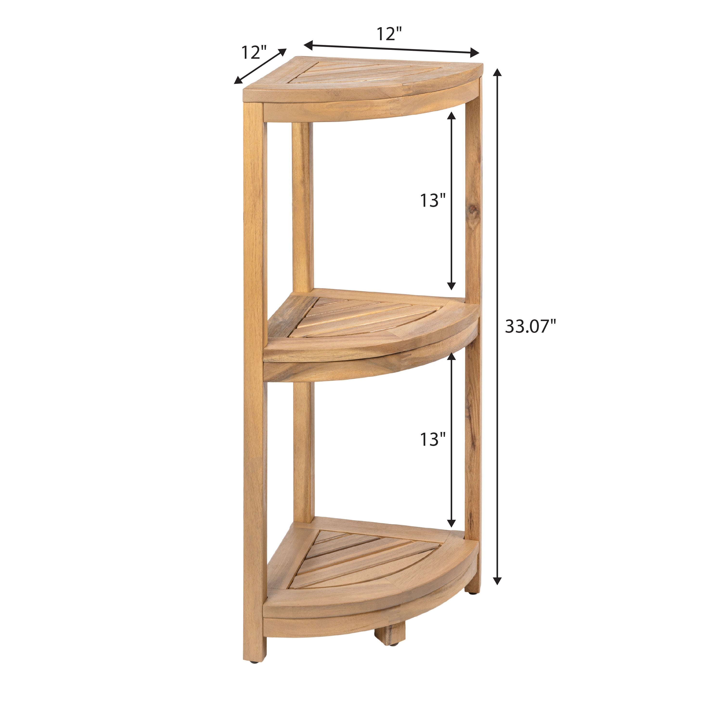 This classic 3-tier shelf fits easily into any corner, adding storage to small spaces. The quarter-round design is made from water-resistant acacia wood with a protective oil finish. Set this minimalist shelf in the shower, beside the tub, or use it as a plant stand indoors or outdoors.