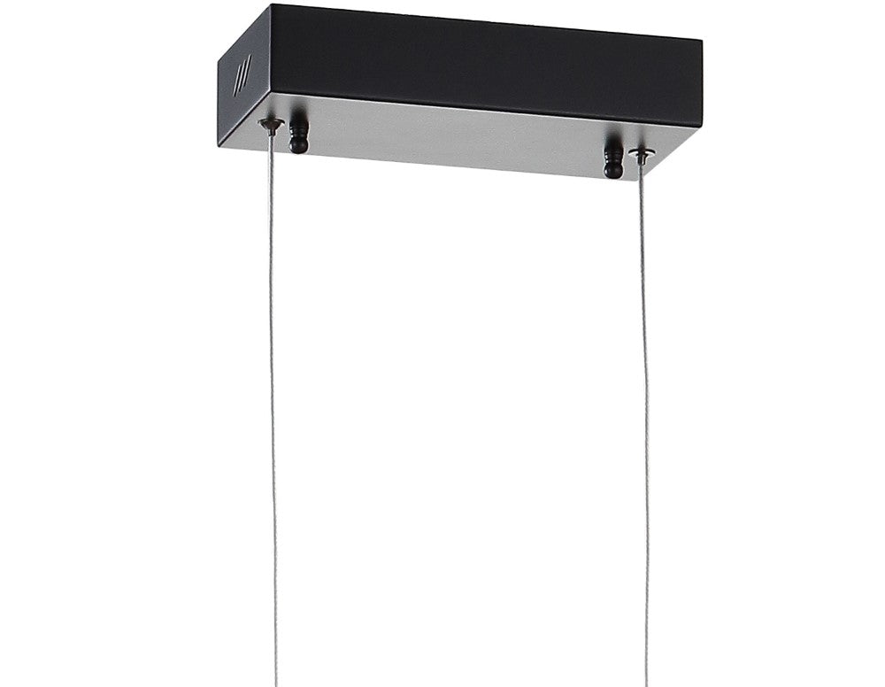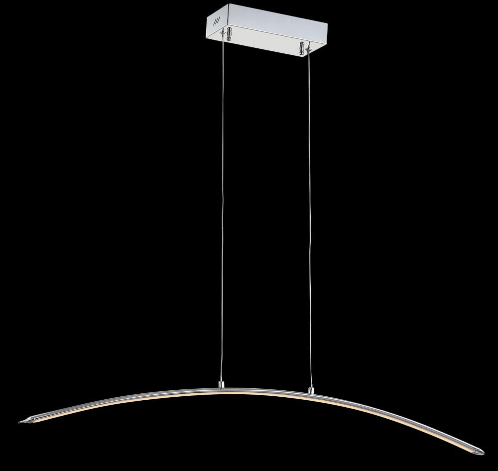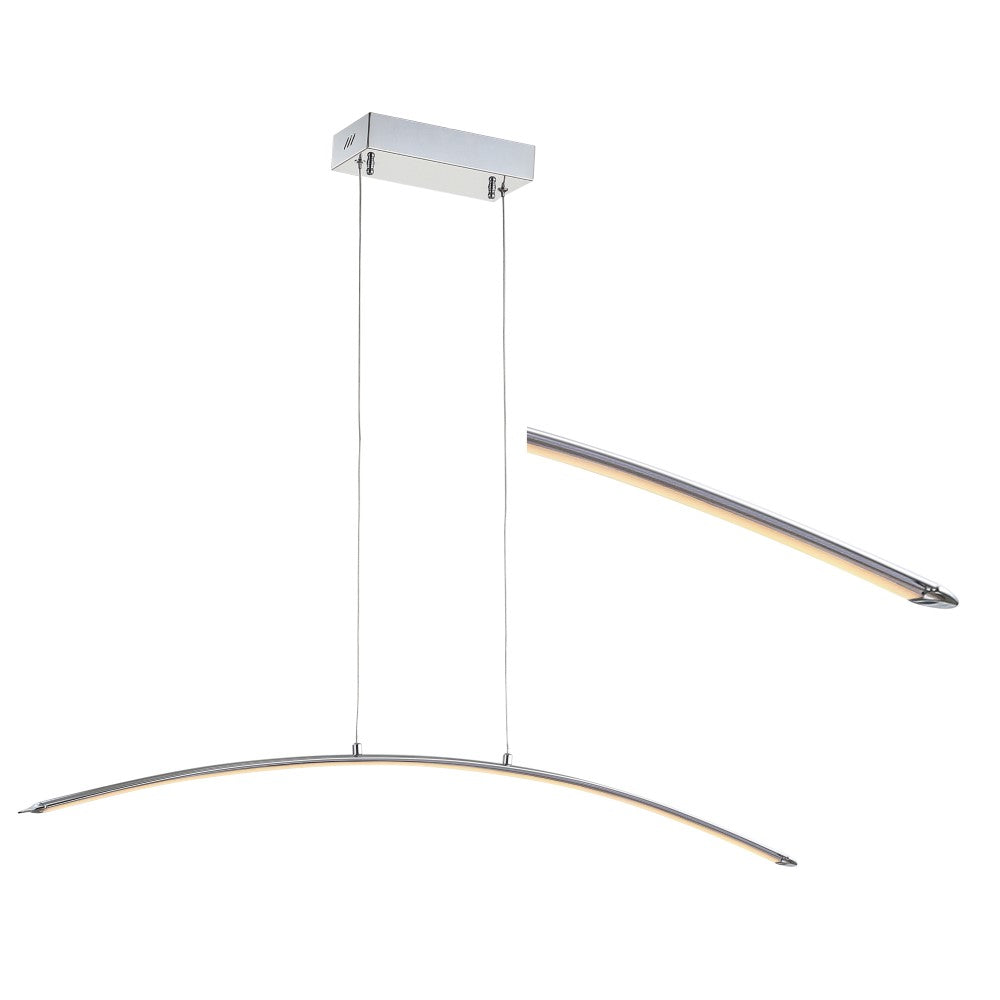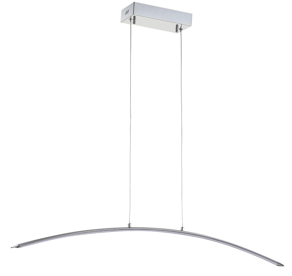 A single, curved line is suspended by clean lines in this sleek pendant. An easy addition to a contemporary space, this piece features an adjustable drop and an integrated LED light. Perfectly suited to hang over a kitchen island or dining area.