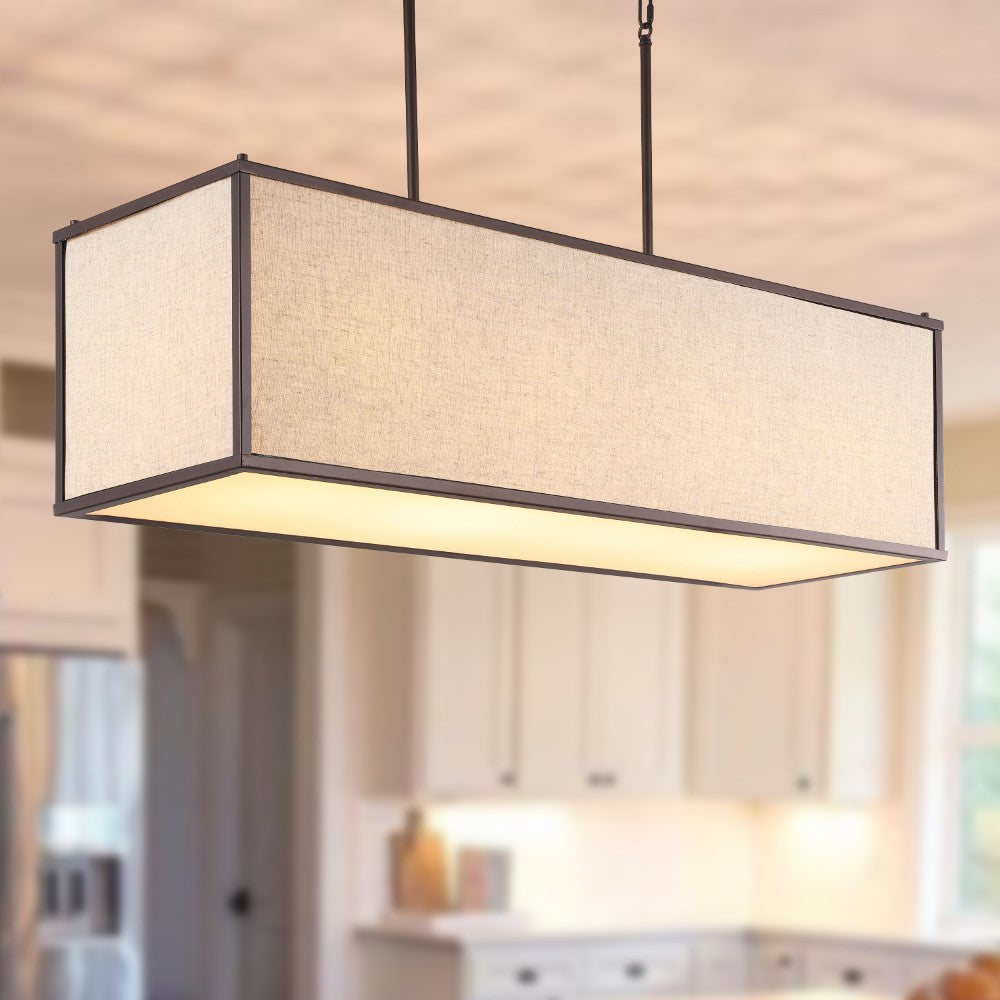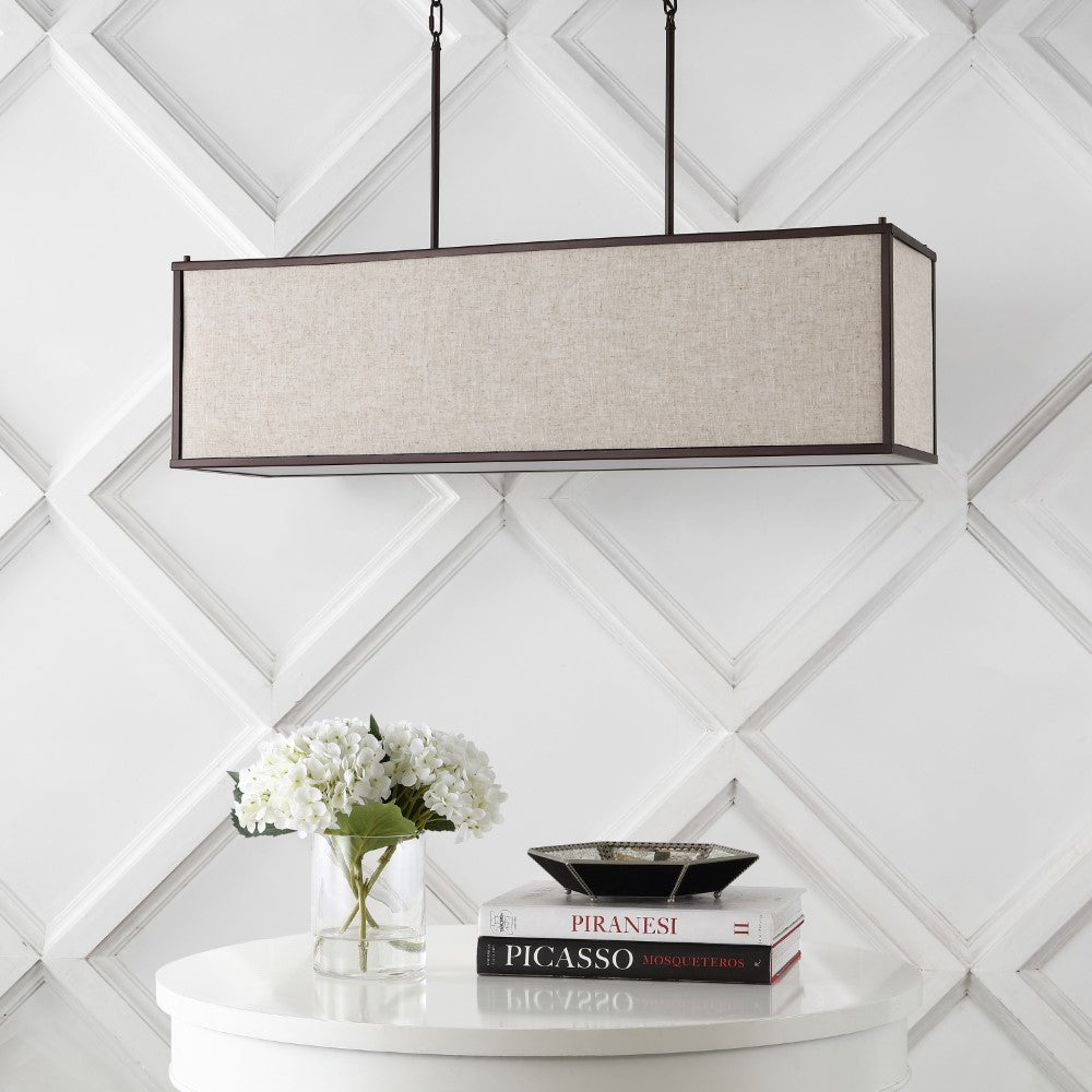 Modern 42" Minimalist Industrial Rectangular Linen Iron Linear LED Pendant