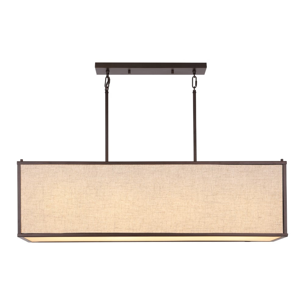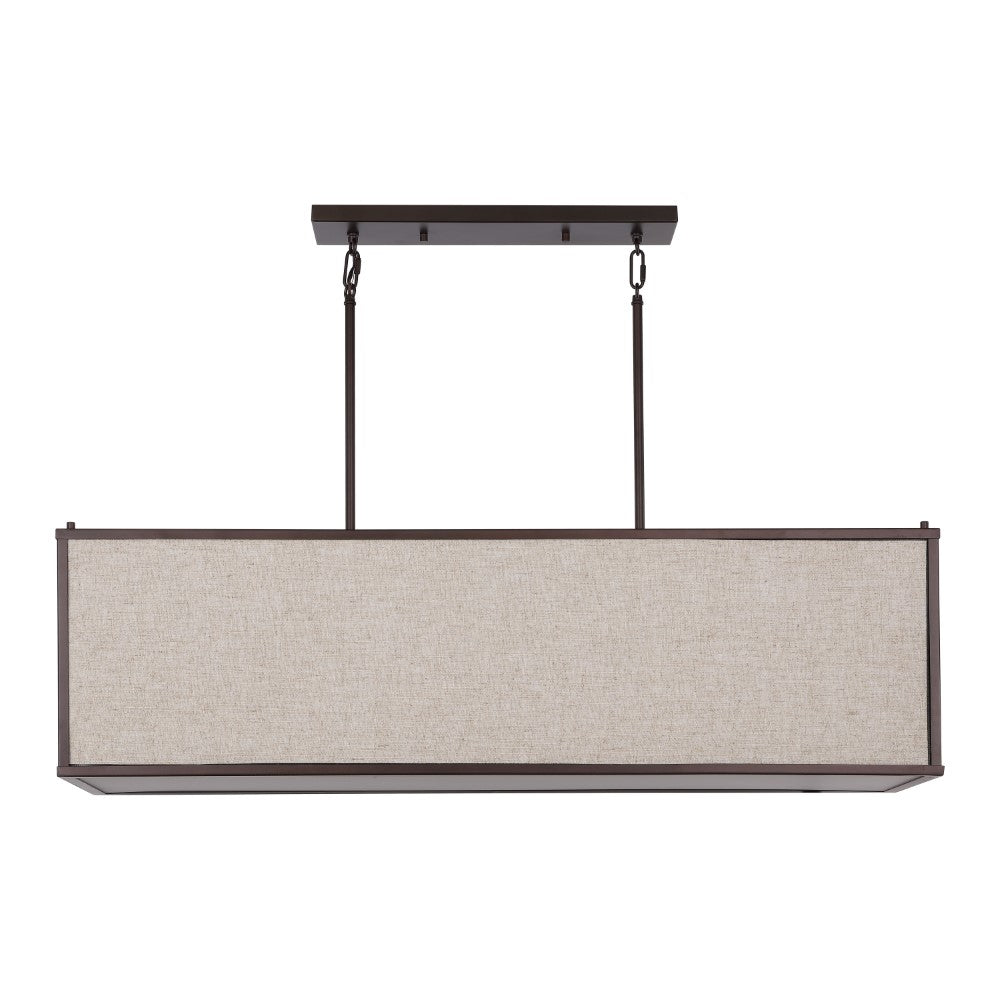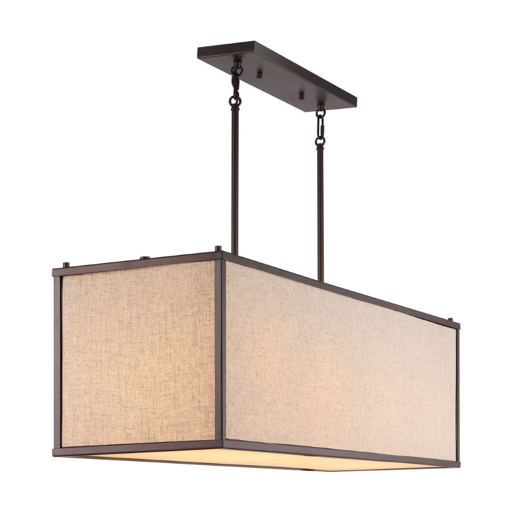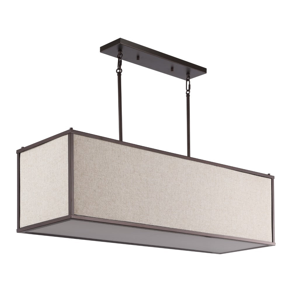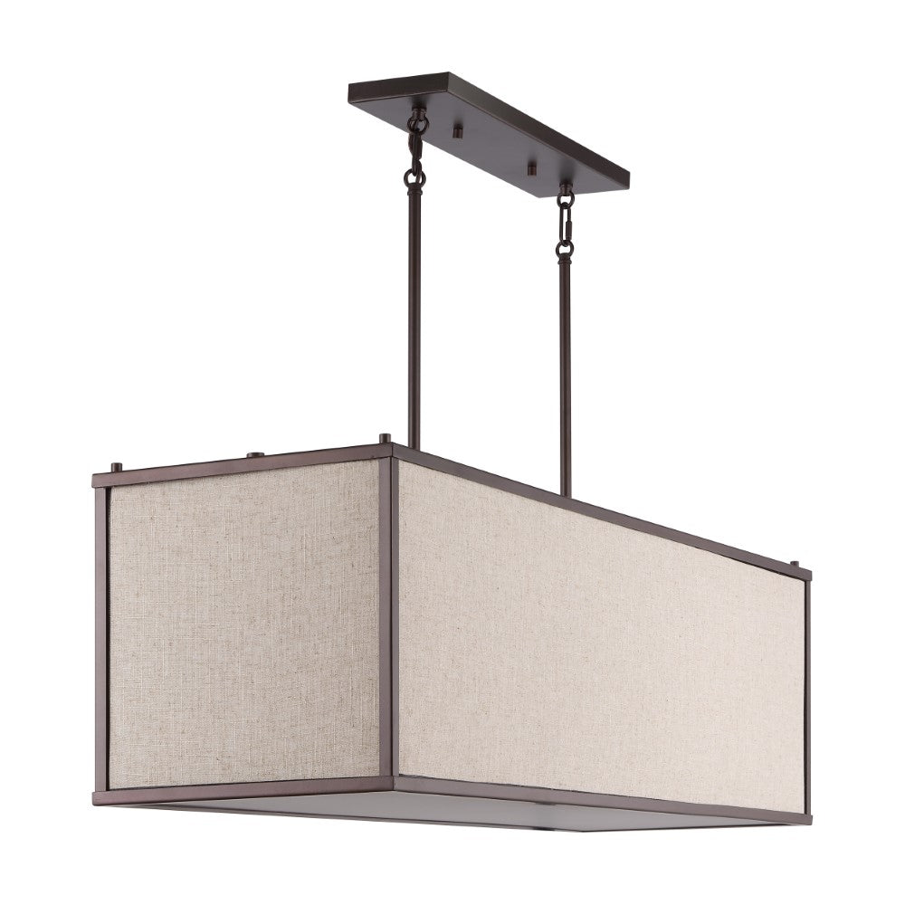 Classic oil-rubbed bronze finish is complemented by beige linen diffuser panels that add warmth