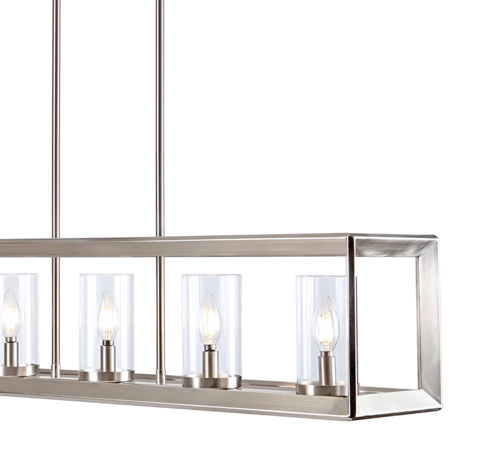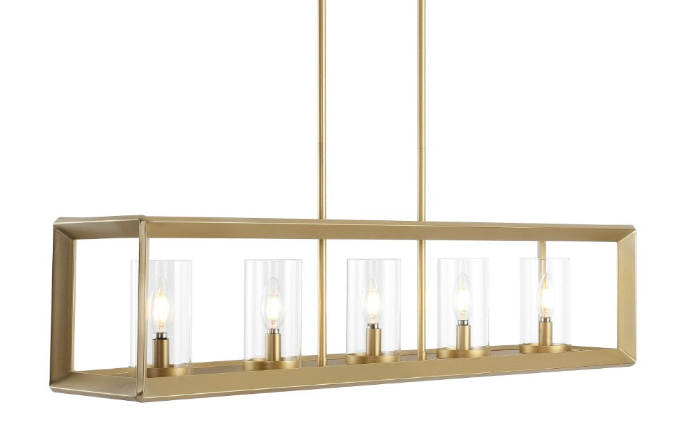 A classic hanging lantern pendant is made modern by the geometric angles of the caging on this decorative piece. Perfect for a dining table or kitchen island, you can adjust the drop according to your desired height -- from a minimum of 15" to a maximum of 39" inches. And if regularly getting on a ladder to change bulbs isn't your thing -- this fixture is compliant with LED bulbs which can go years between replacements.