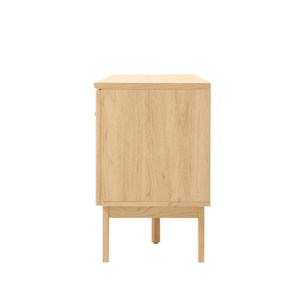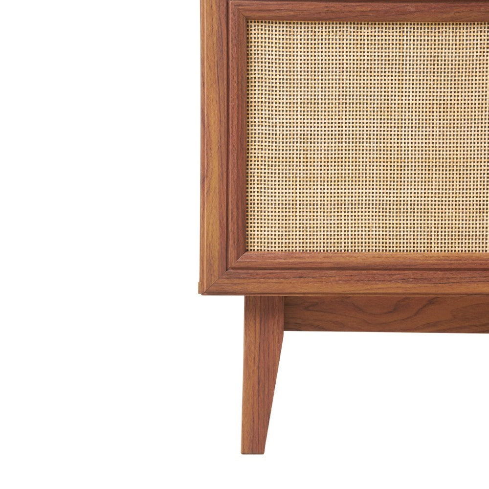 - This console's frame is made of a euro oak coloring with rattan paneling, bringing a farmhouse flare to any home