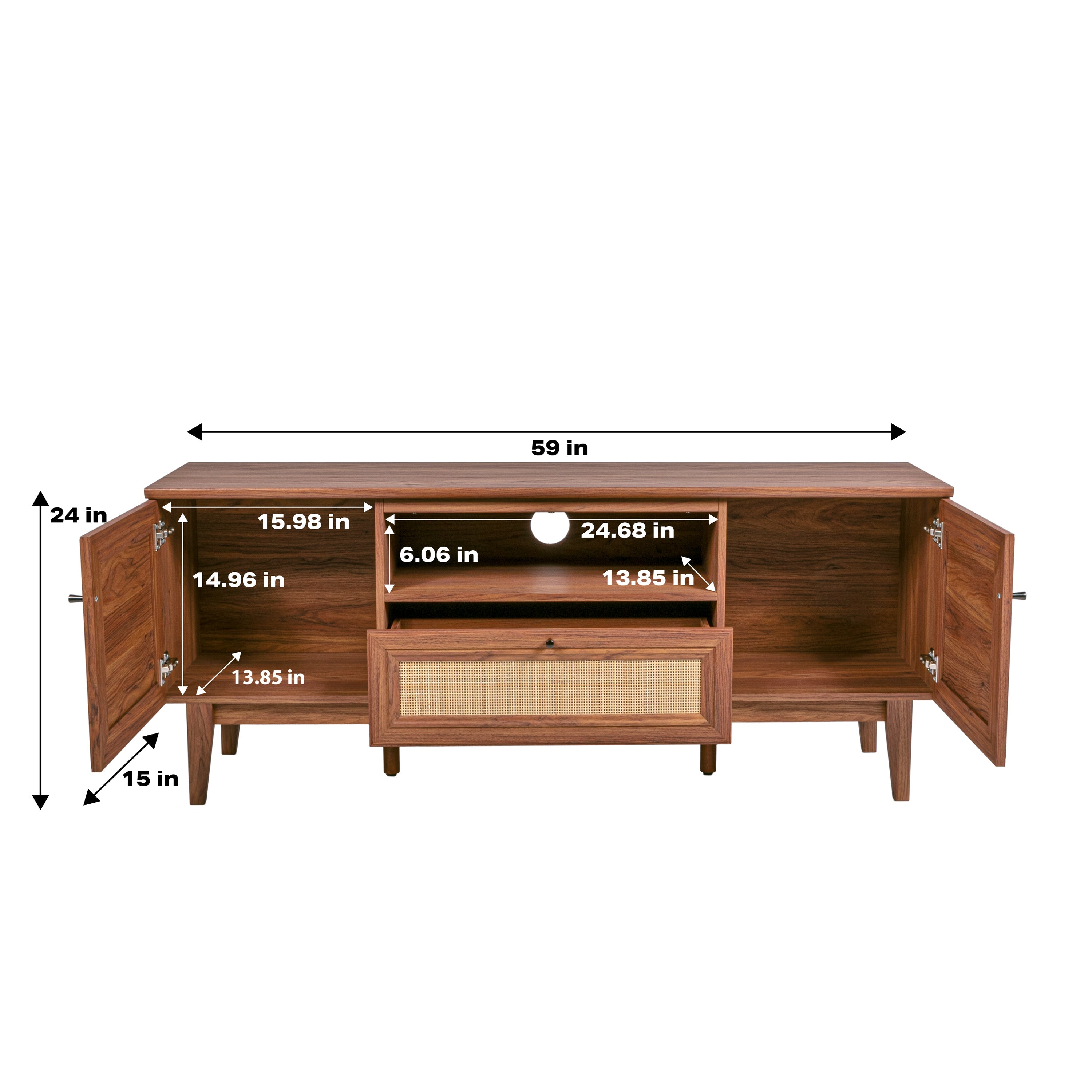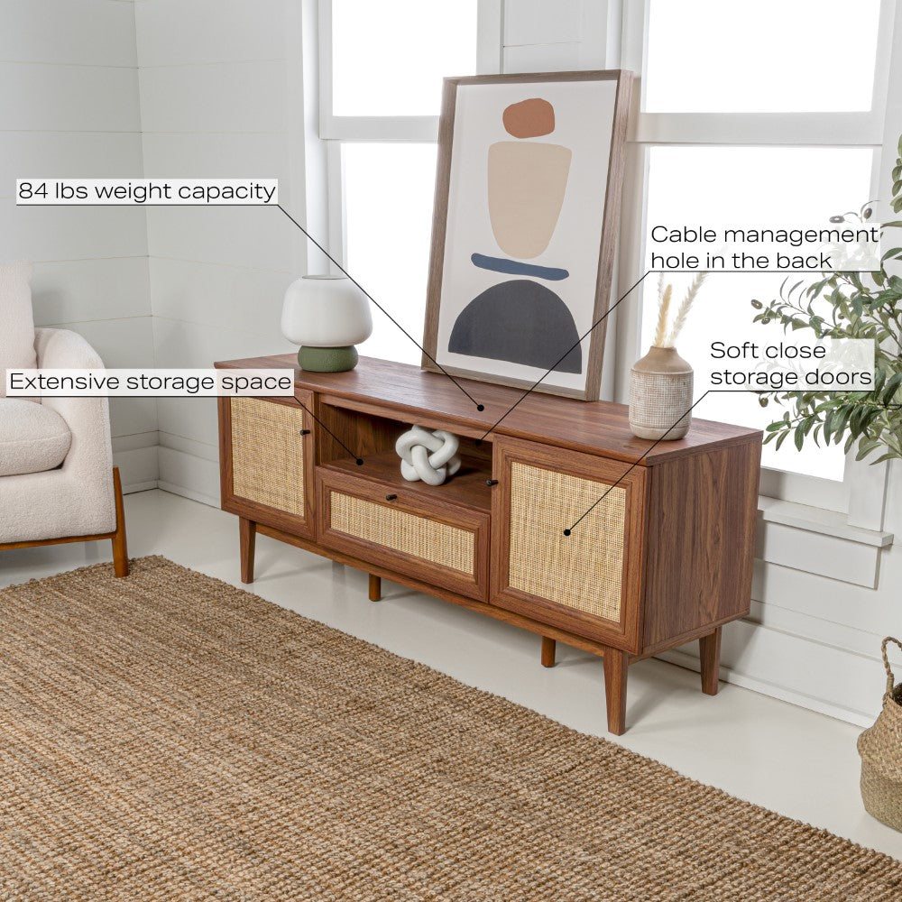 Bronte 59 in. Farmhouse Caned TV Stand with Drawer and Storage Doors Fits TVs up to 65 in. with Cable Management