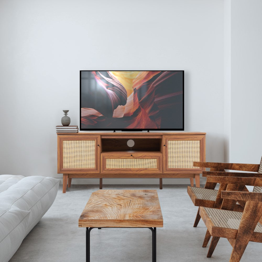 - With traditional rattan accents, our TV console is a must have for rustic or farmhouse family rooms