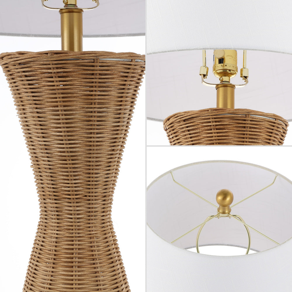 Farrah 27" Coastal Designer Iron/Rattan Wicker LED Table Lamp Set 2