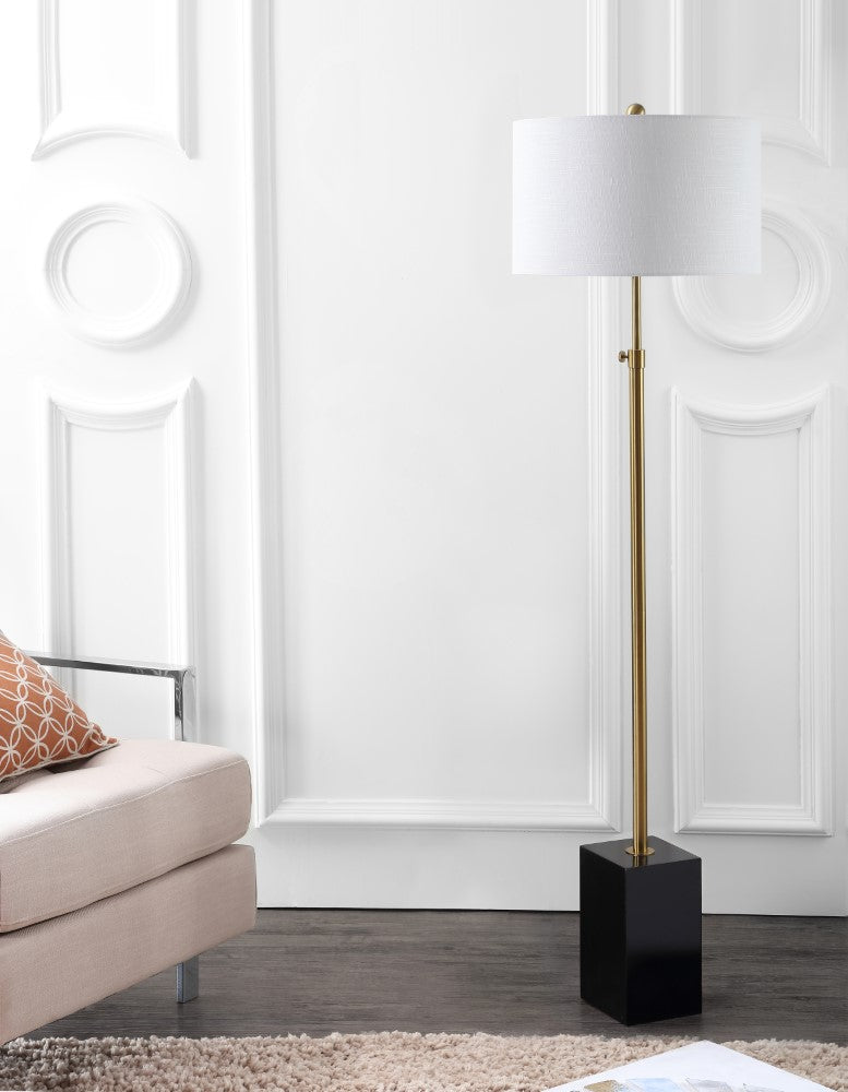 - Simple and modern, this brass and black wood floor lamp will stun in any room