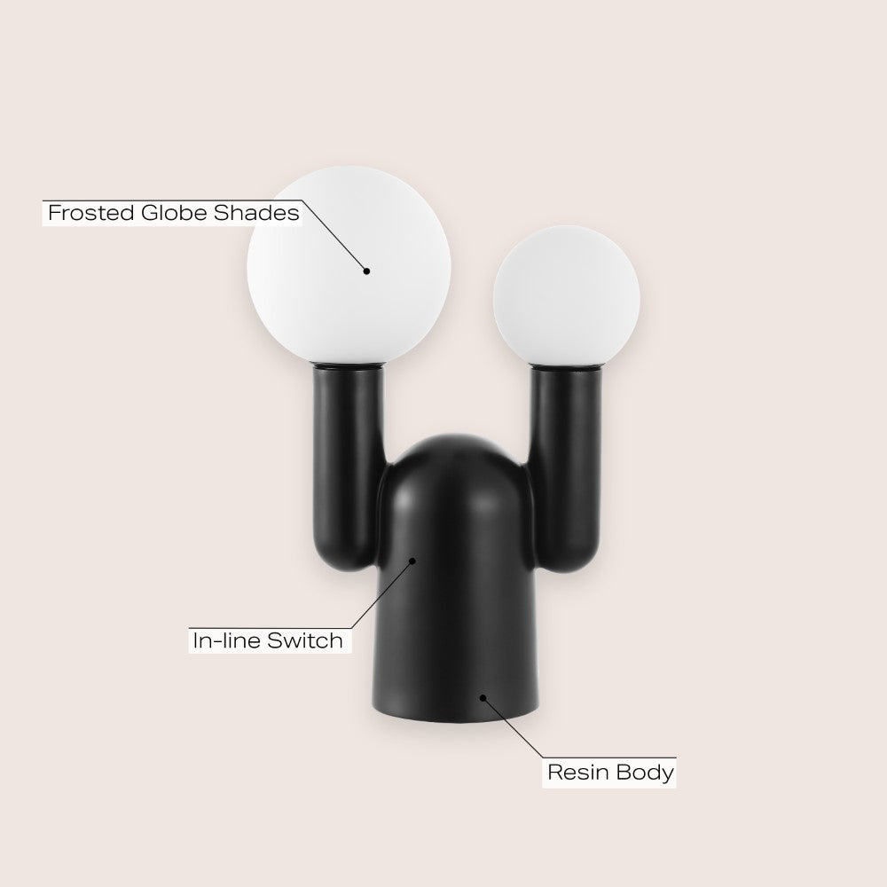 Jube 19" 2-Light Modern Mid-Century Resin/Iron/Frosted Glass Nordic Cactus LED Table Lamp