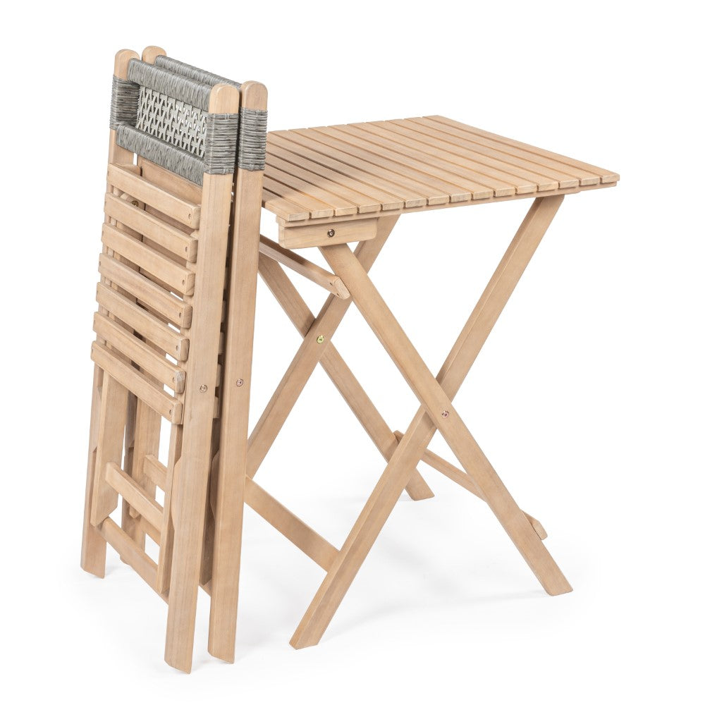 Our modern slatted bistro chairs and table are perfect for a small kitchen, balcony or patio. The sturdy acacia wood frames fold for easy storage, and they're accented by a textural woven rope detail. Instantly create a Bohemian style coffee spot or dining area with our three-piece café set.