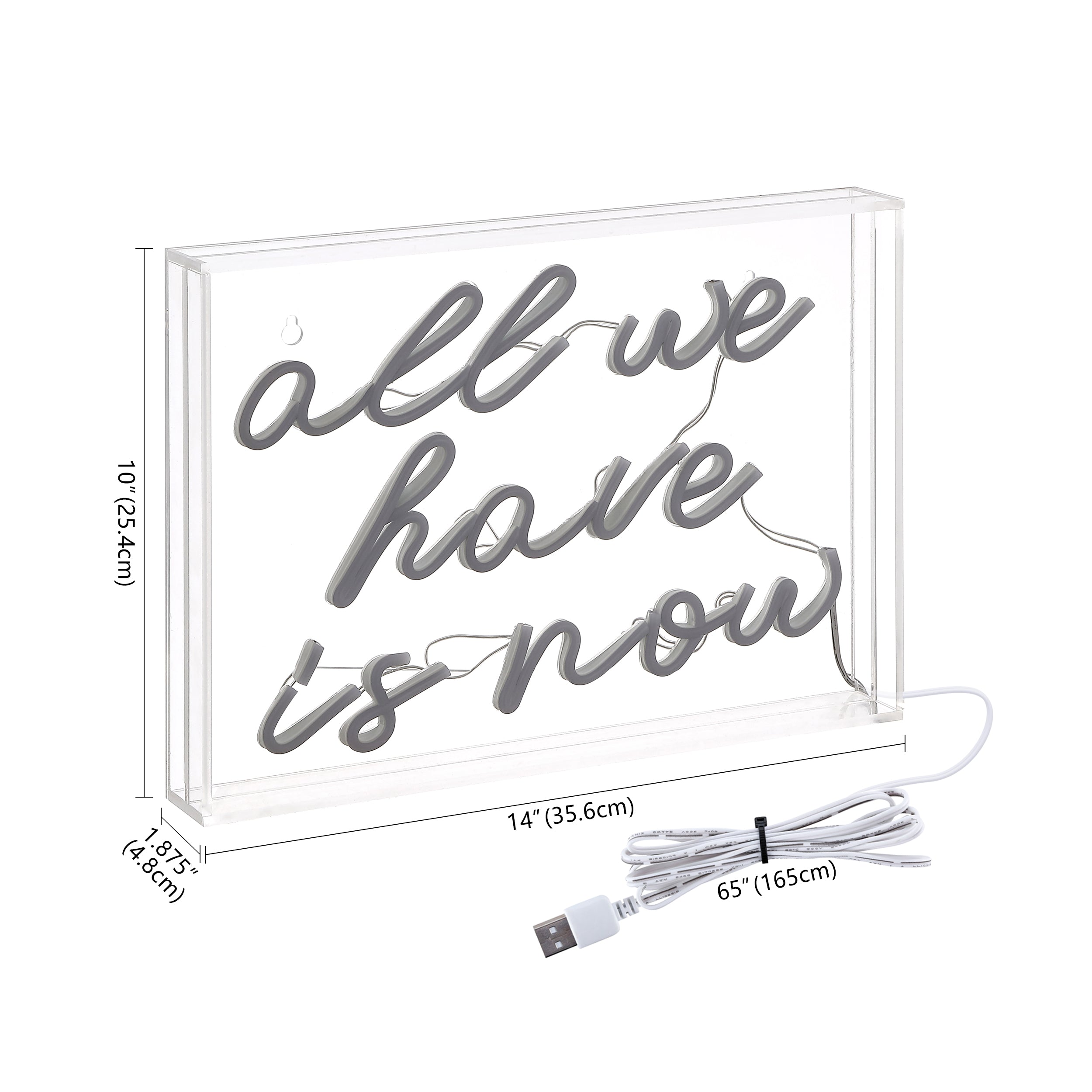 Neon All We Have Is Now Contemporary Glam Acrylic Box USB Operated LED Neon Light