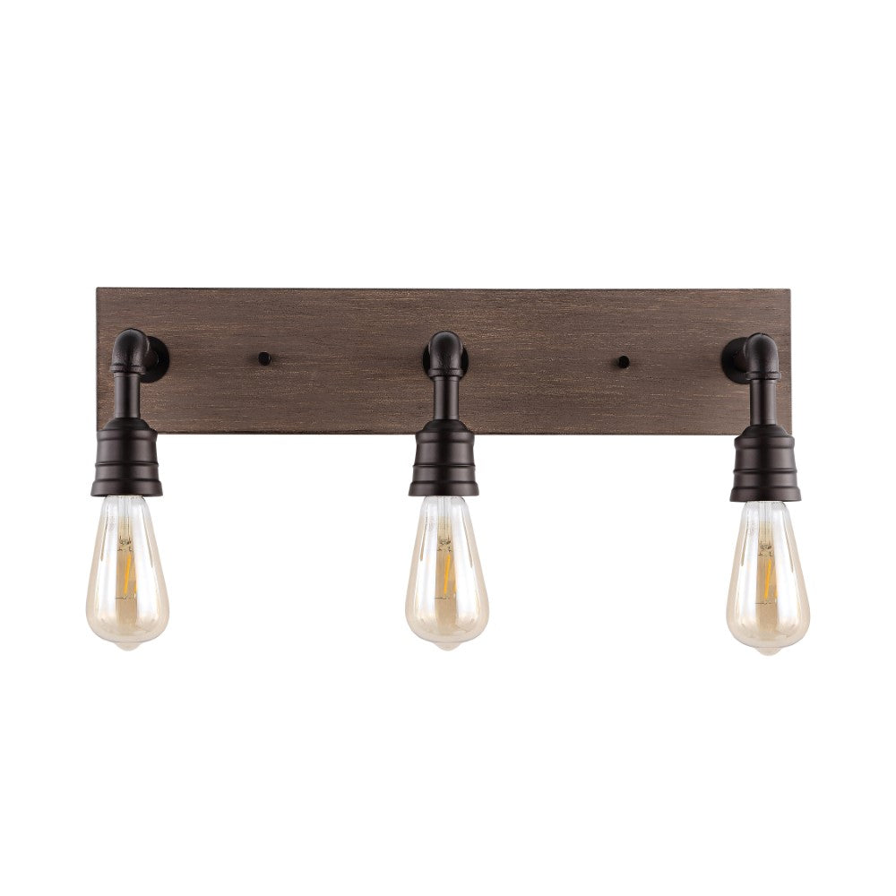 This industrial-style vanity light is ideal for a modern farmhouse, rustic cottage, or urban apartment. Bronze metal pipes, a rustic wood finish, and Edison-style bulbs create the look of reclaimed industrial materials. Warm-toned LED bulbs cast a bright glow in the master bath, powder room, or even over the kitchen sink.
