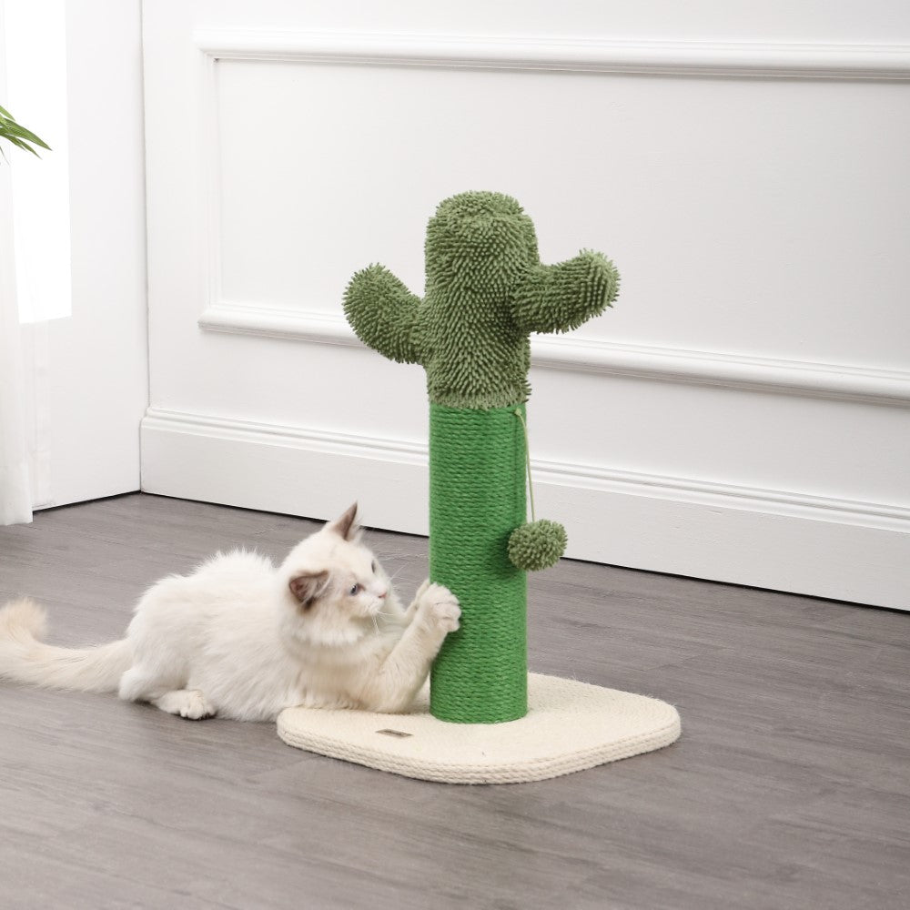 Keep your cats happy and healthy with our cute and sturdy cactus cat scratching post. Covered in soft carpet for climbing and durable jute for scratching, with a dangling ball toy. Adorable cactus design looks great in any room.